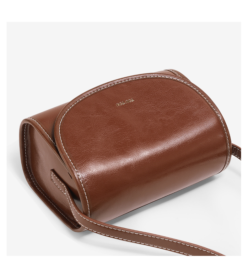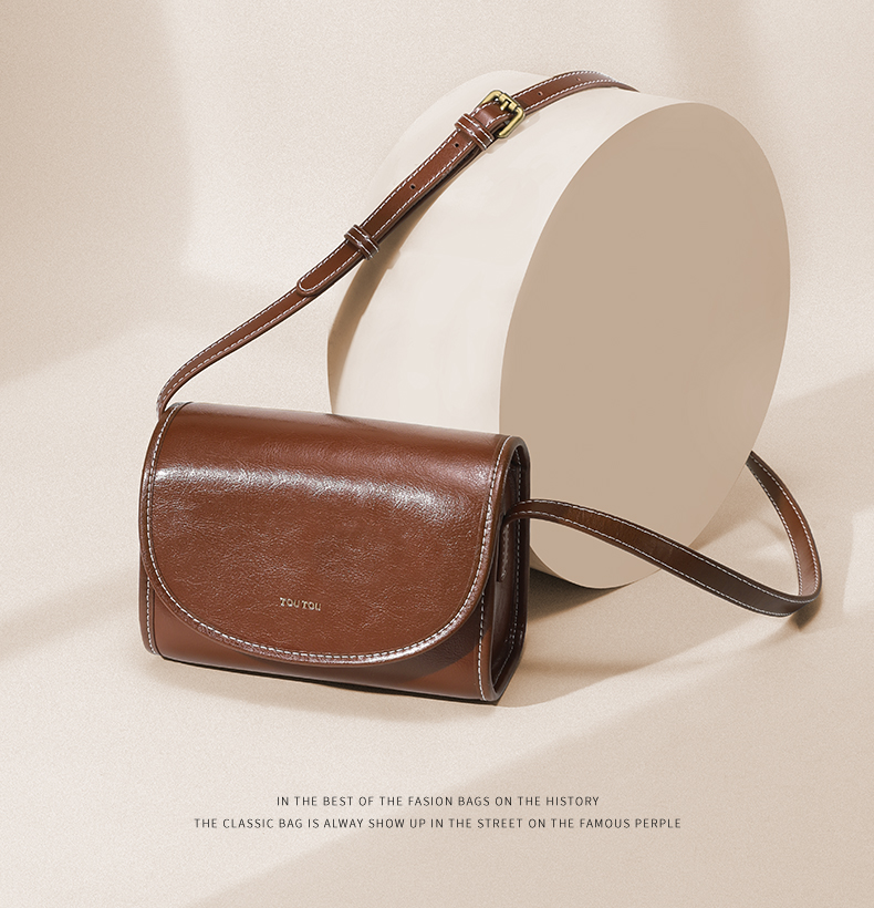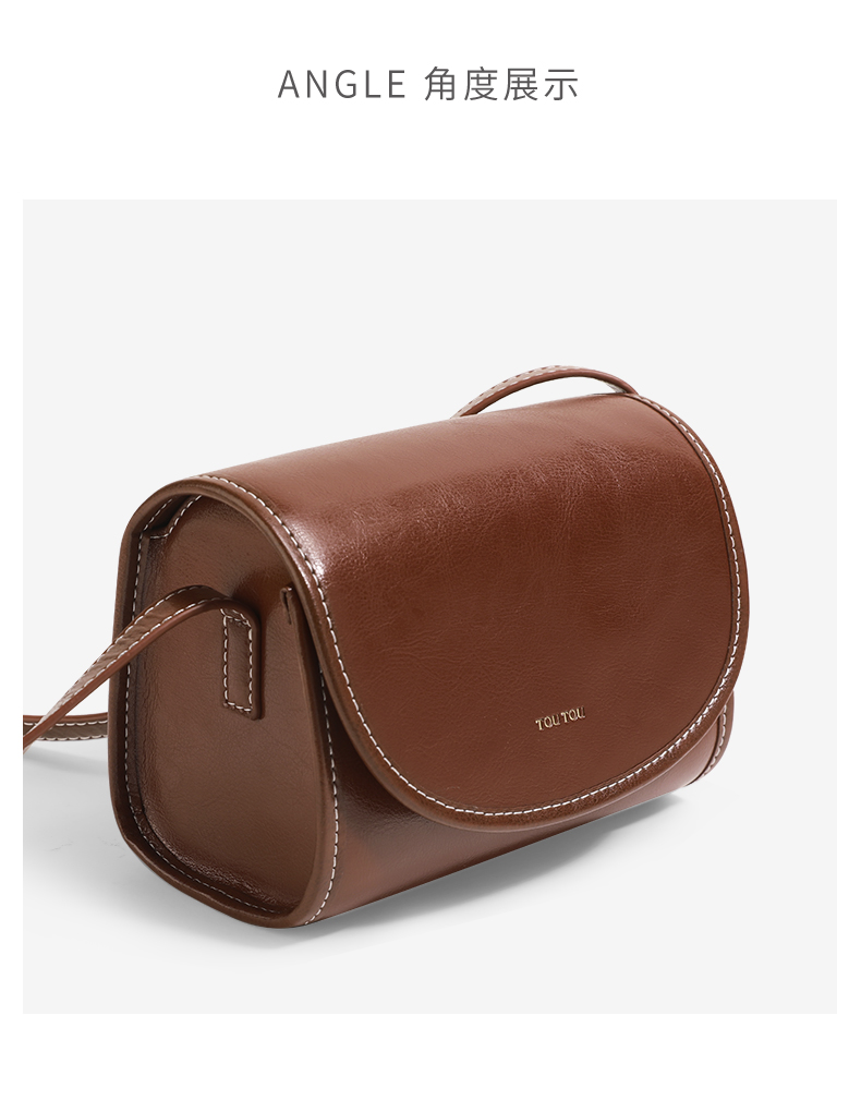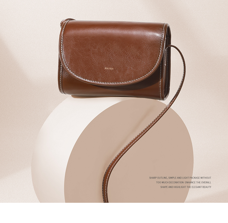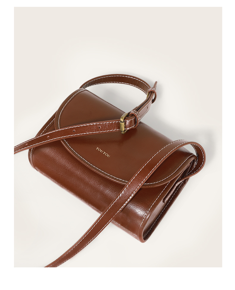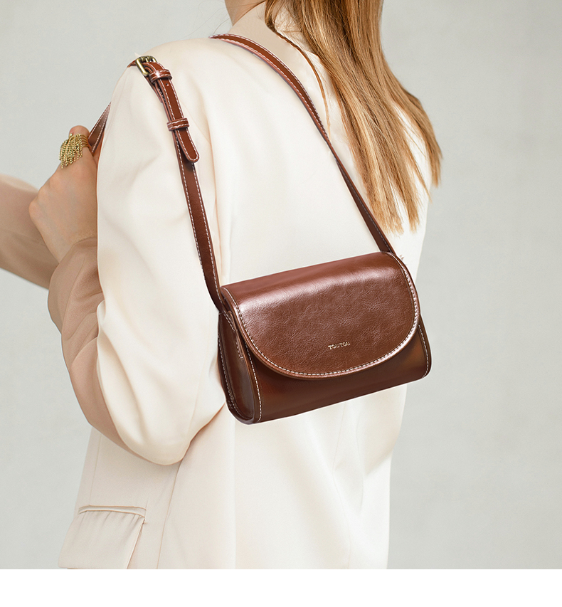 TOUTOU秋冬新款复古百搭油蜡牛皮单肩斜挎小方包