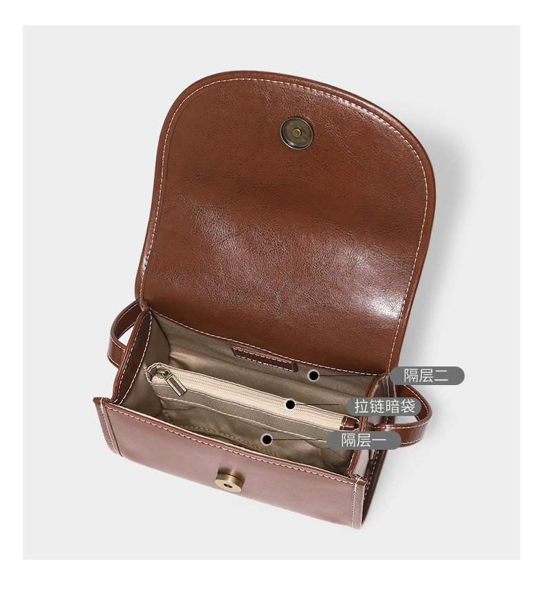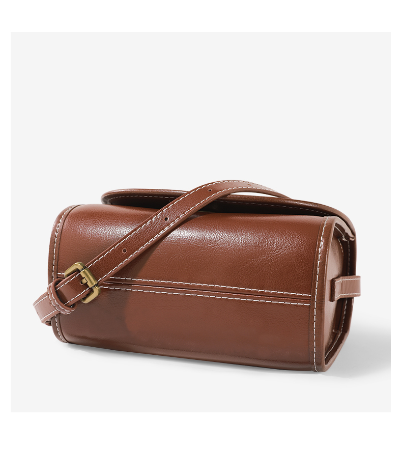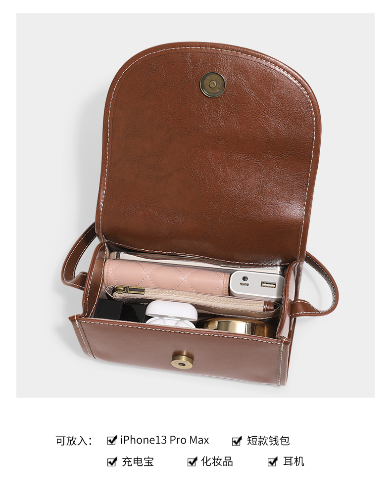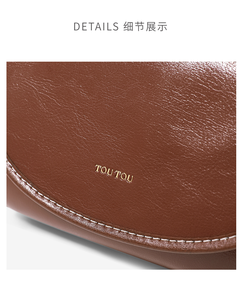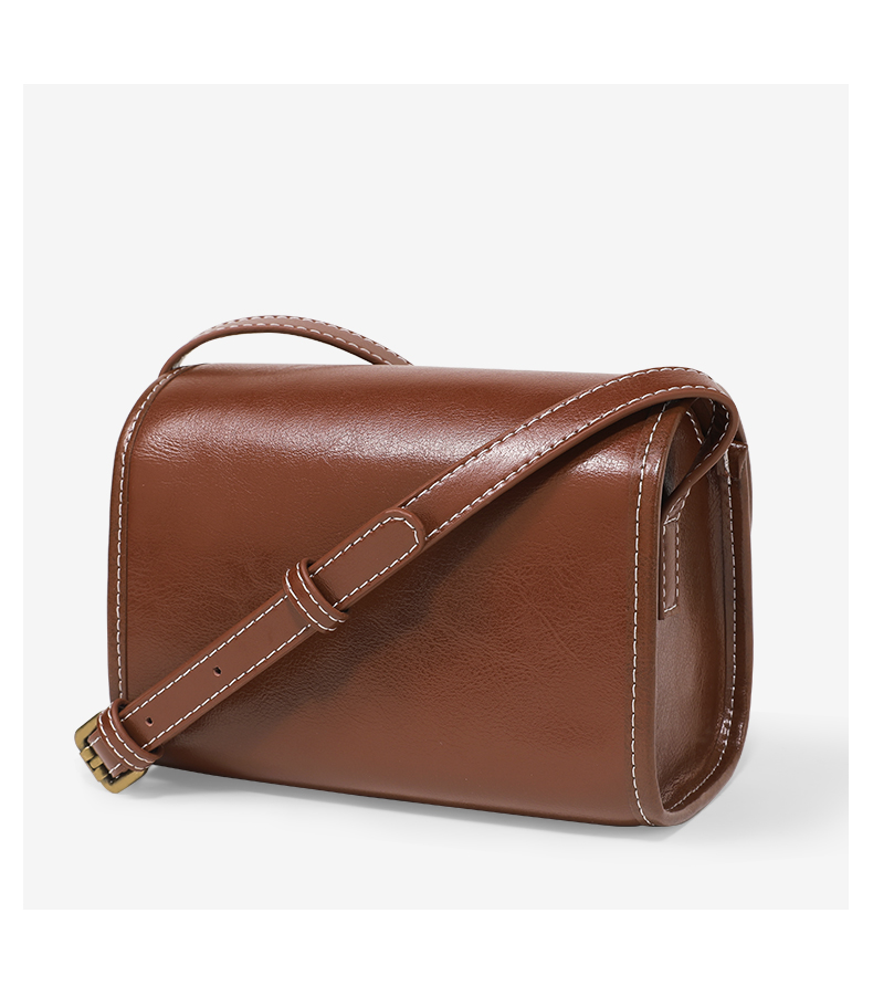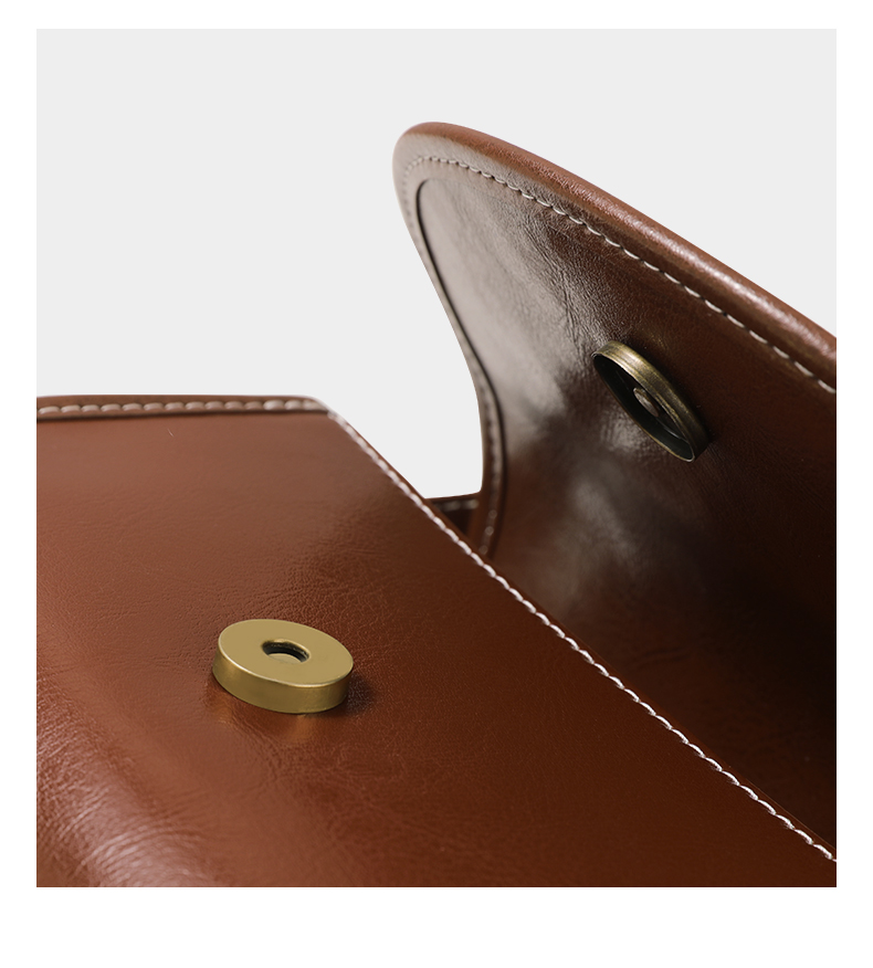 TOUTOU秋冬新款复古百搭油蜡牛皮单肩斜挎小方包