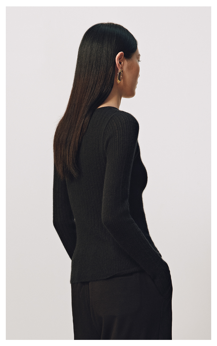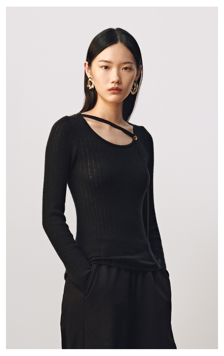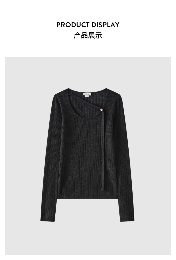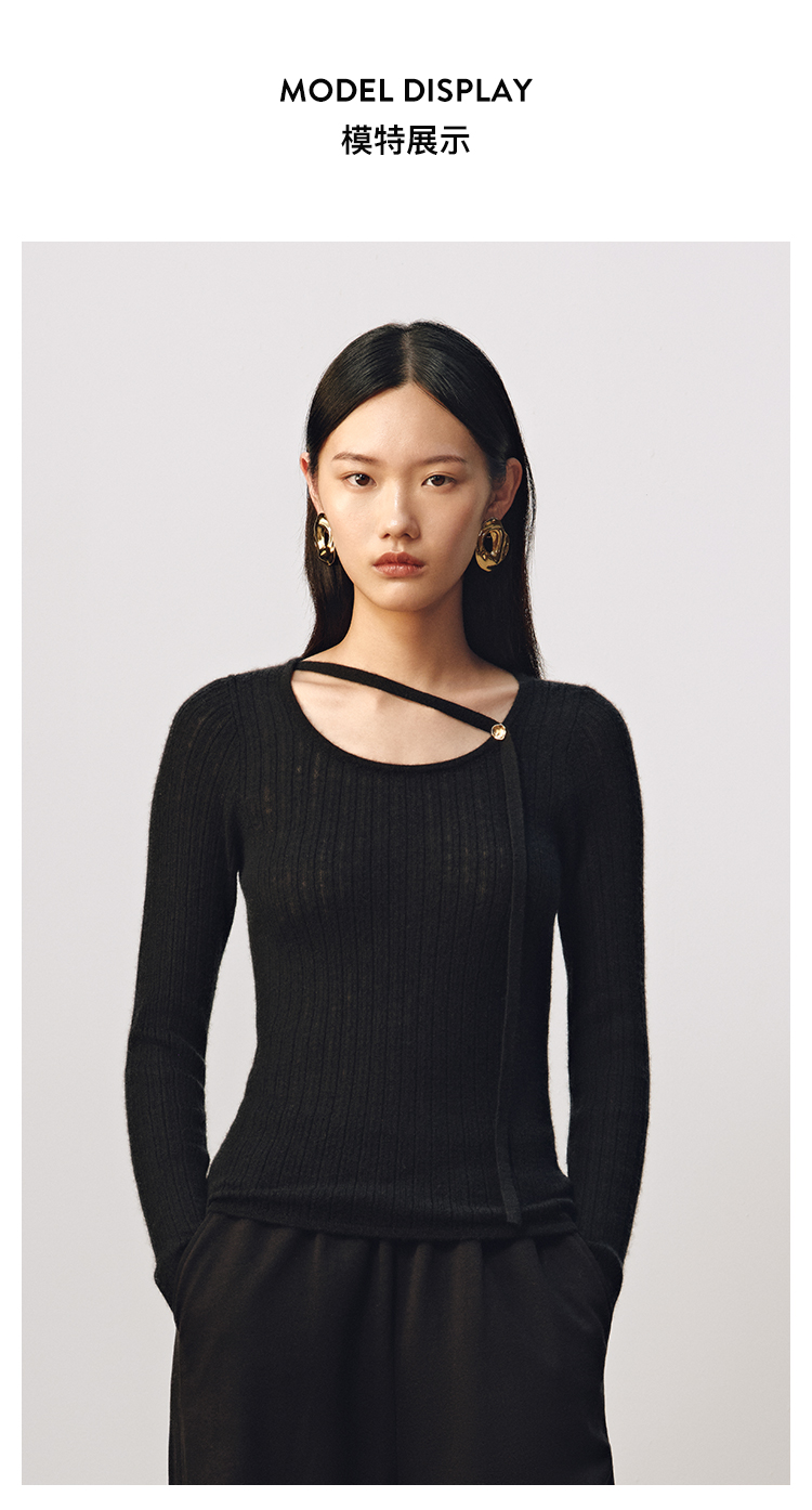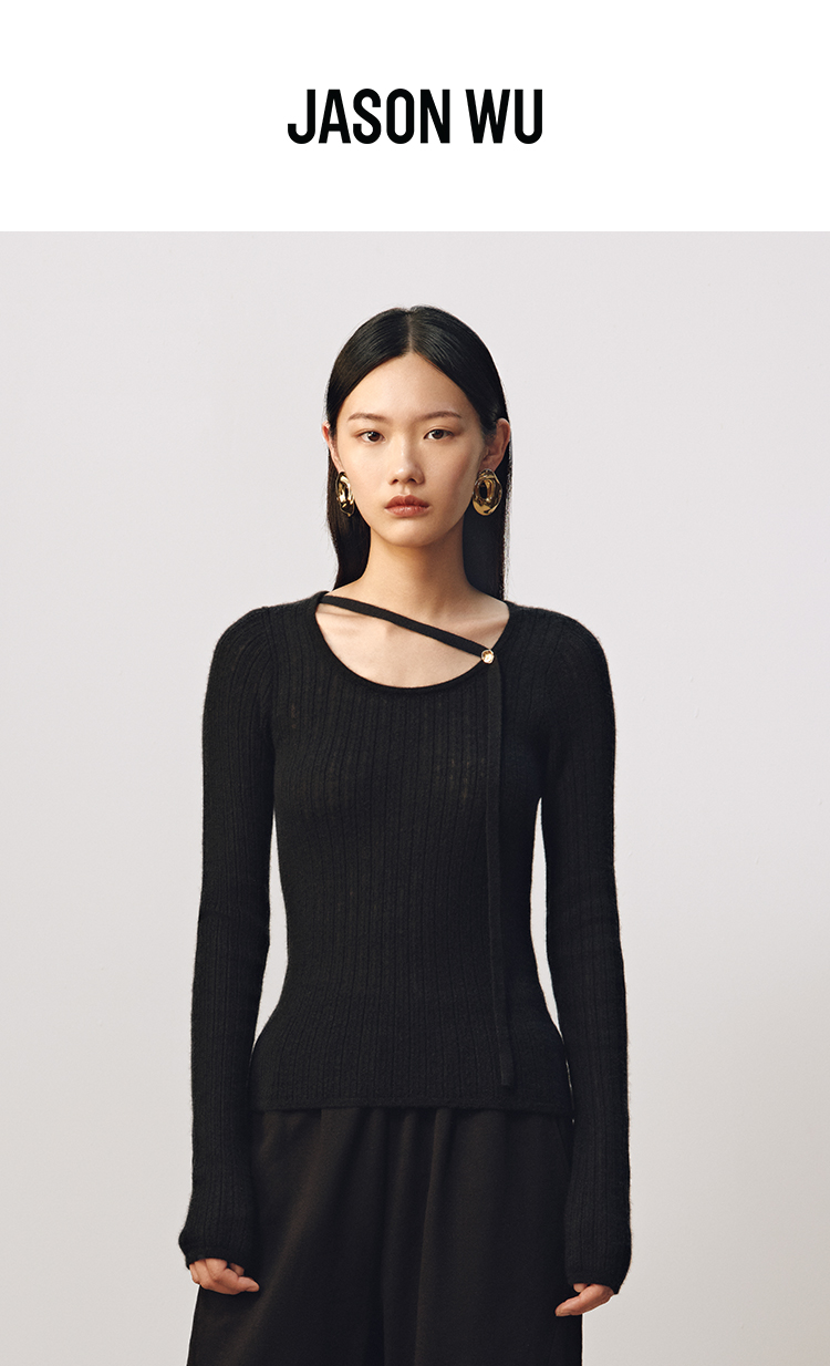 (秋冬新品)【JASON WU】(多色)超薄羊绒U领饰带百搭上衣针织衫女