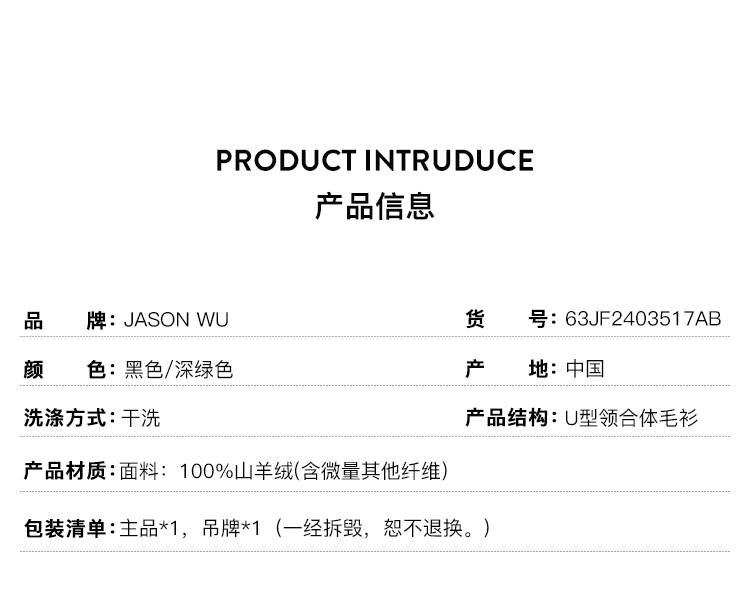 【JASON WU】秋冬新款高领100%羊毛上衣毛针织打底衫女