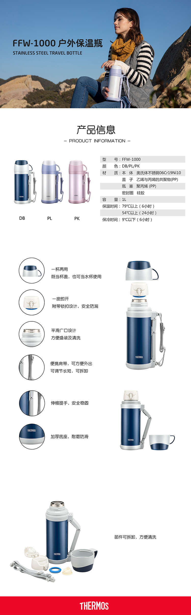 膳魔师 户外大容量高真空运动水壶FFW-1000【7F童床】[26.3.23-4.2][广百北京路店]【F】