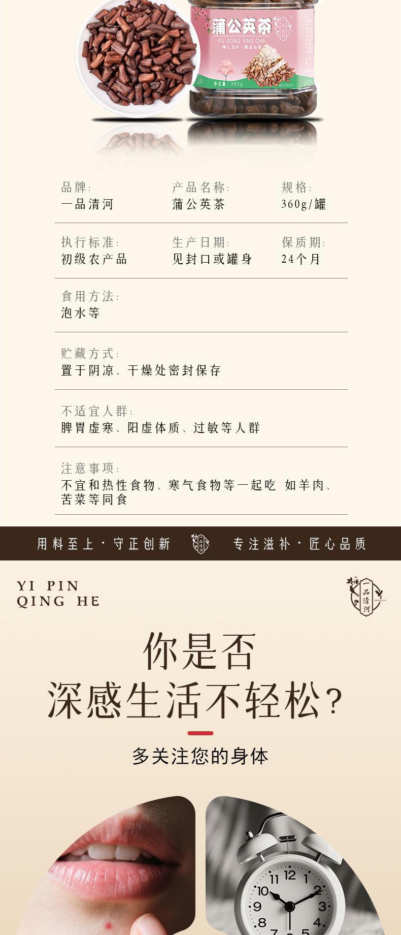 【自营】一品清河 蒲公英根茶360g多巴胺罐装绿茶红茶 YPQHPGYGC360G