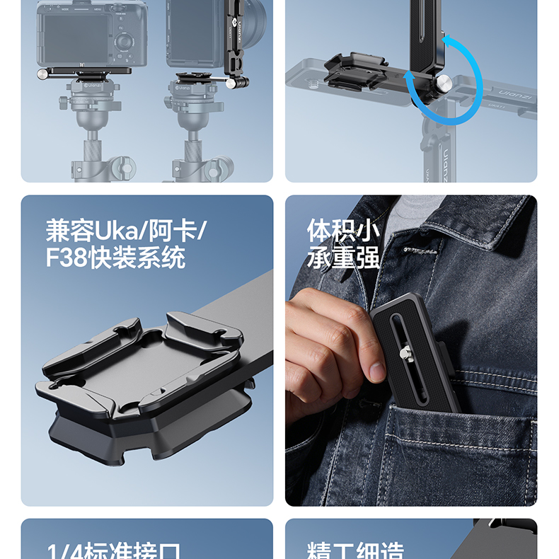 Ulanzi优篮子 UKA11快速拆装折叠L板云台微单反相机三脚支架通用配件兼容Uka/阿卡/F38快装转换底座拓展配件