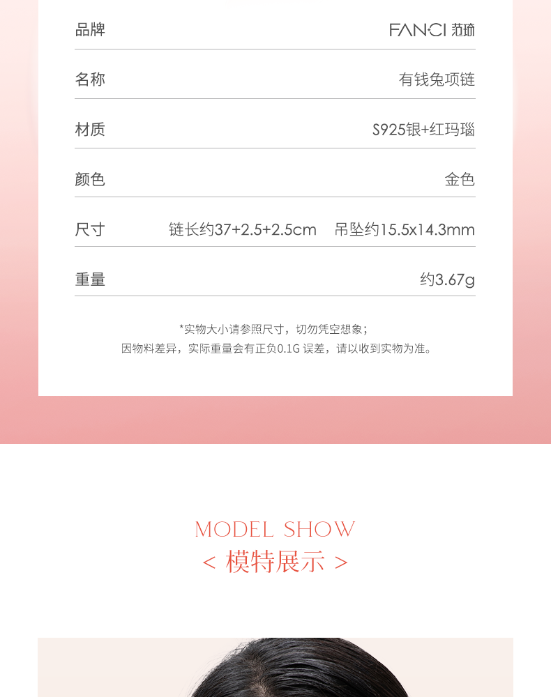 FANCI范琦始于2012年,以珠宝表达内心为初衷,聚焦不同亲密关系情感表达,联结无形情感,以情感符号「I FANCI U」传情达意,诠释“恋爱戴范琦,起点是你,终点亦是你”始终如一的恋爱价值观。