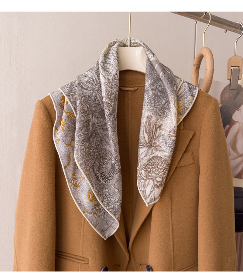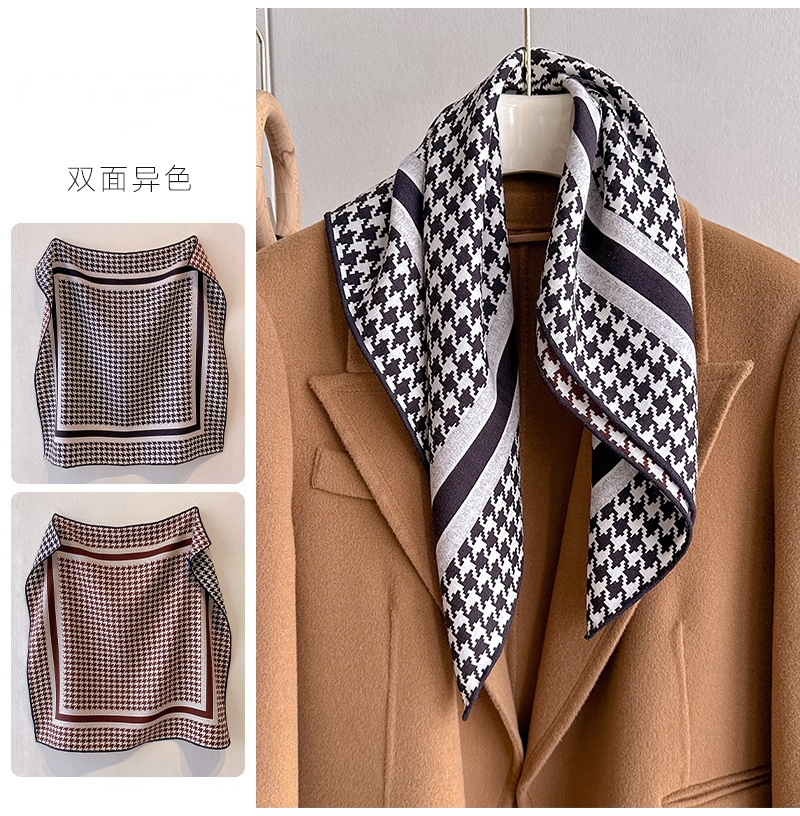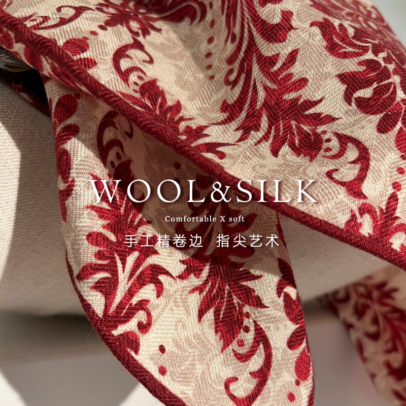 时尚双面异色真丝羊毛小方巾围巾