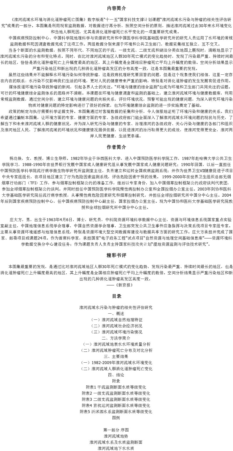 《淮河流域水环境与消化道肿瘤死亡图集(附中文电子版DVD)》(杨功焕,庄大方)