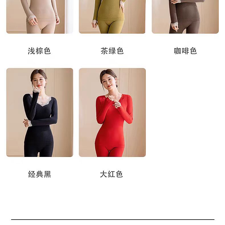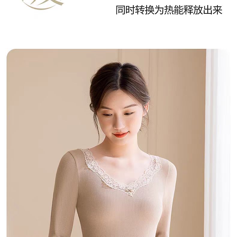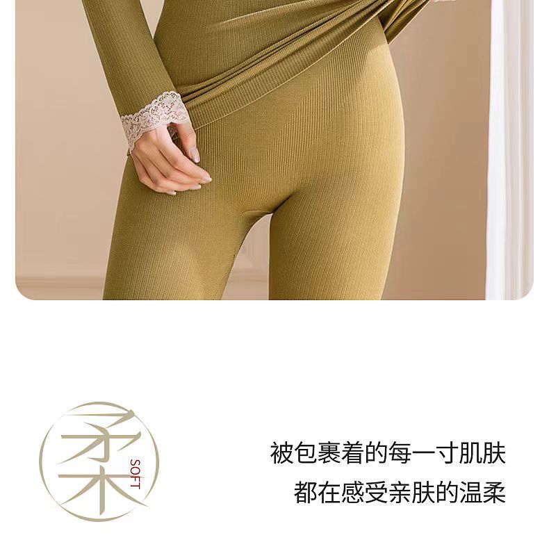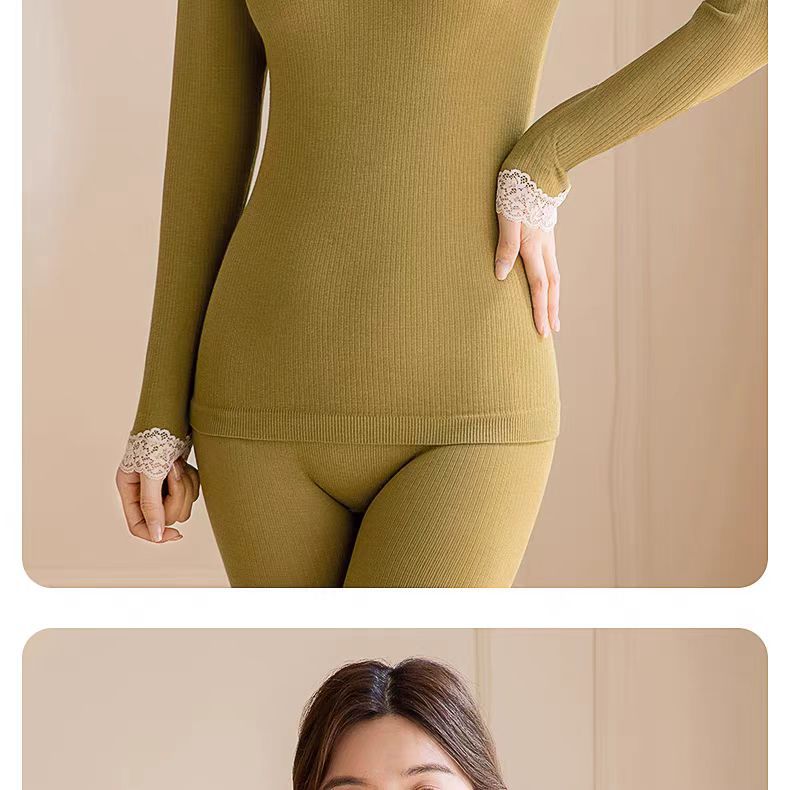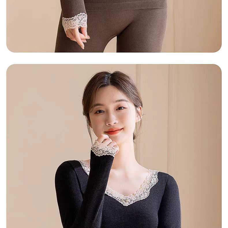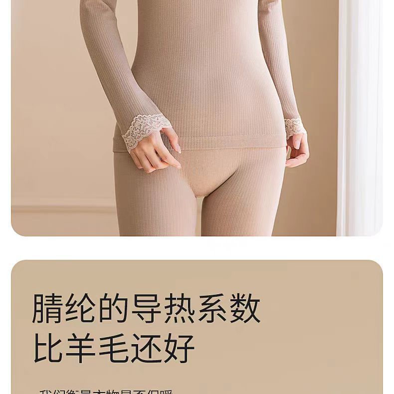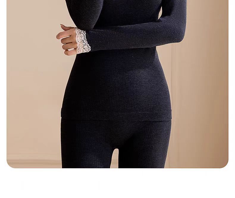 绵羊毛保暖内衣套装 腈纶蕾丝花边领秋衣秋裤女 可外穿保暖衣发热衣
