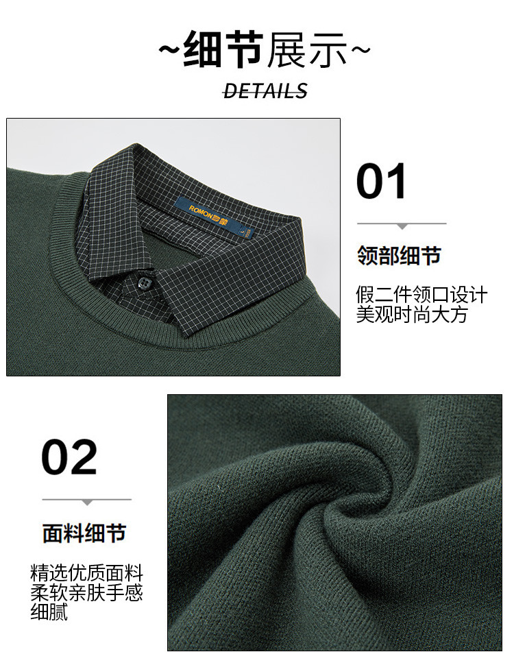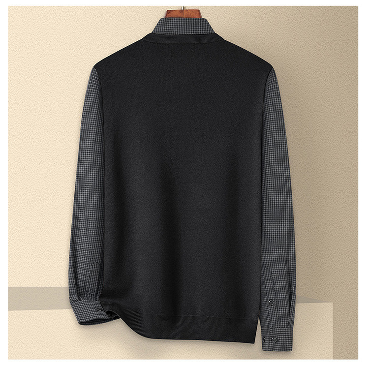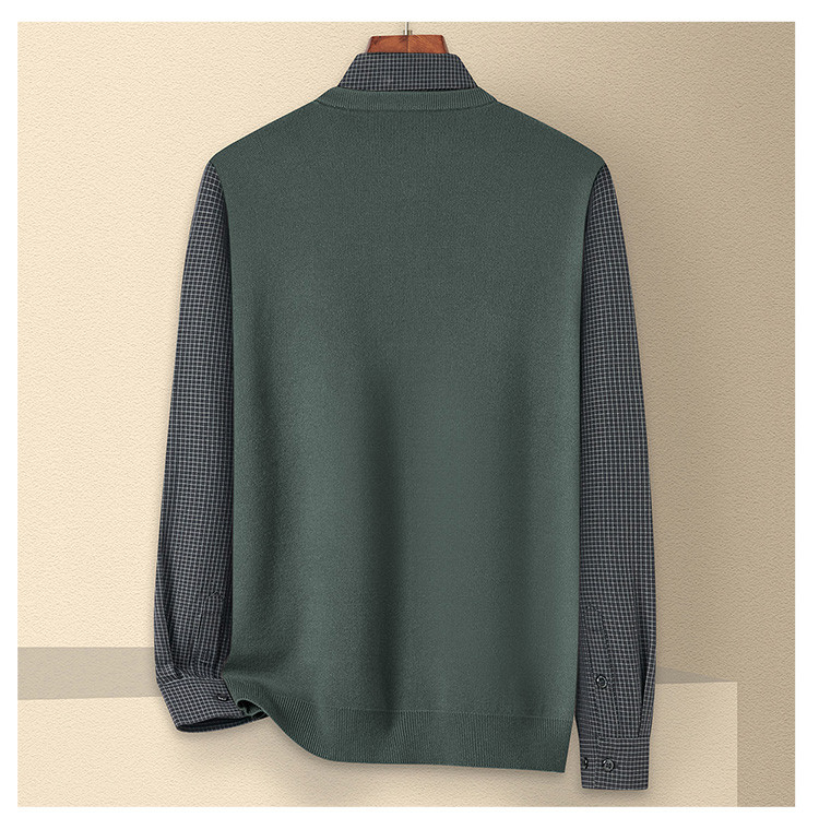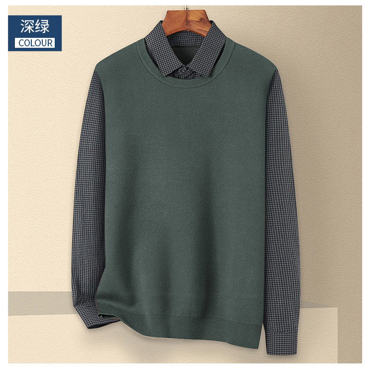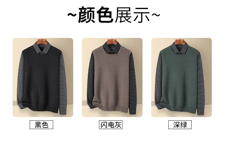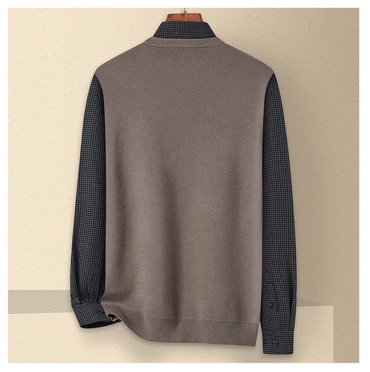 罗蒙男士秋冬复古假两件针织衫男毛衣时尚通勤休闲百搭男衬衫