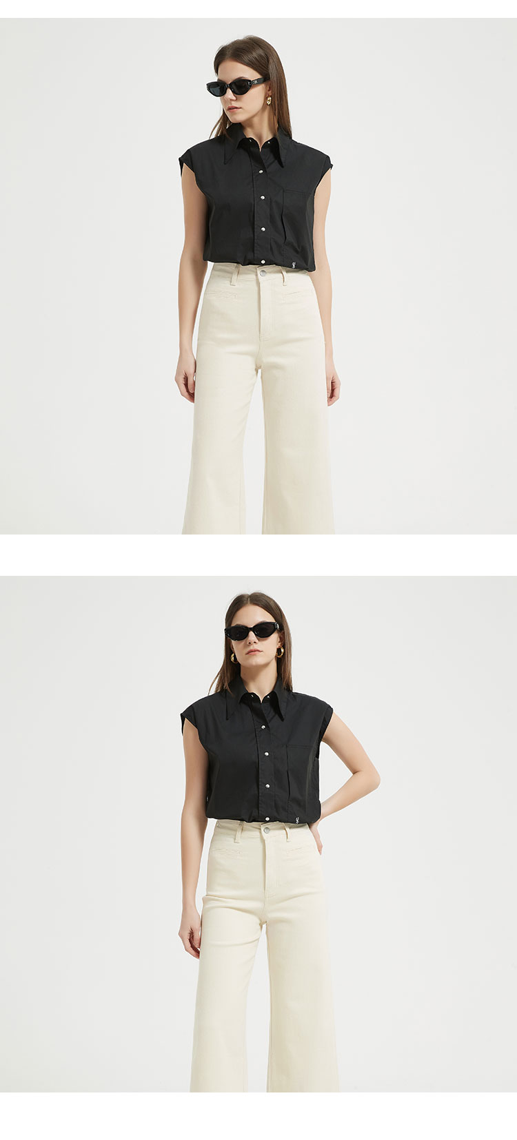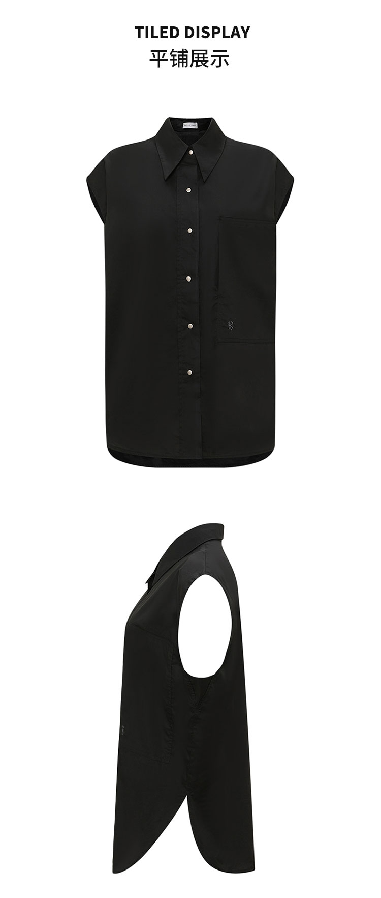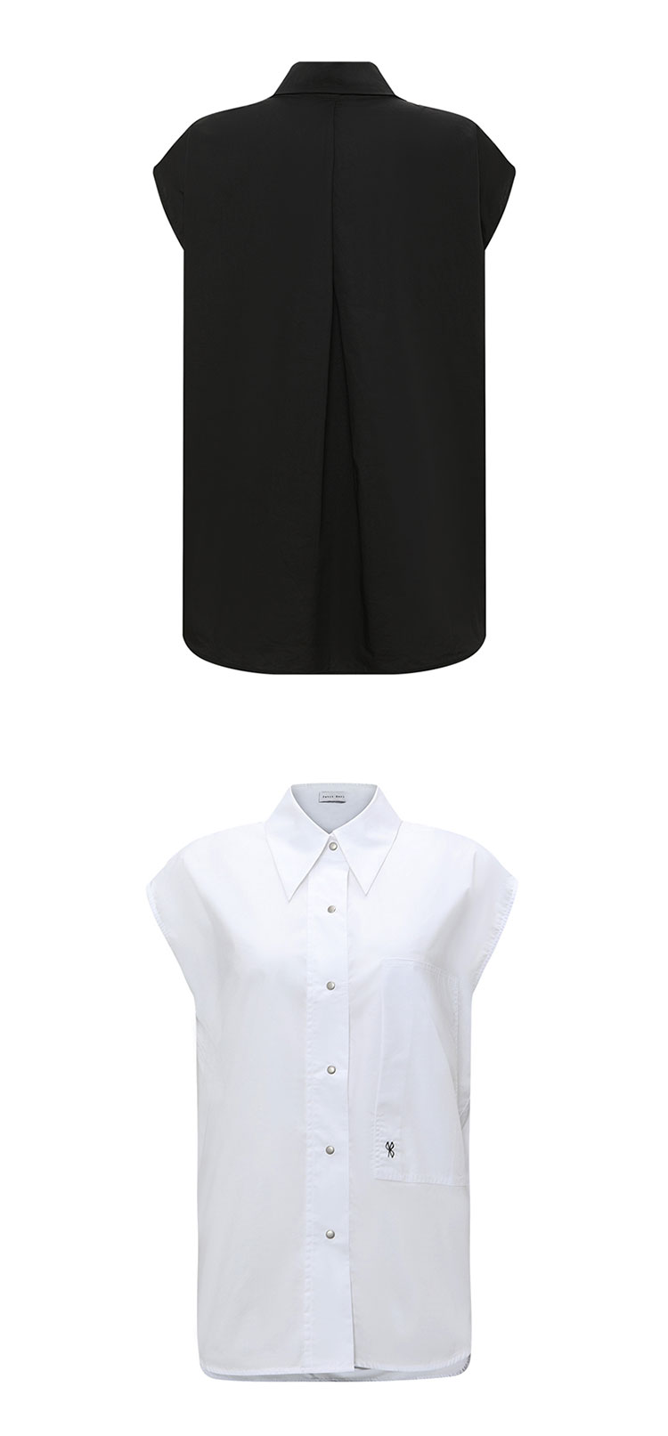 【2件9折】【Petit Bari】(多色)茧型刺绣宽松无袖衬衫 褶皱显瘦 网球穿搭