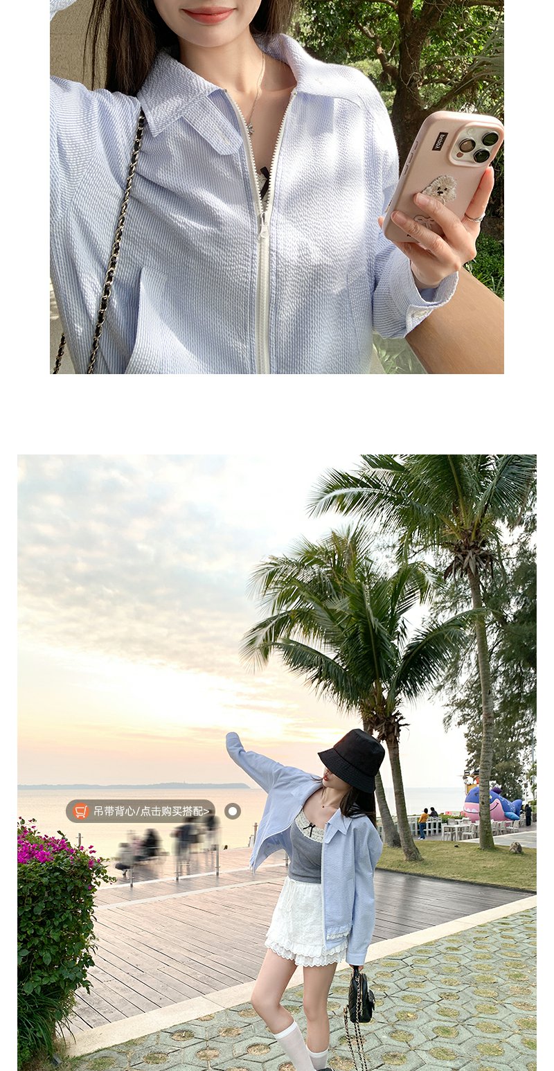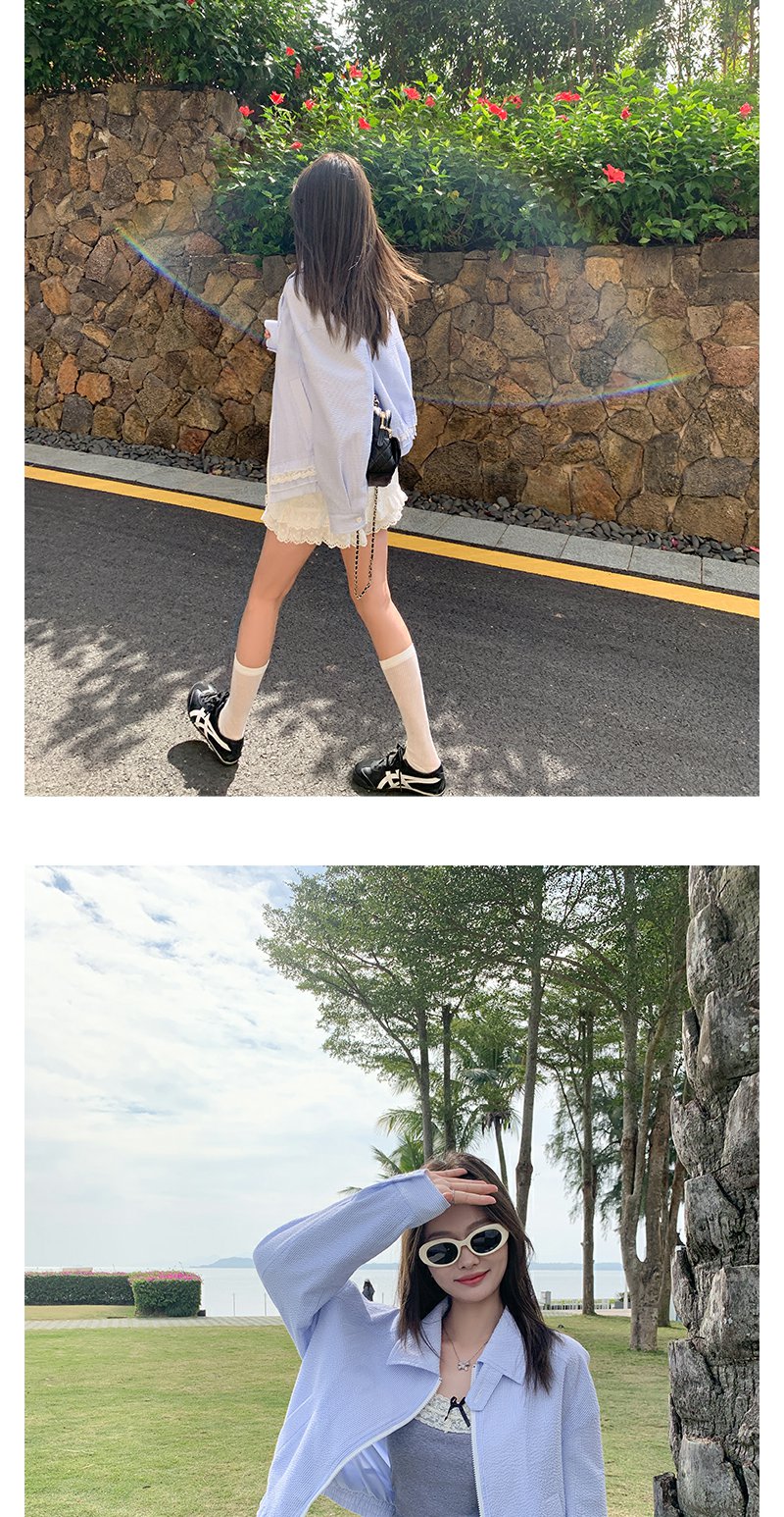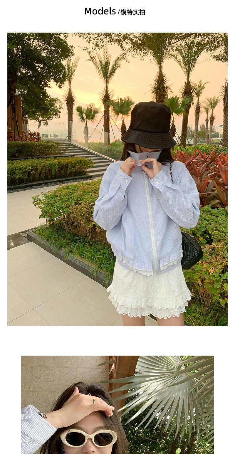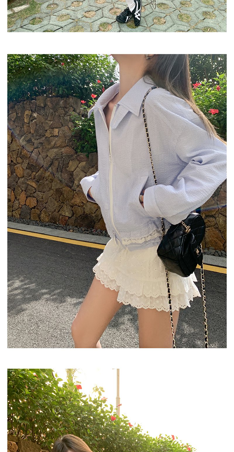 <曾小咸推荐>蕾丝拼接蓝色条纹衬衫外套