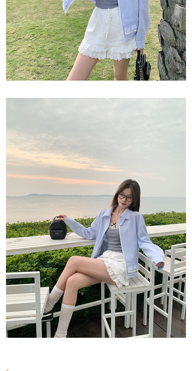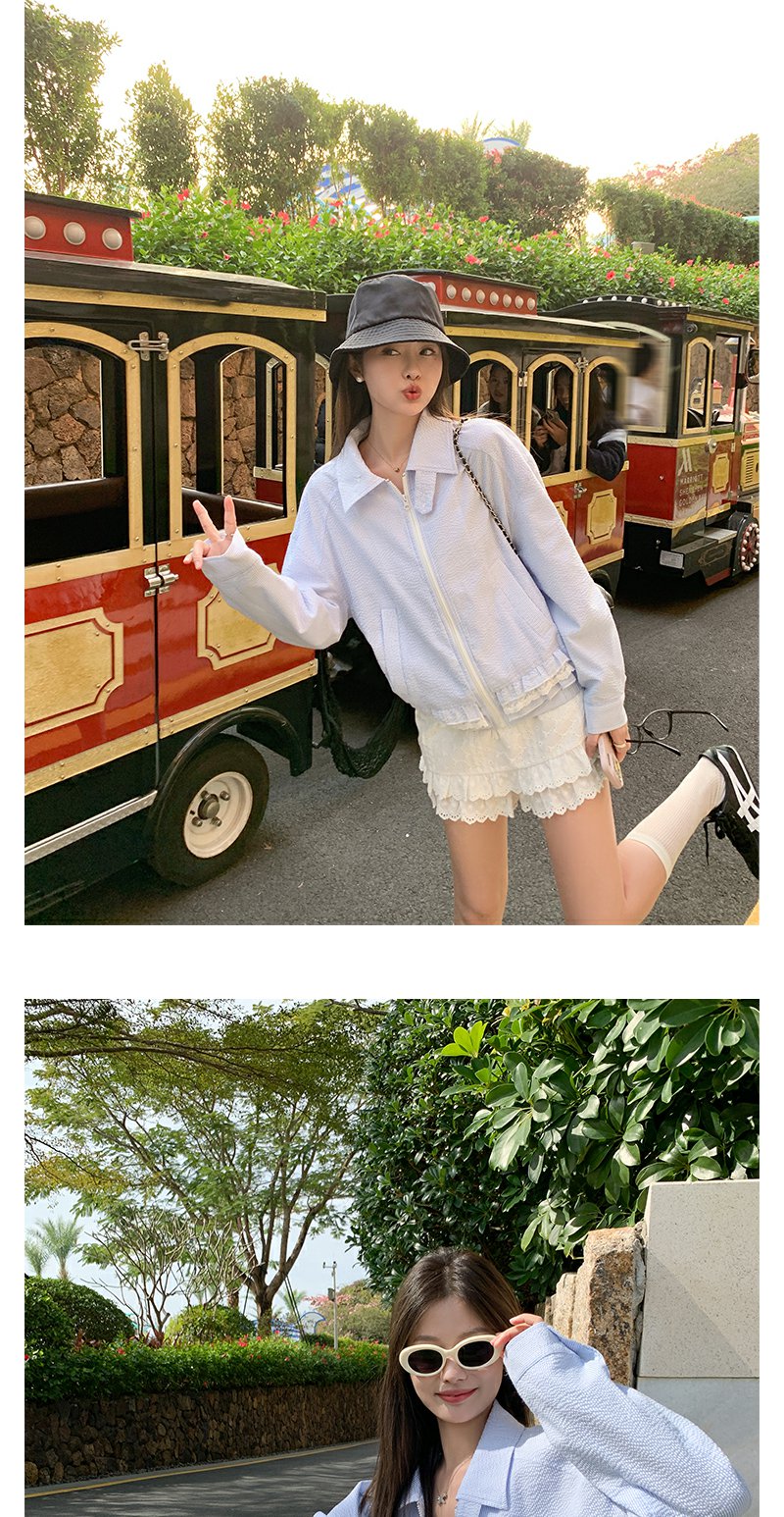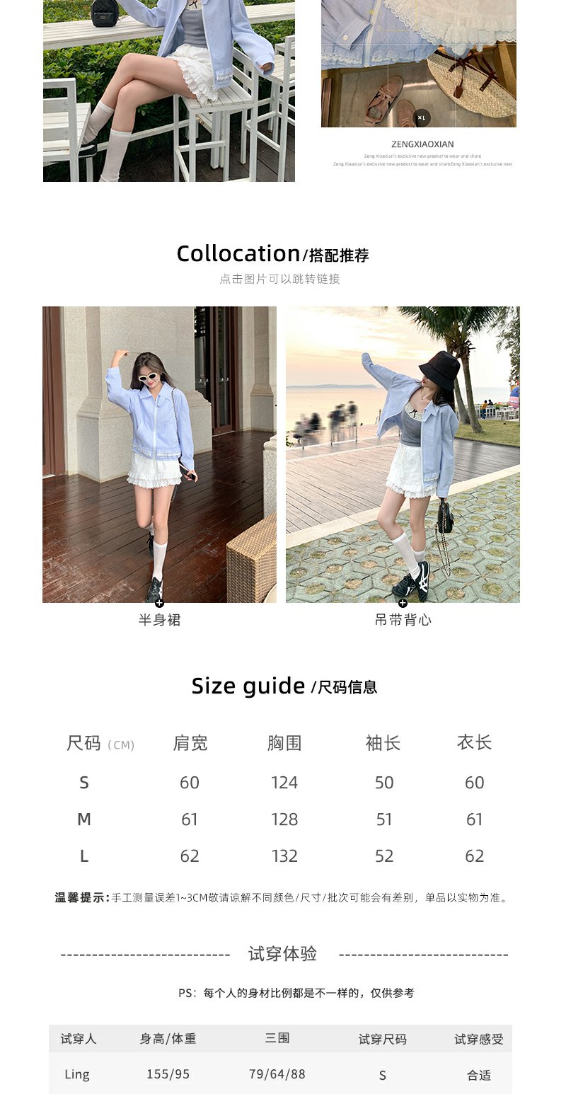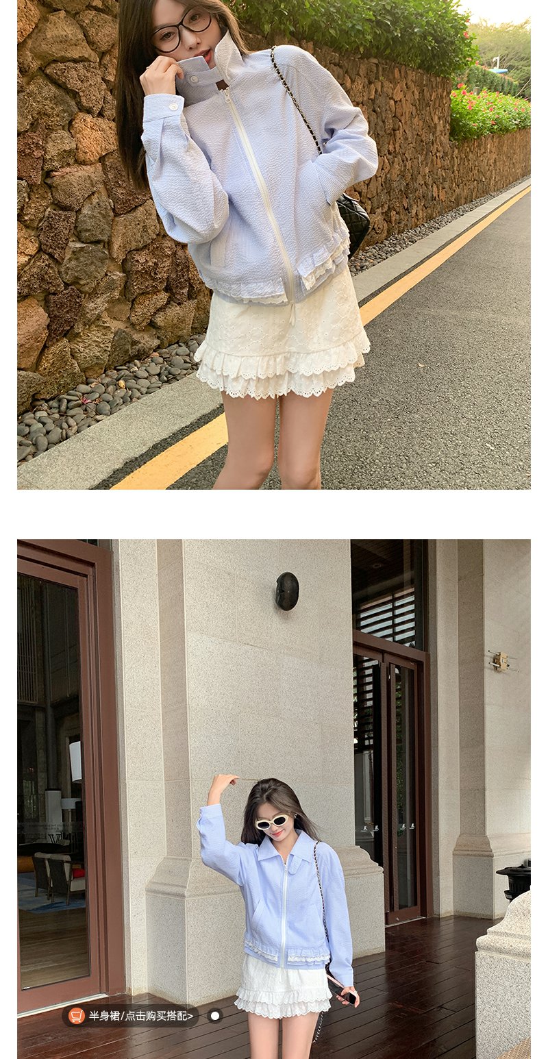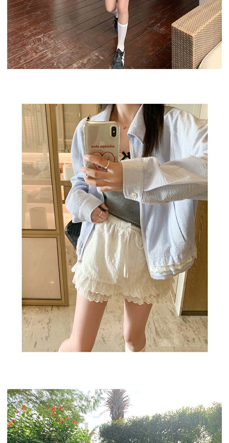 <曾小咸推荐>蕾丝拼接蓝色条纹衬衫外套