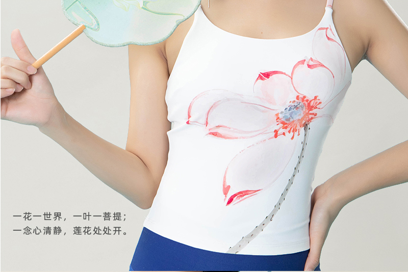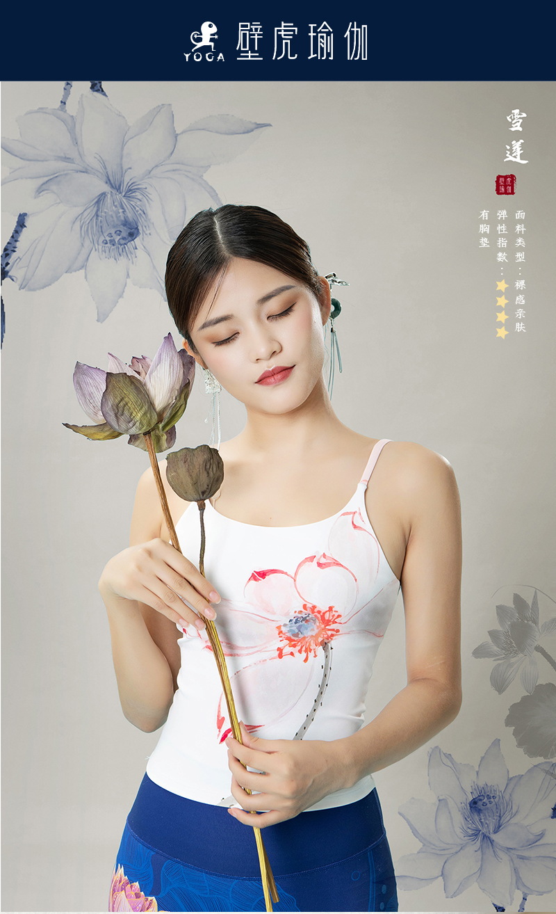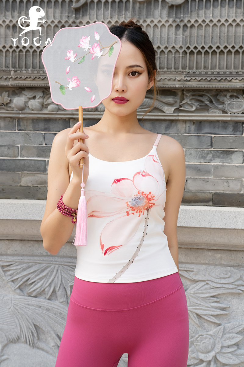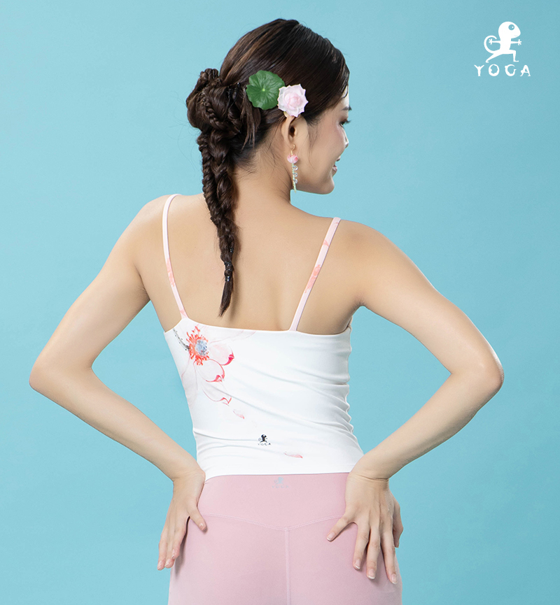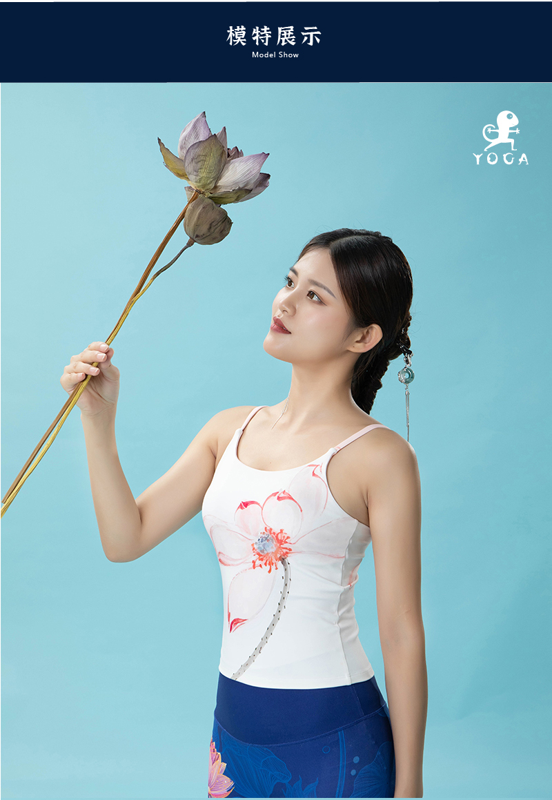 壁虎瑜伽【雪莲】印花聚拢吊带背心 (有胸垫)清仓不退不换