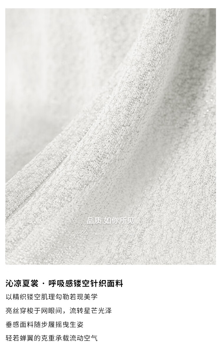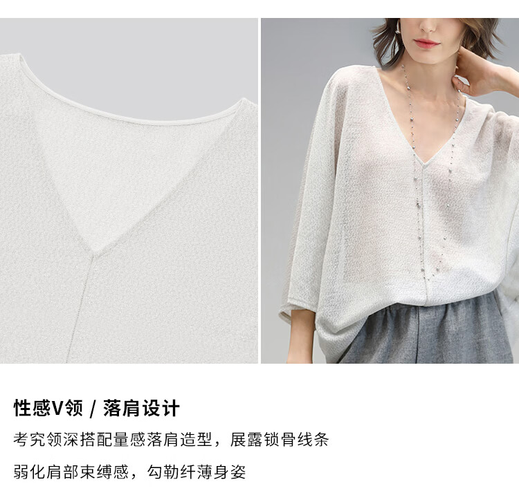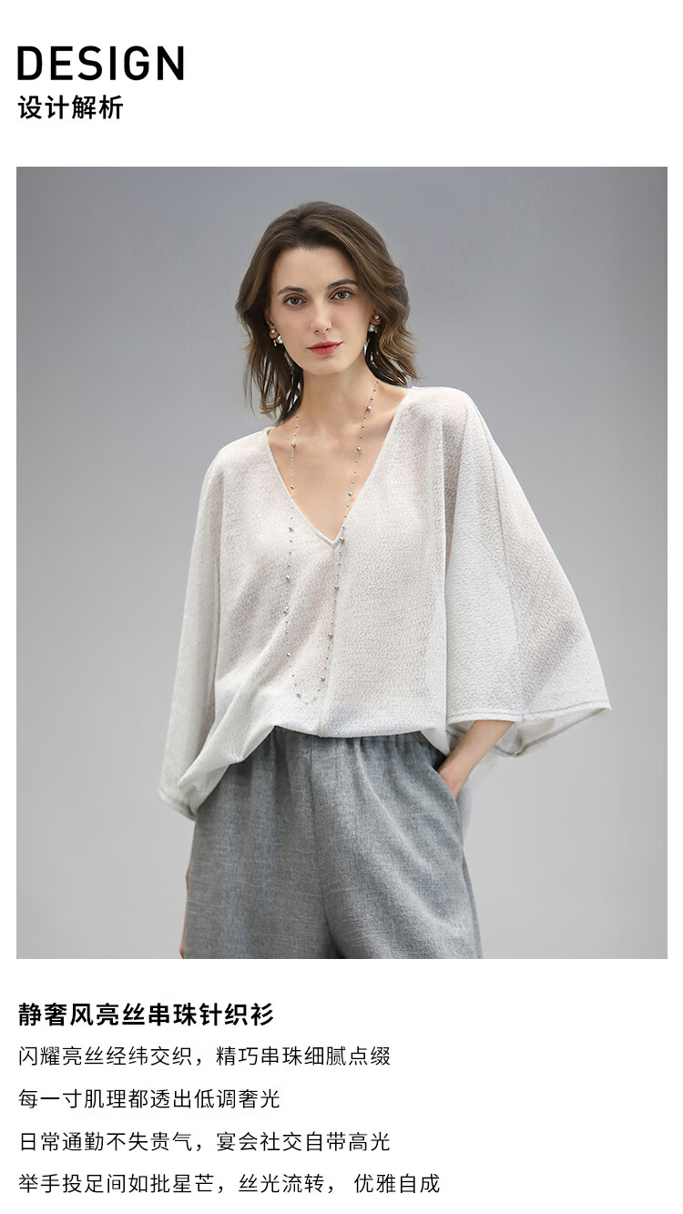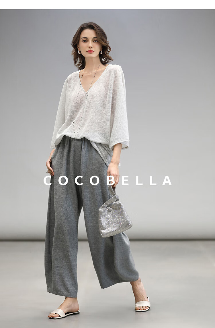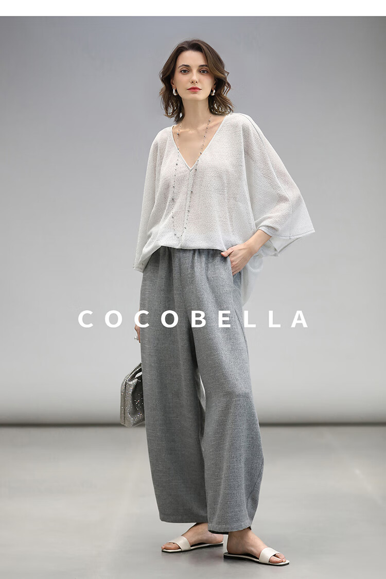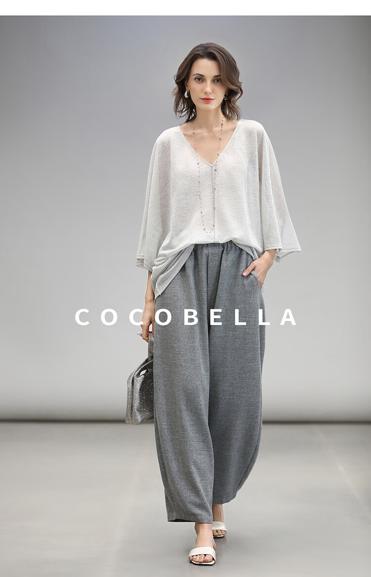 COCOBELLA细闪银葱针织衫女夏宽松遮阳T恤慵懒风V领罩衫TS3196