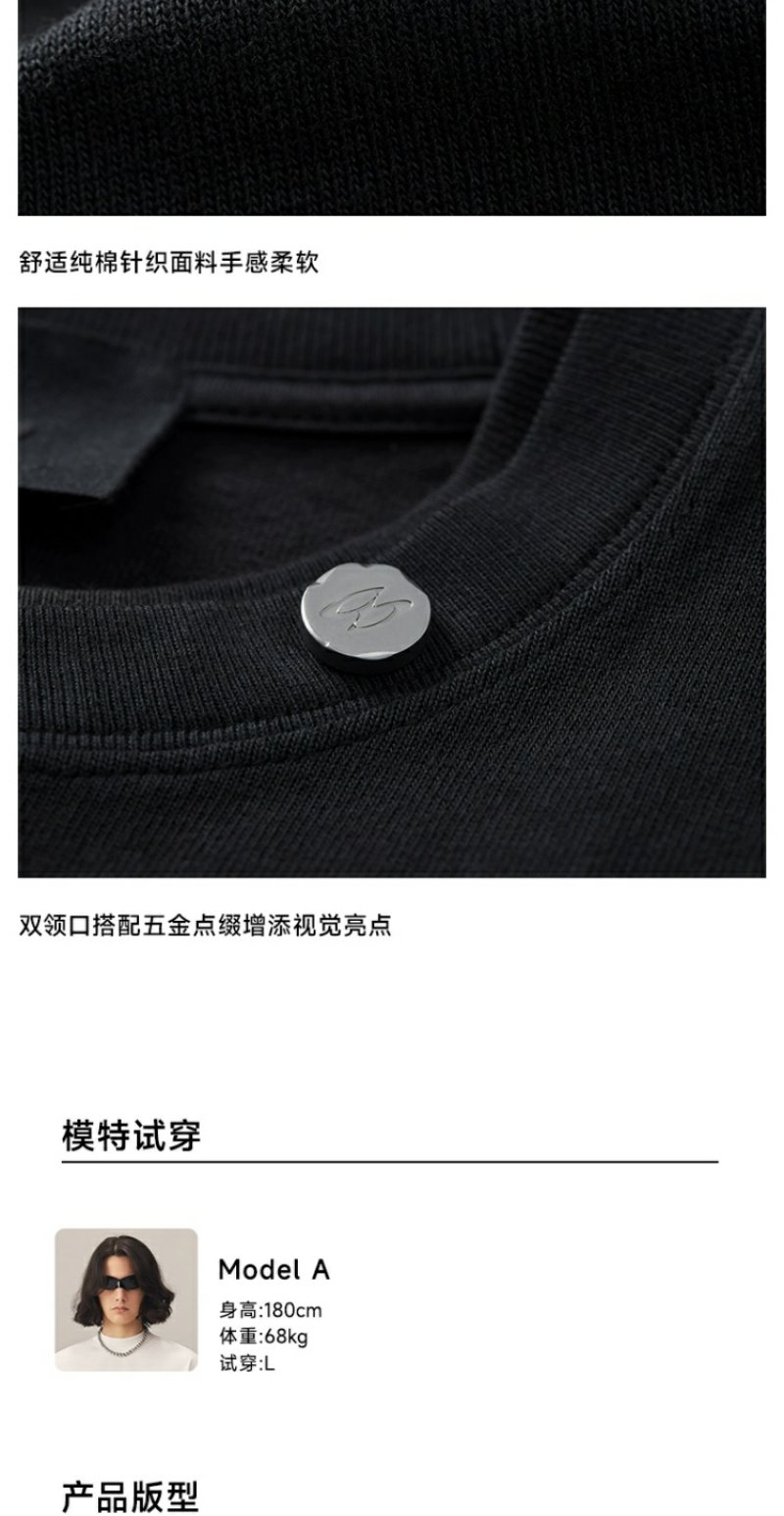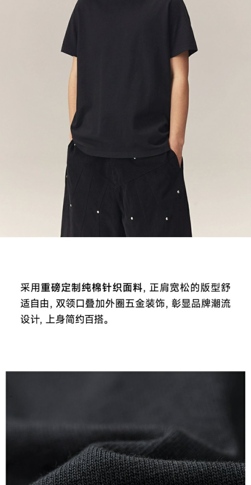 【黑水系列】CHINISM双领口重磅300g短袖T恤男纯棉夏半袖商场同款