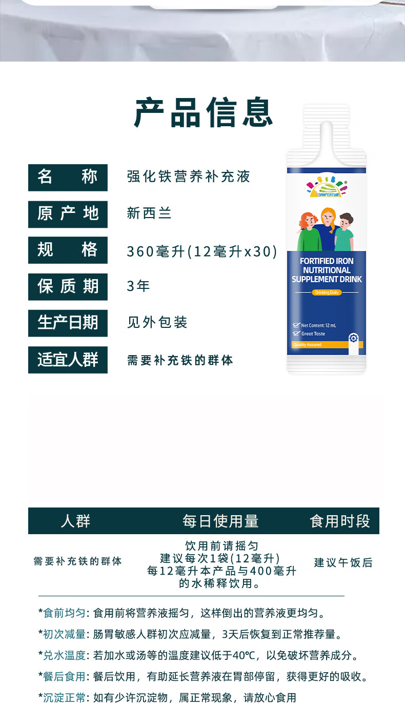 叁佰添新版强化铁营养补充液铝袋装12毫升*30包