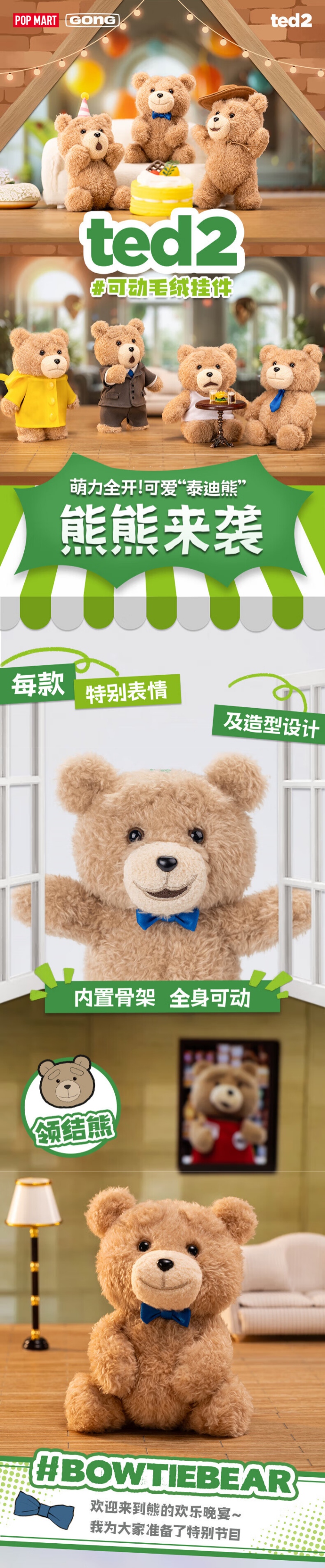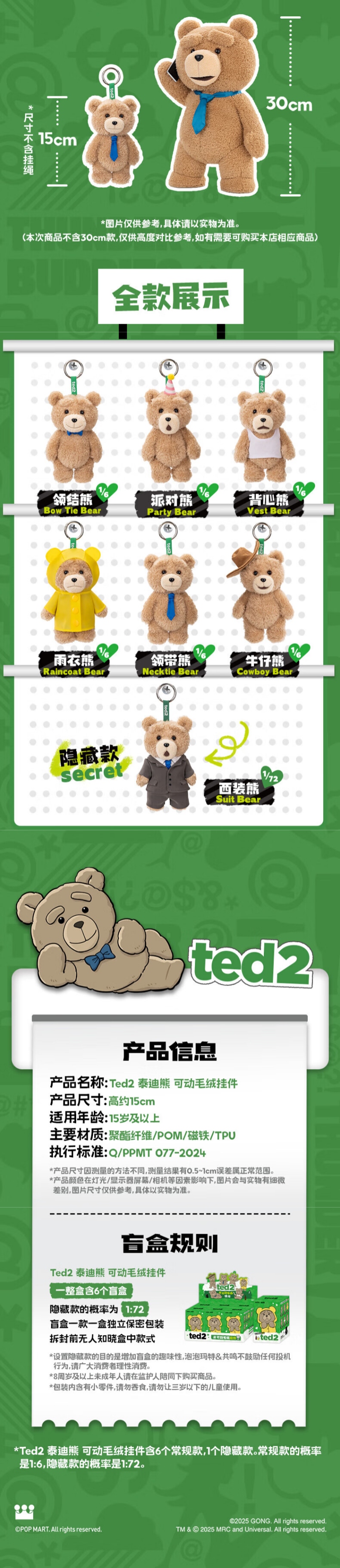 POP MART泡泡玛特 Ted2 泰迪熊可动毛绒挂件盲盒