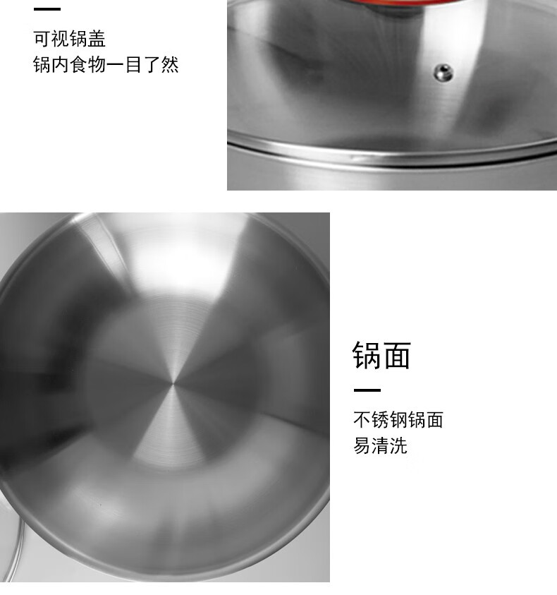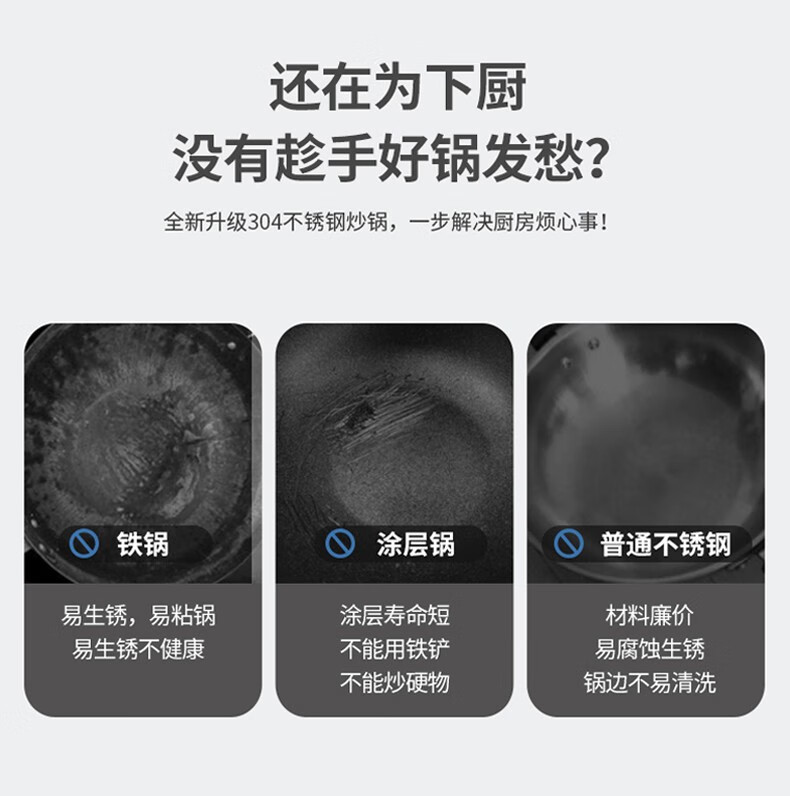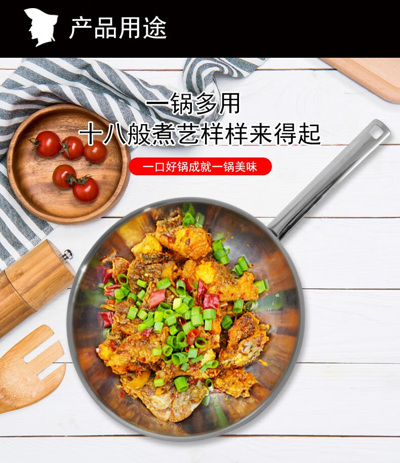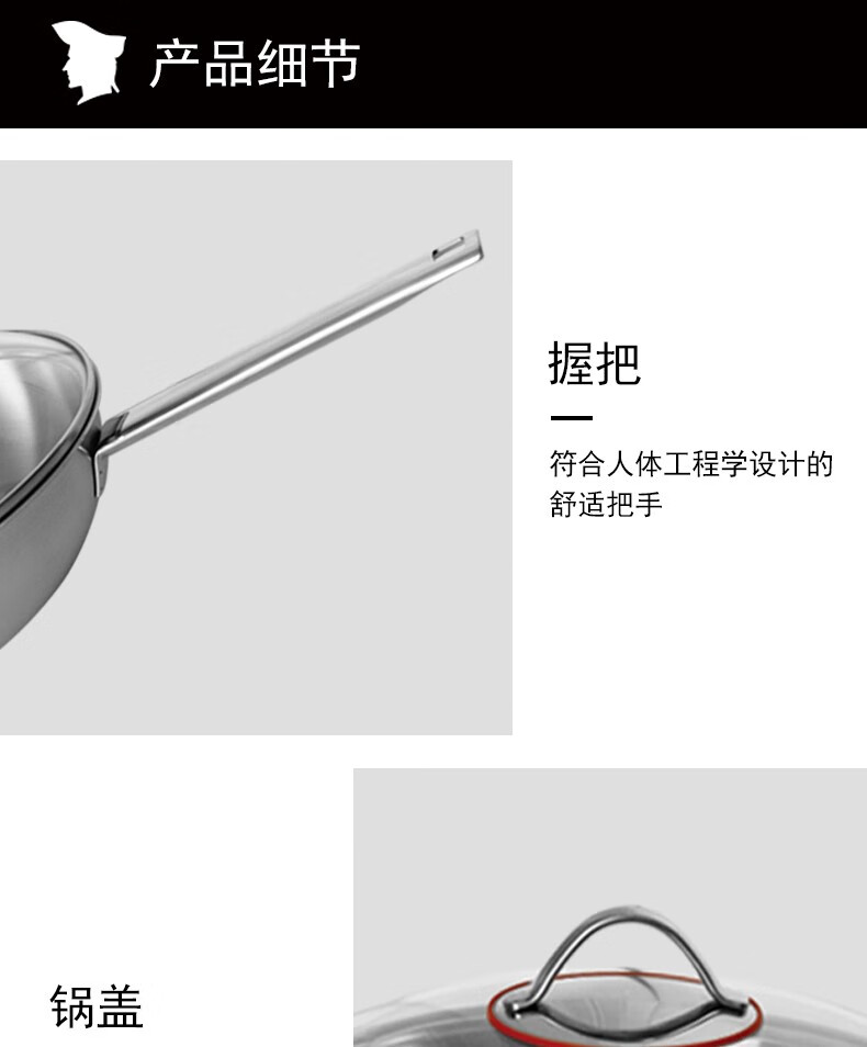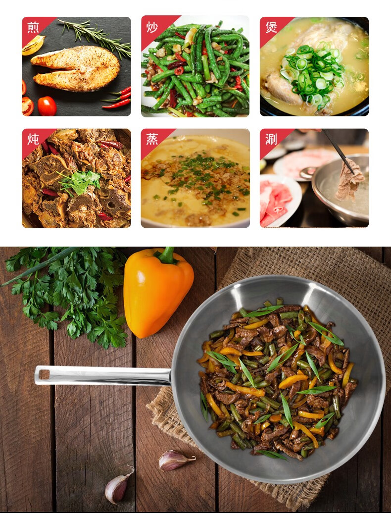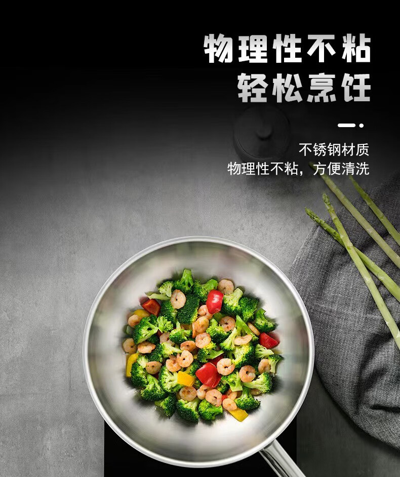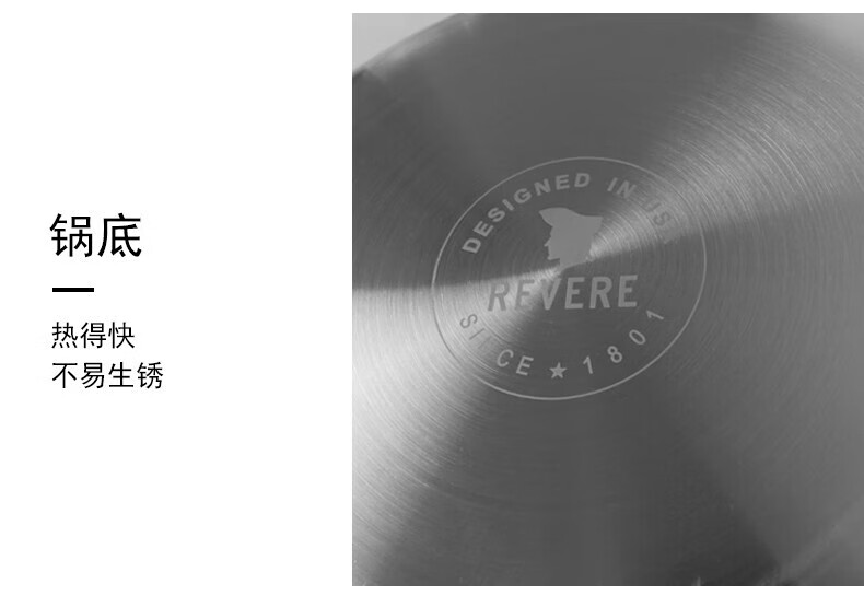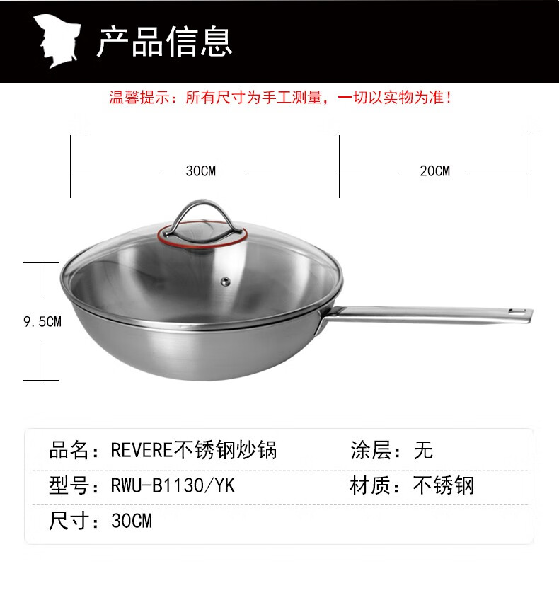 【小家电】Revere不锈钢炒锅30cm少油烟无涂层 物理不粘 不挑炉灶RWU-B1130/YK HF