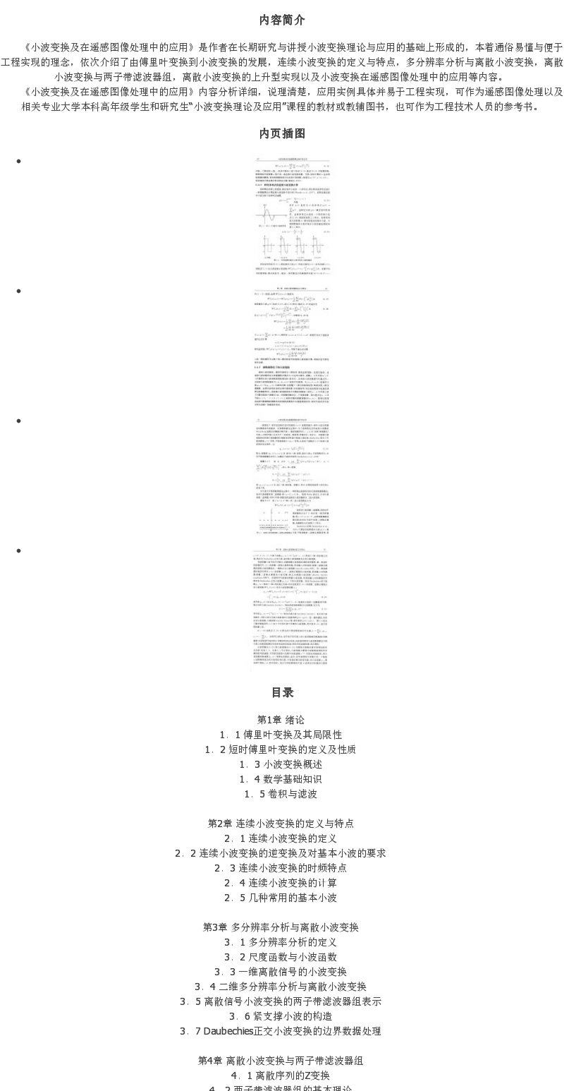 《小波变换及在遥感图像处理中的应用》(耿则勋,邢帅,魏小峰)