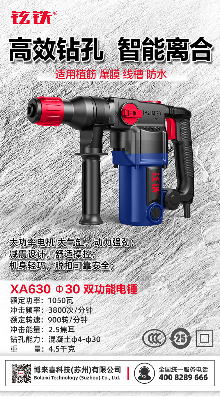 铉铁牌XA630电锤φ30mm(重型两用)