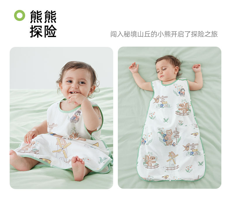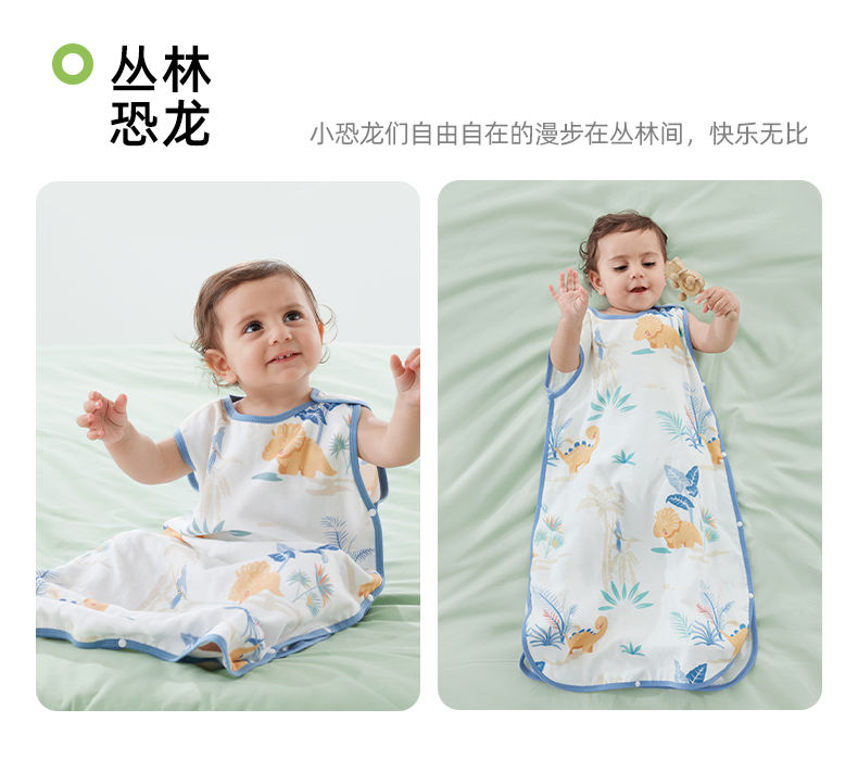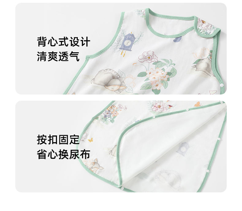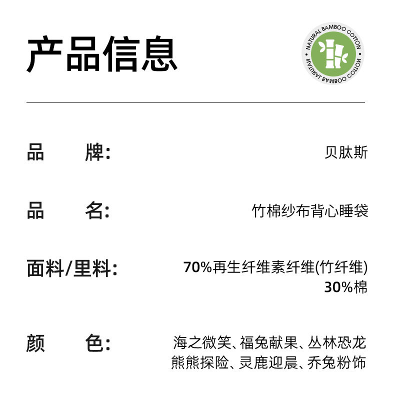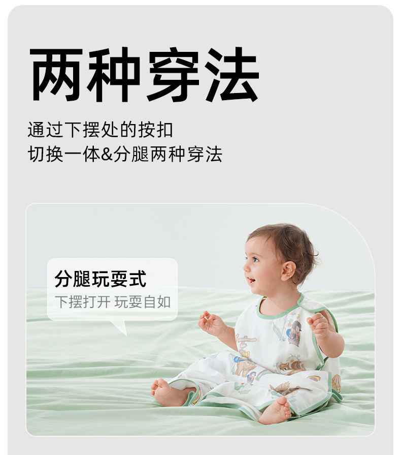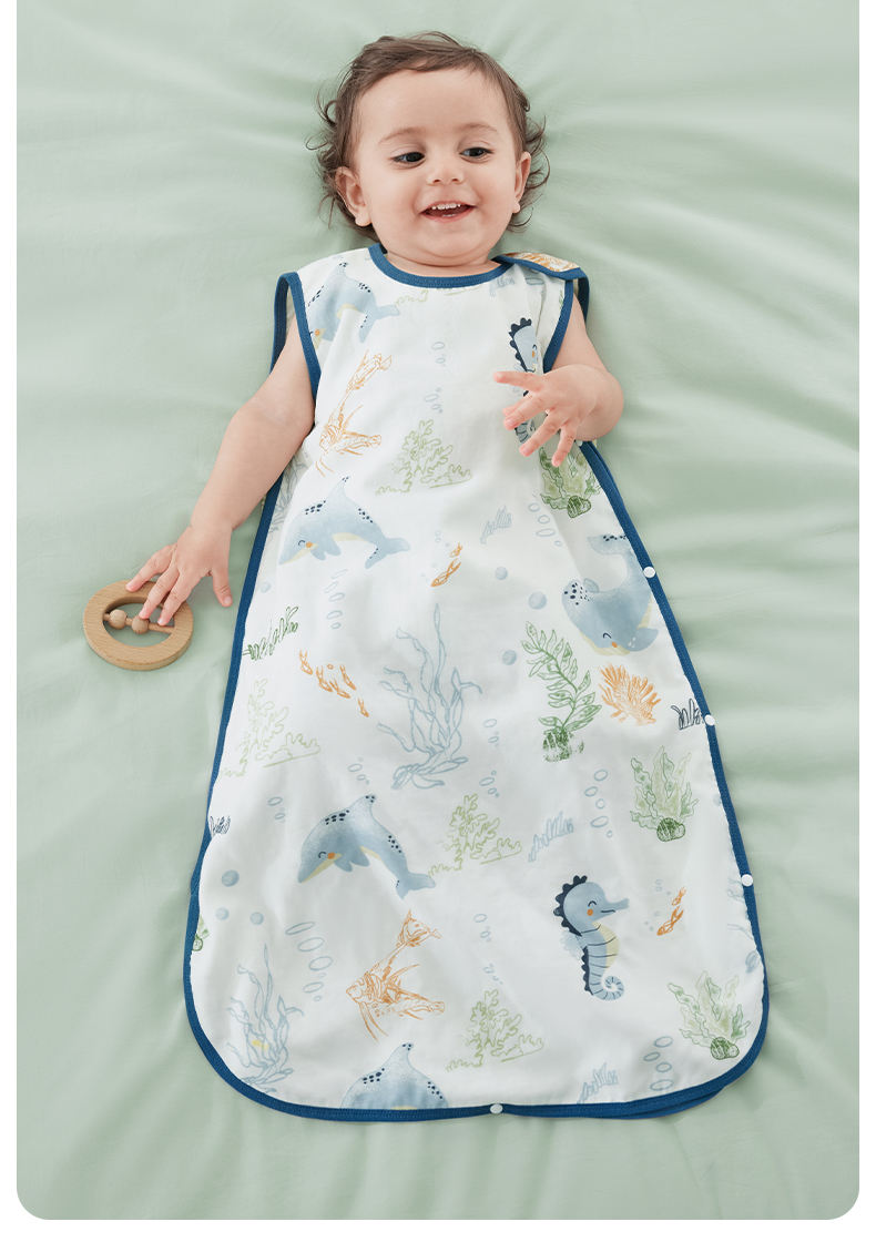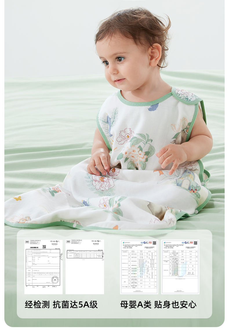 贝肽斯婴儿纱布睡袋夏季薄款宝宝竹棉背心式睡衣儿童防踢被子神器
