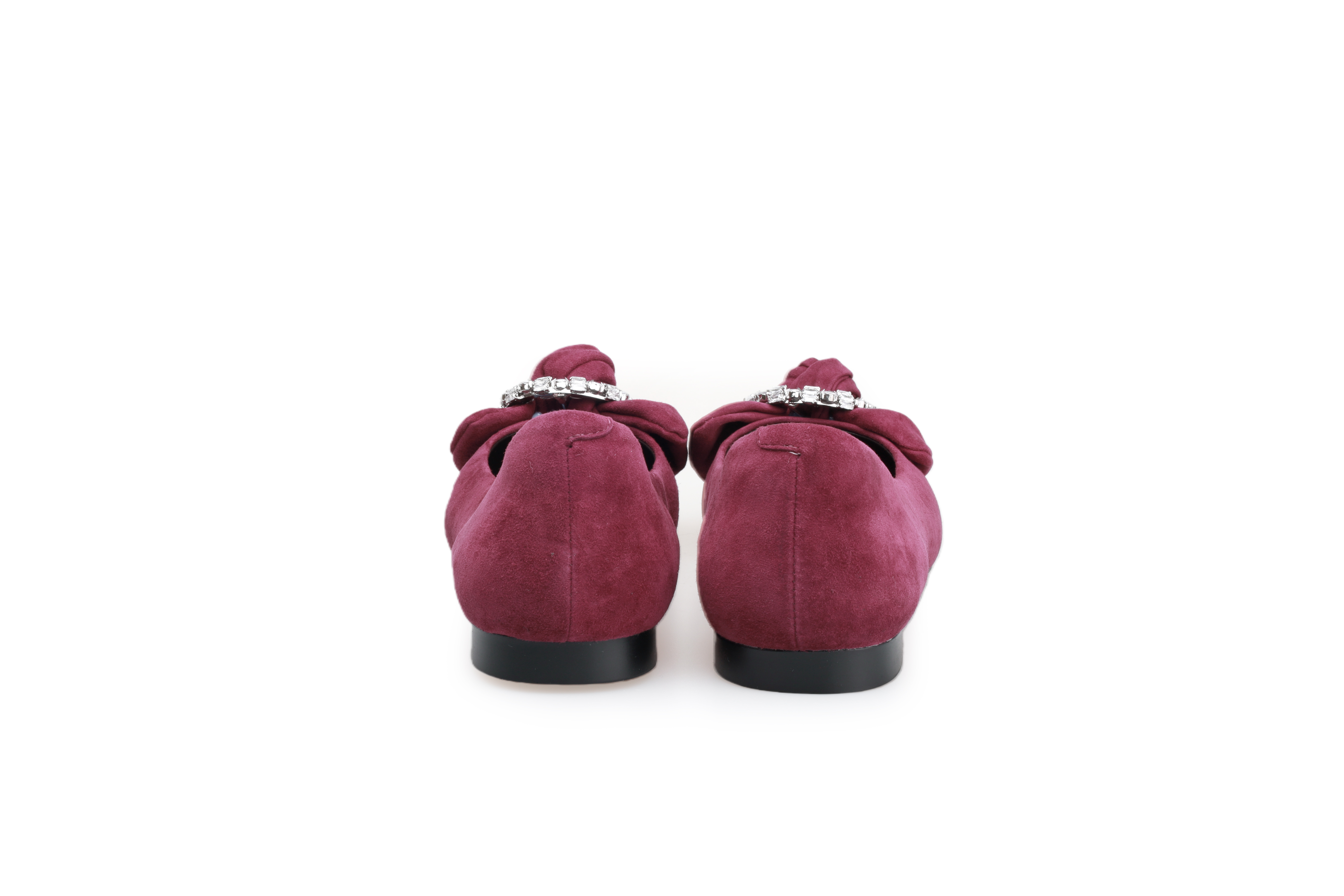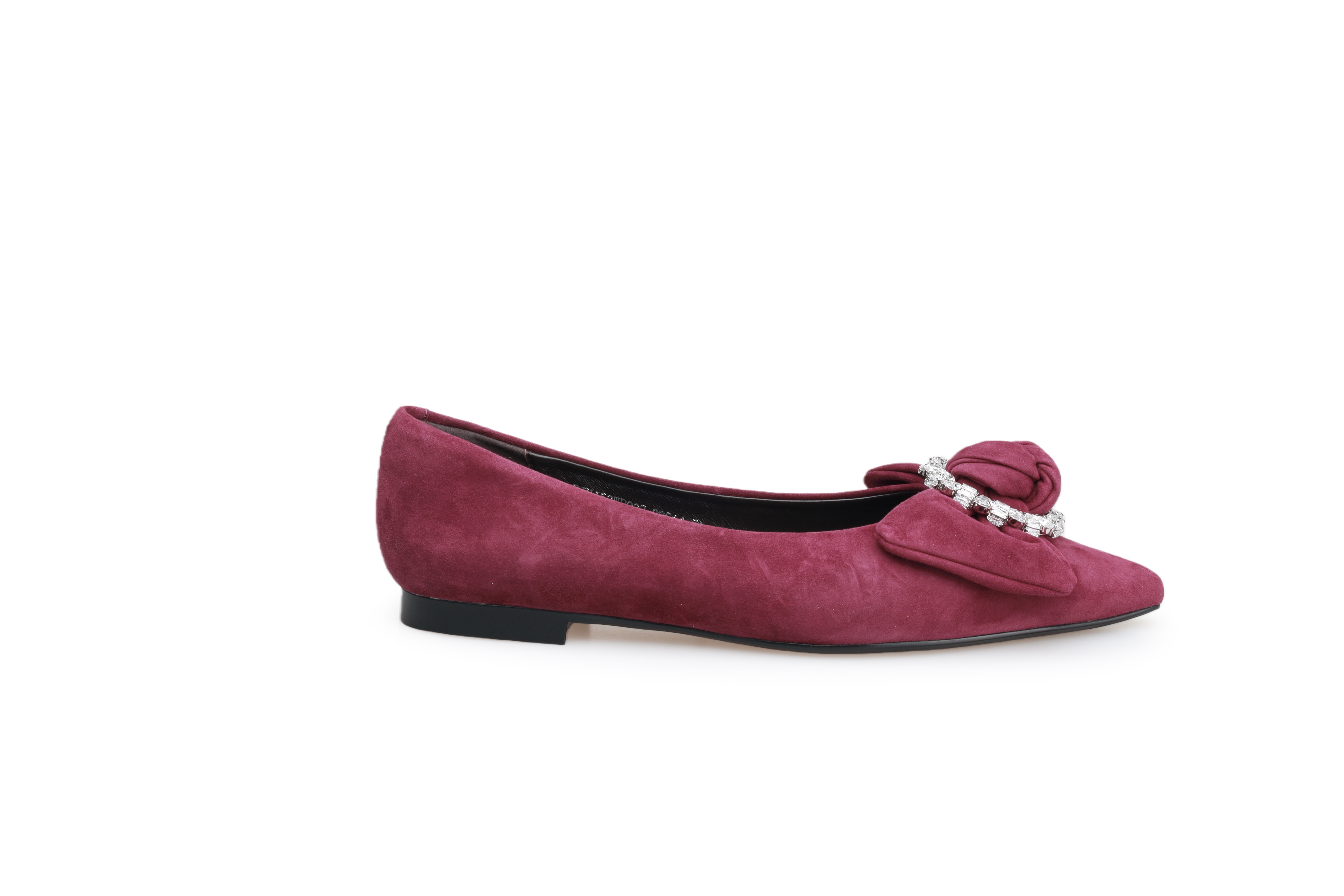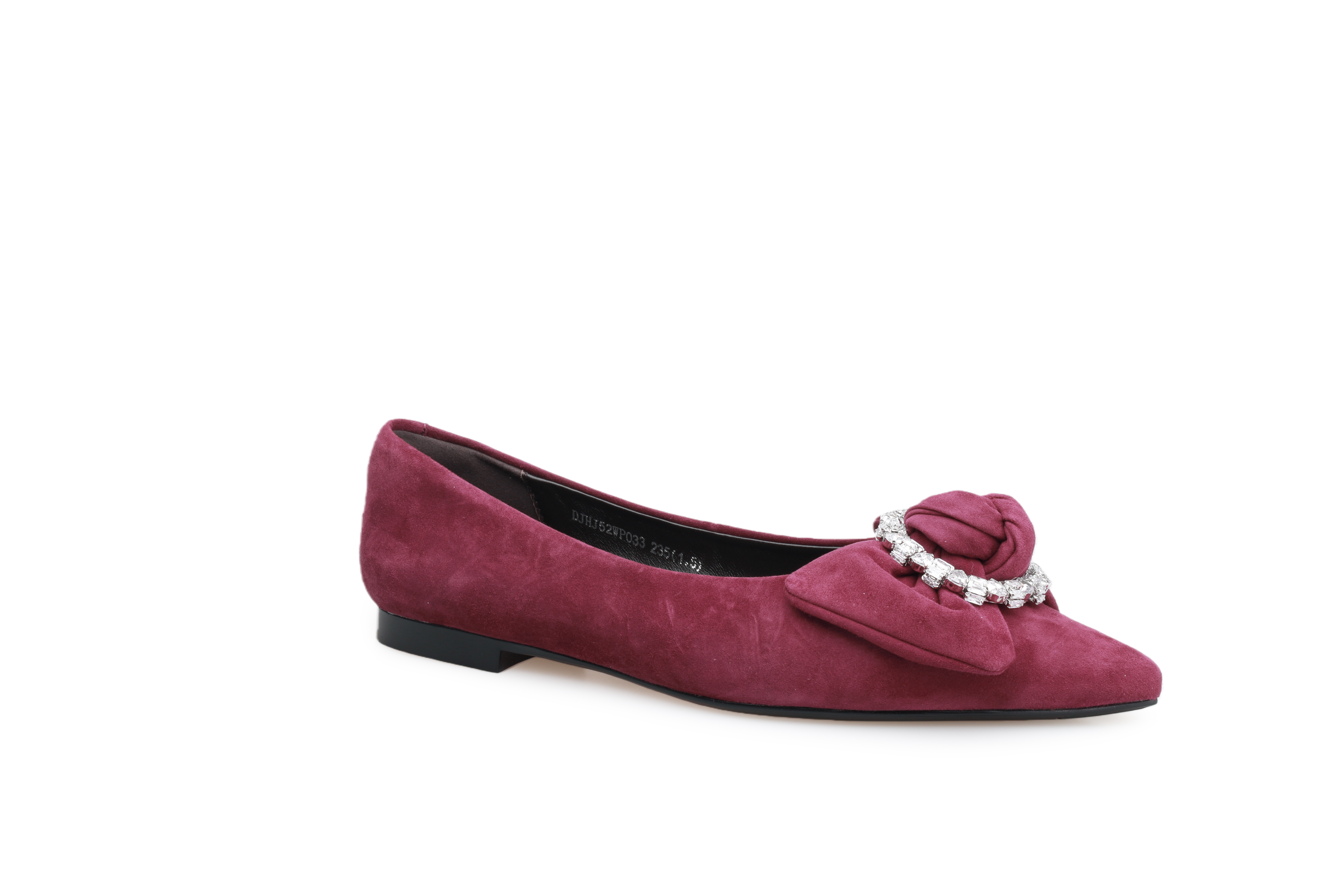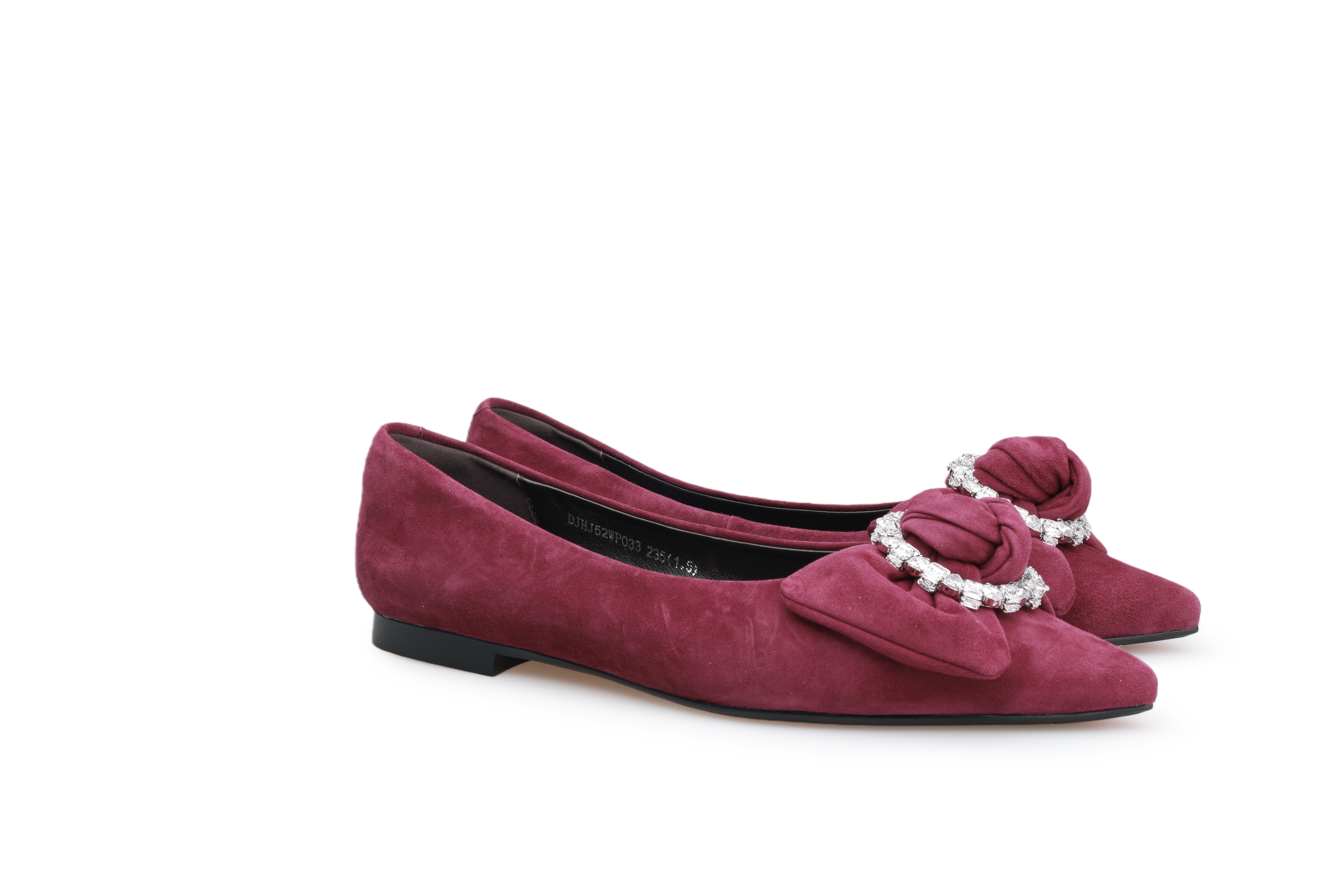 豪麟名鞋迪嘉女鞋平底鞋羊反绒面革DJHJA52WP033酒红色