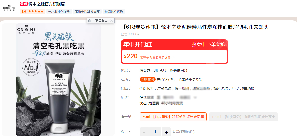 【品名】悦木之源泥娃娃活性炭涂抹面膜净彻毛孔去黑头75ml