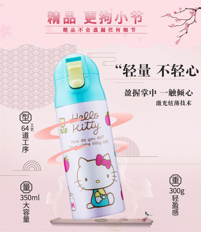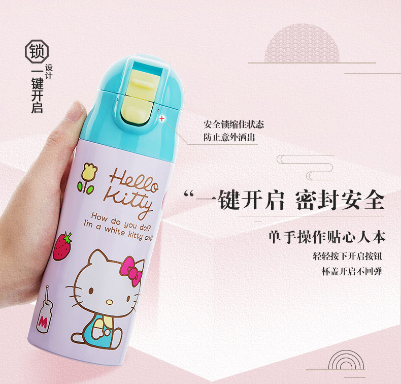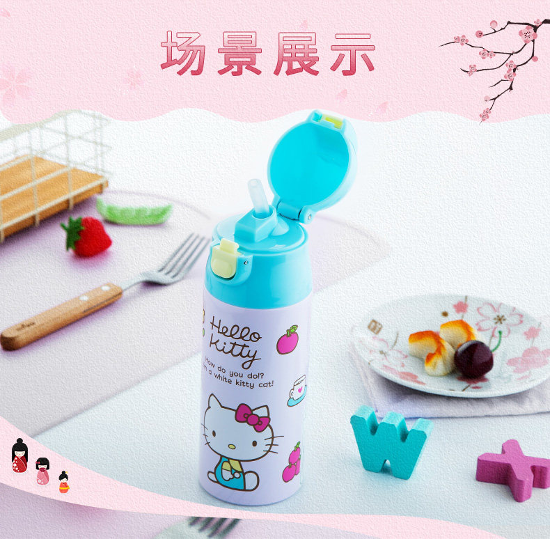 skater斯凯达日本进口Hello Kitty保温杯 儿童带吸管不锈钢水杯