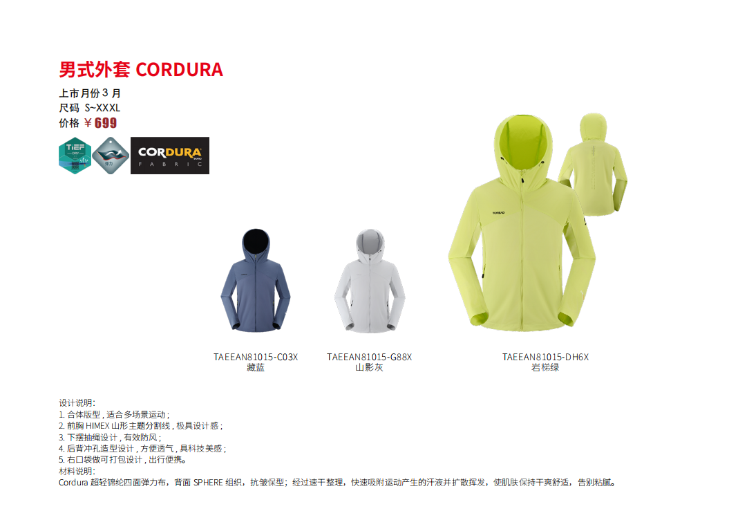 探路者CORDURA男式外套TAEEAN81015