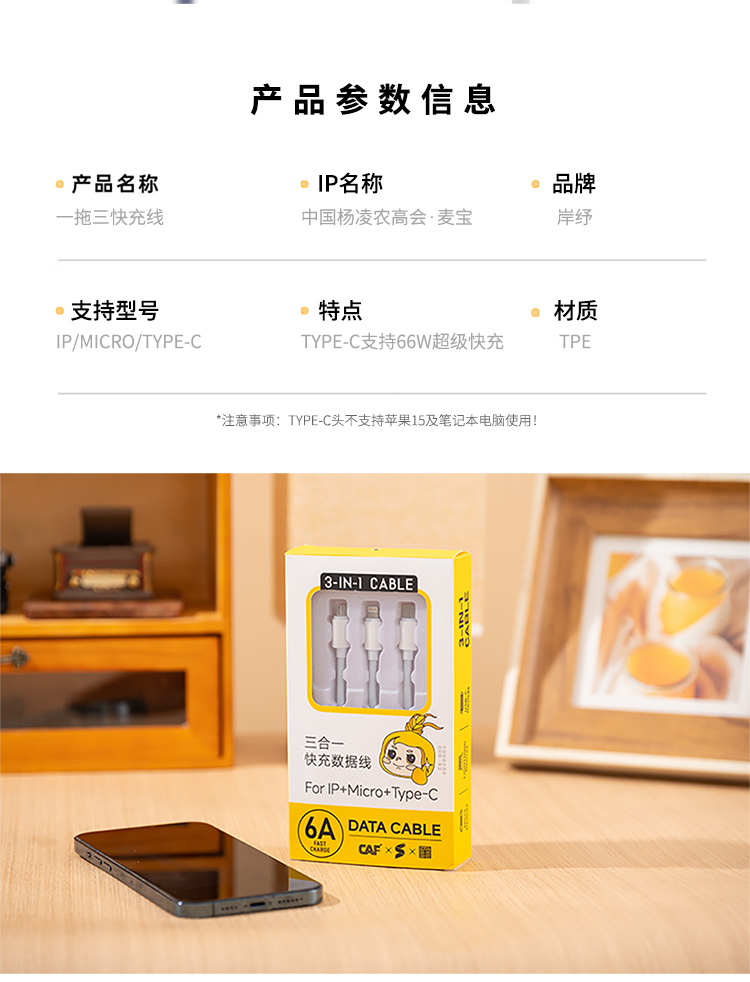 经典】中国杨凌农高会联名款 岸纾新升级款三合一快充数据线 一线三用