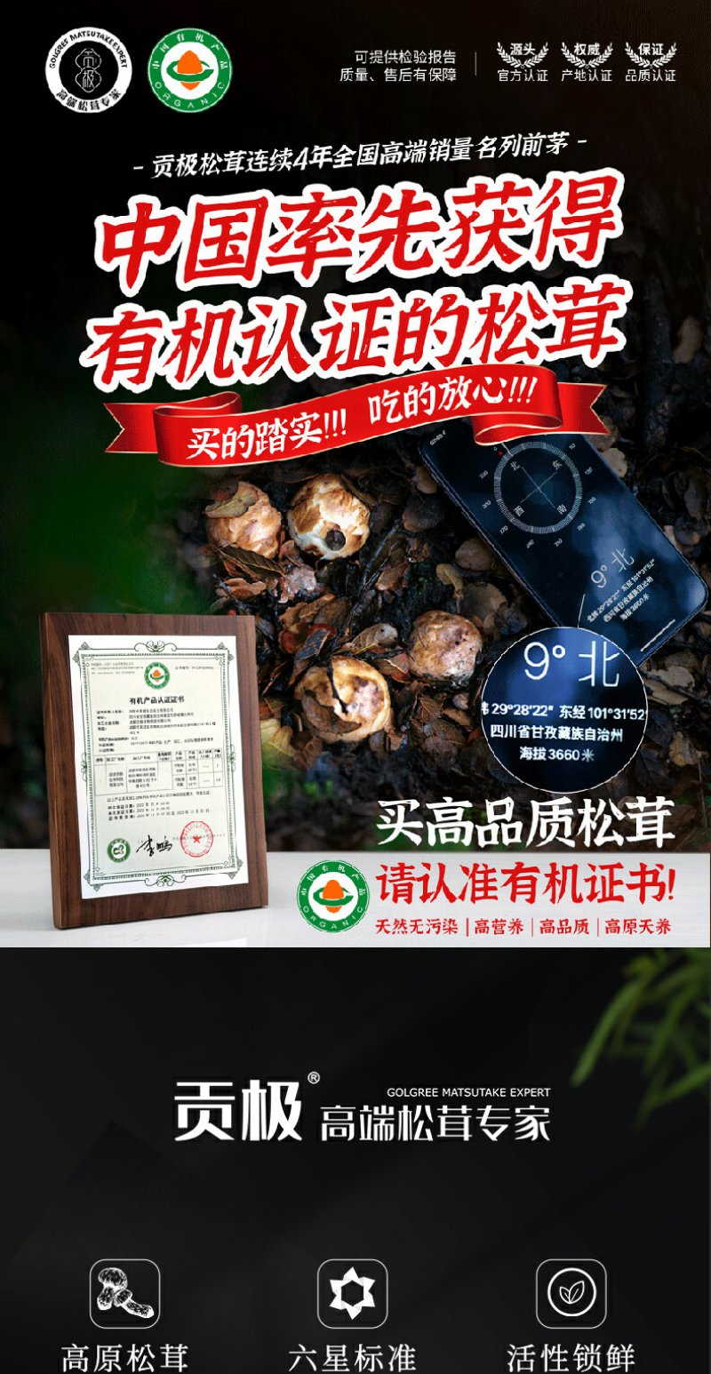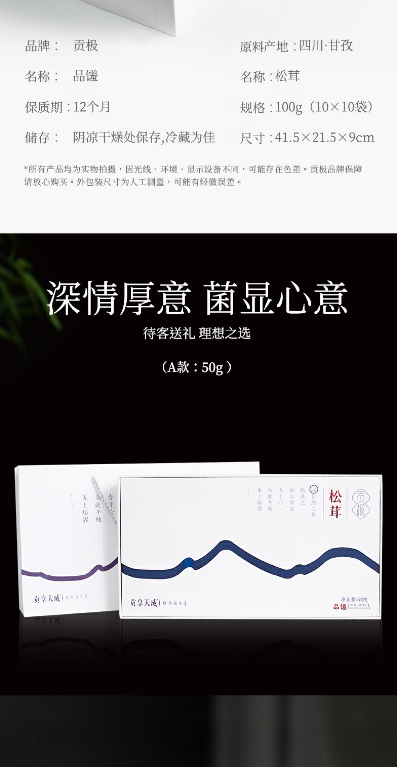 贡极 松茸菌菇干货礼盒甘孜雅江松茸 品馐松茸干片