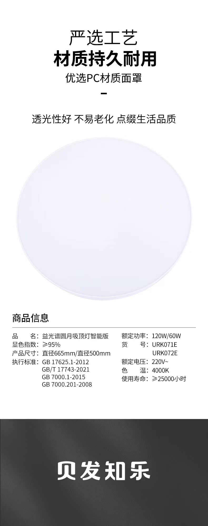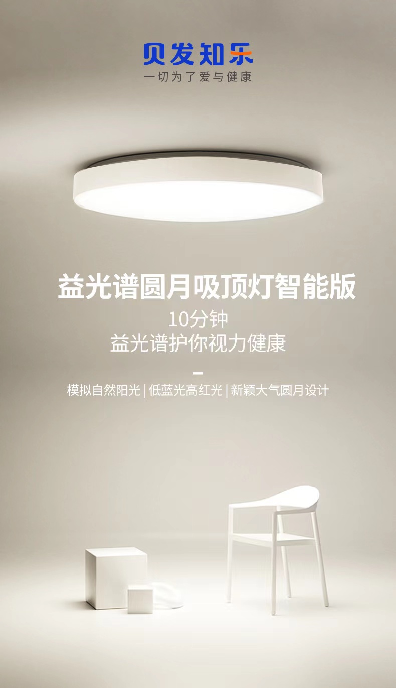 贝发知乐 益光谱圆月吸顶灯智能版 低蓝光高红光九档亮度调节