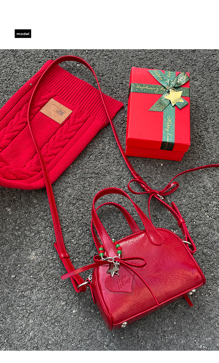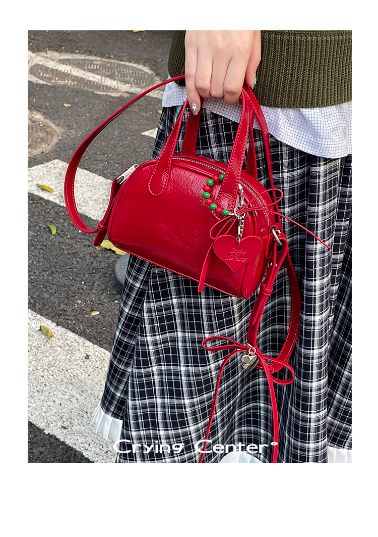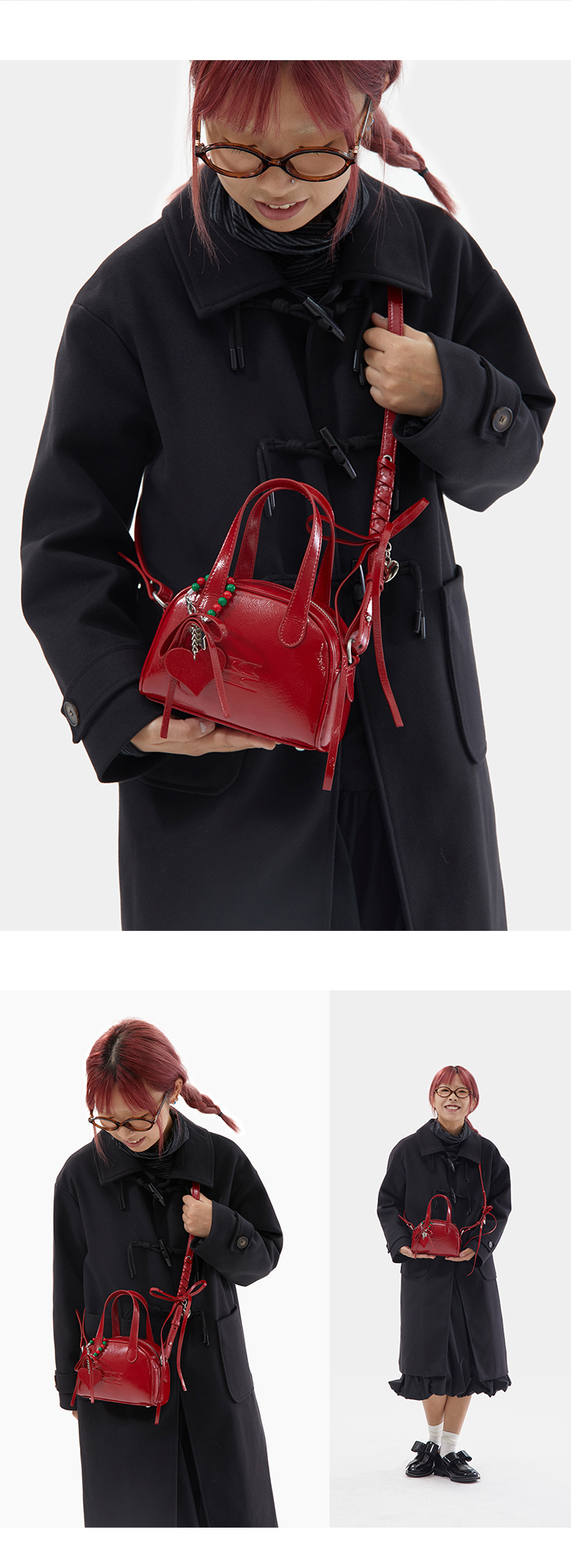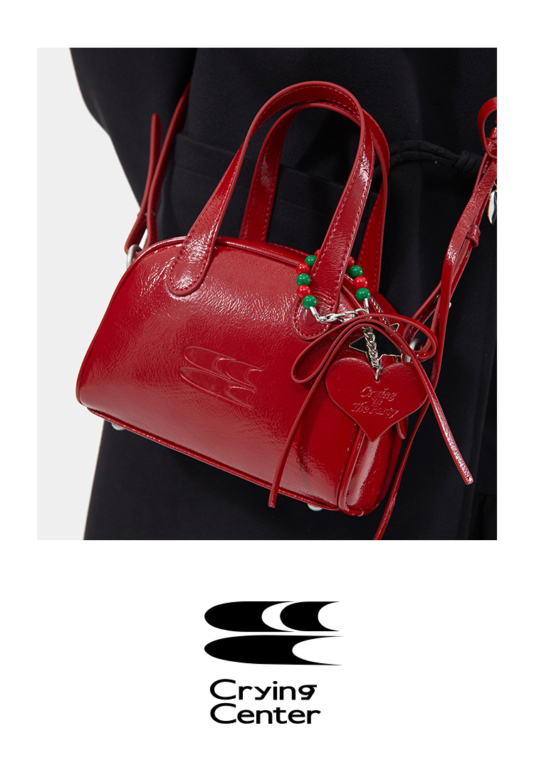 CryingCenter圣诞红mini波士顿蝴蝶结油蜡亮皮大学生经典斜挎皮包