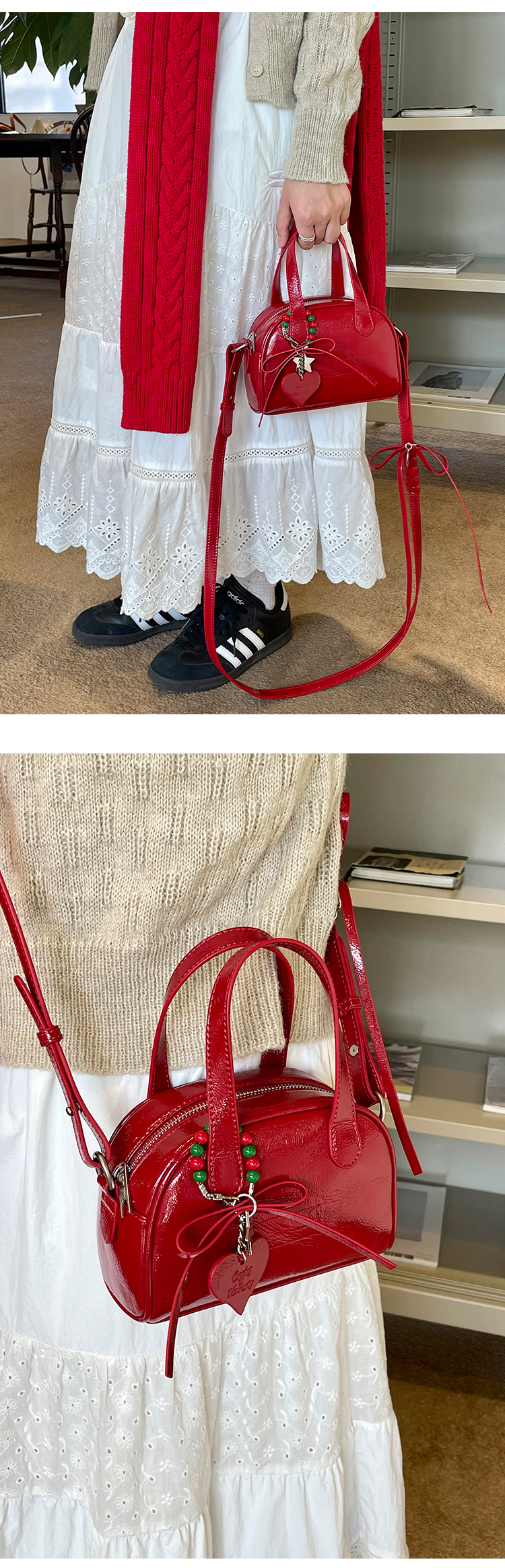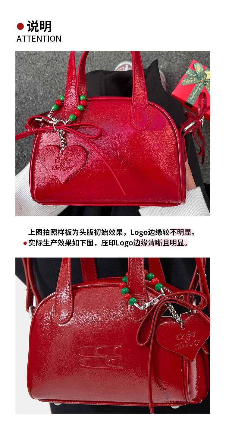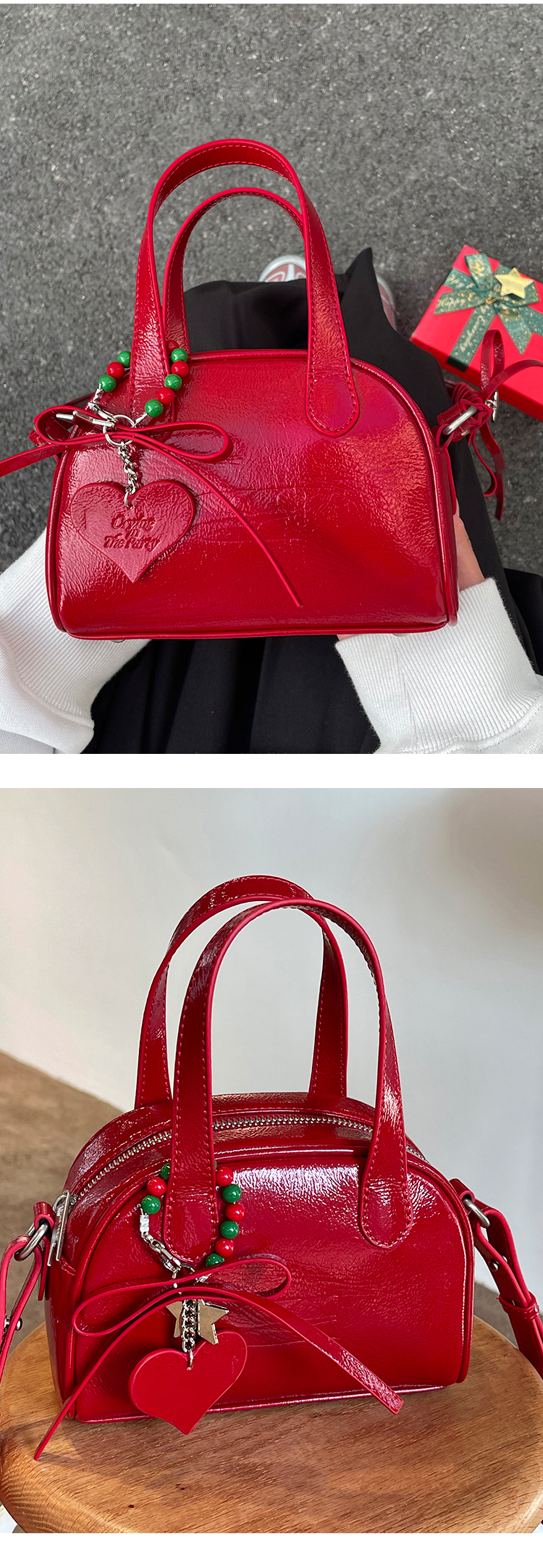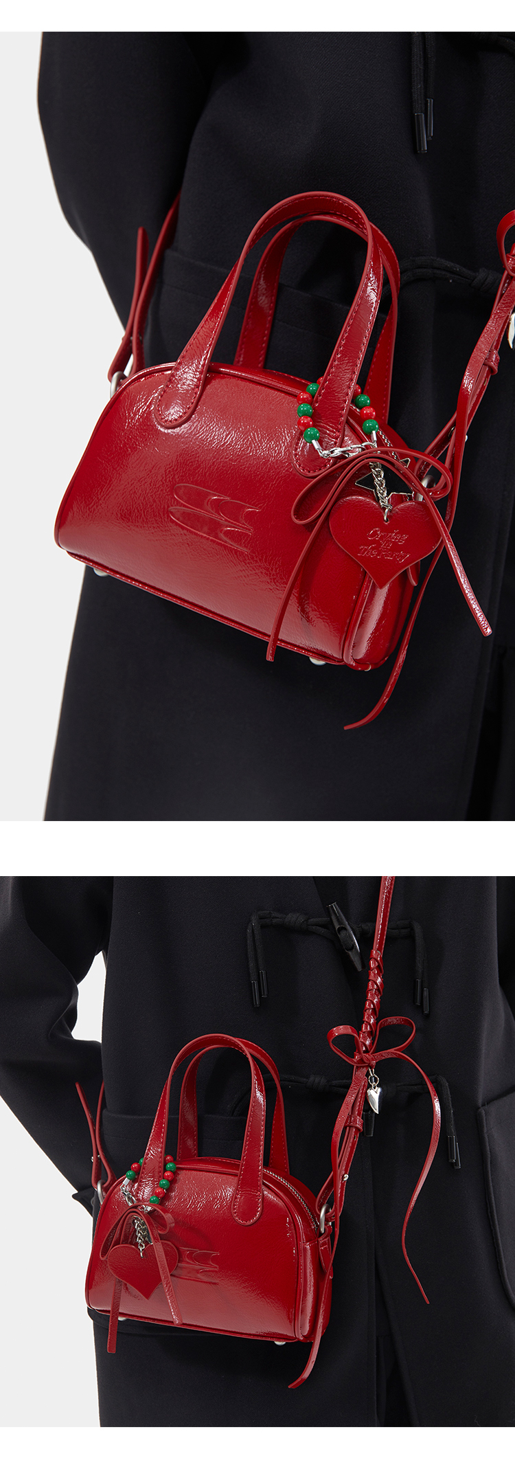 CryingCenter圣诞红mini波士顿蝴蝶结油蜡亮皮大学生经典斜挎皮包
