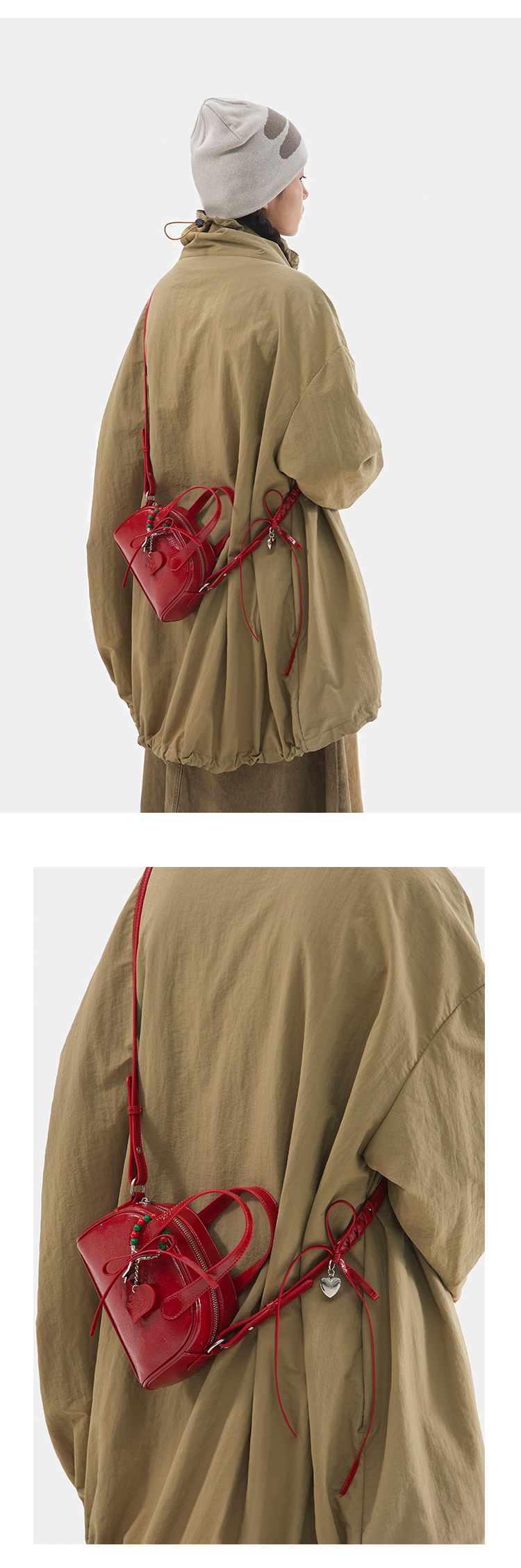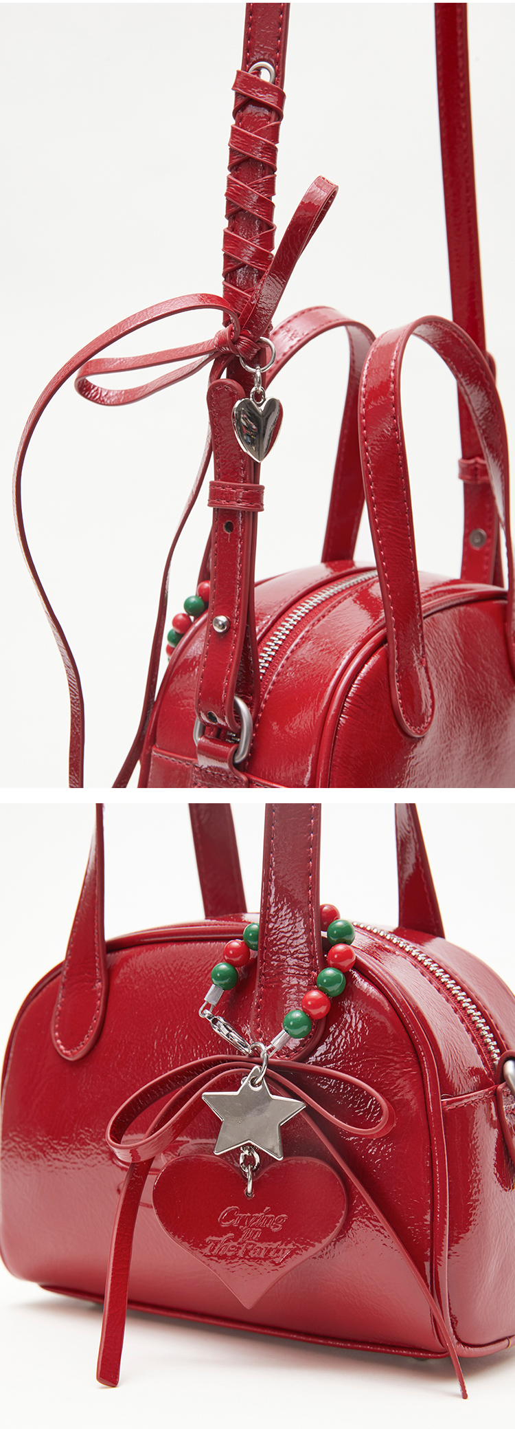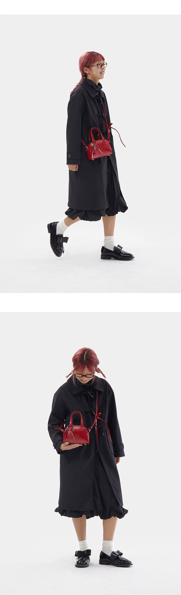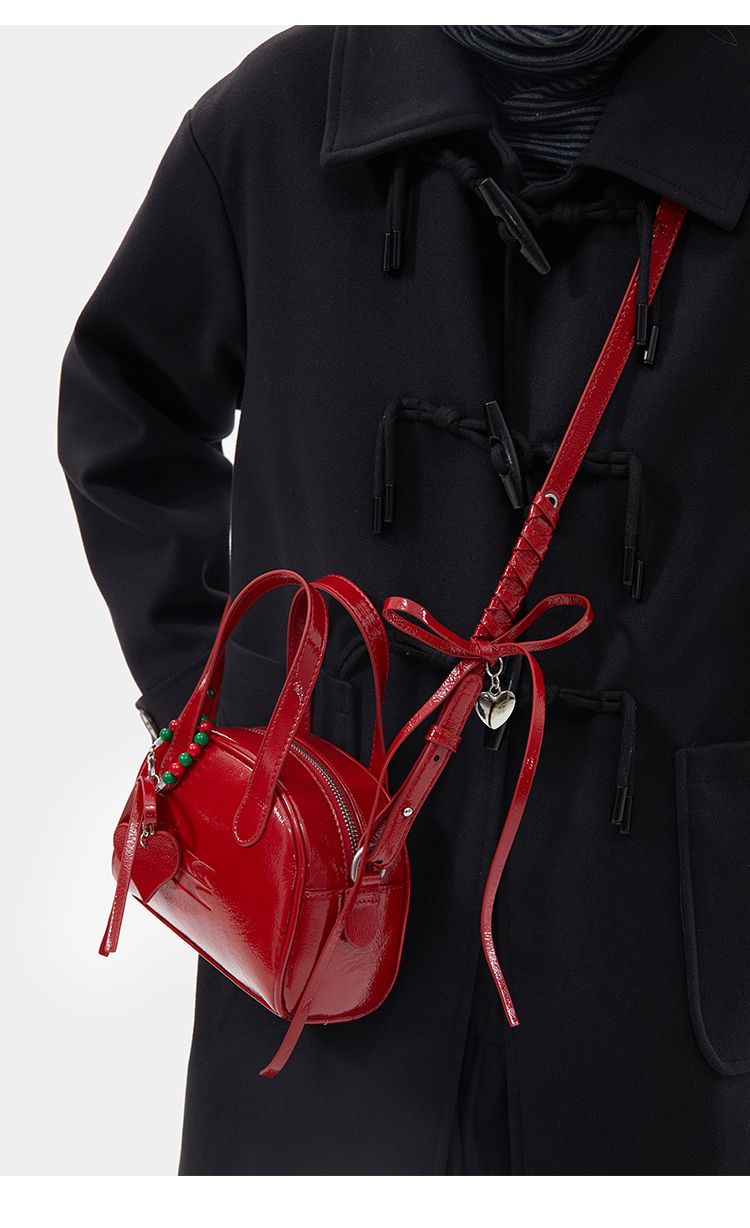 CryingCenter圣诞红mini波士顿蝴蝶结油蜡亮皮大学生经典斜挎皮包
