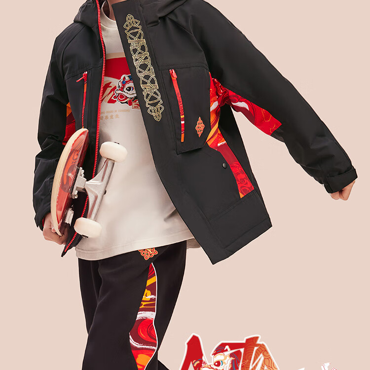 安踏儿童男大童摇粒绒运动上衣2025春季防水厚外套潮流352518601S