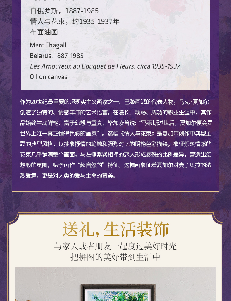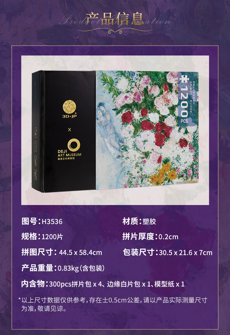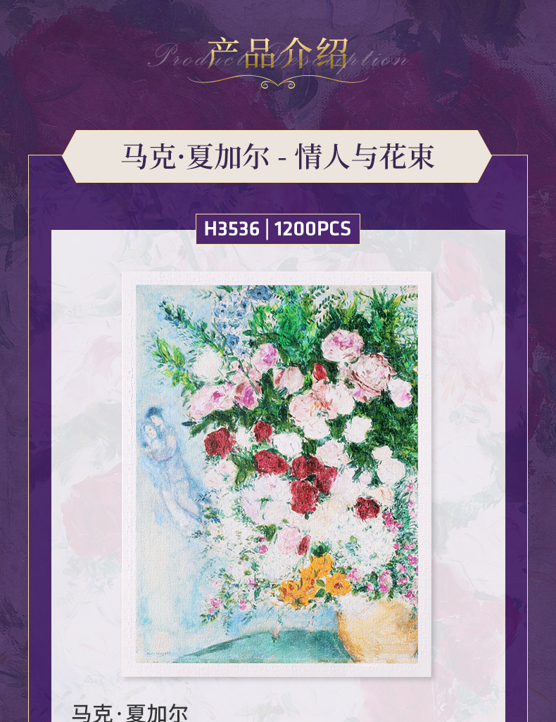 1200片 平面塑料拼图 H3536 德基艺术博物馆系列-马克·夏加尔-情人与花束