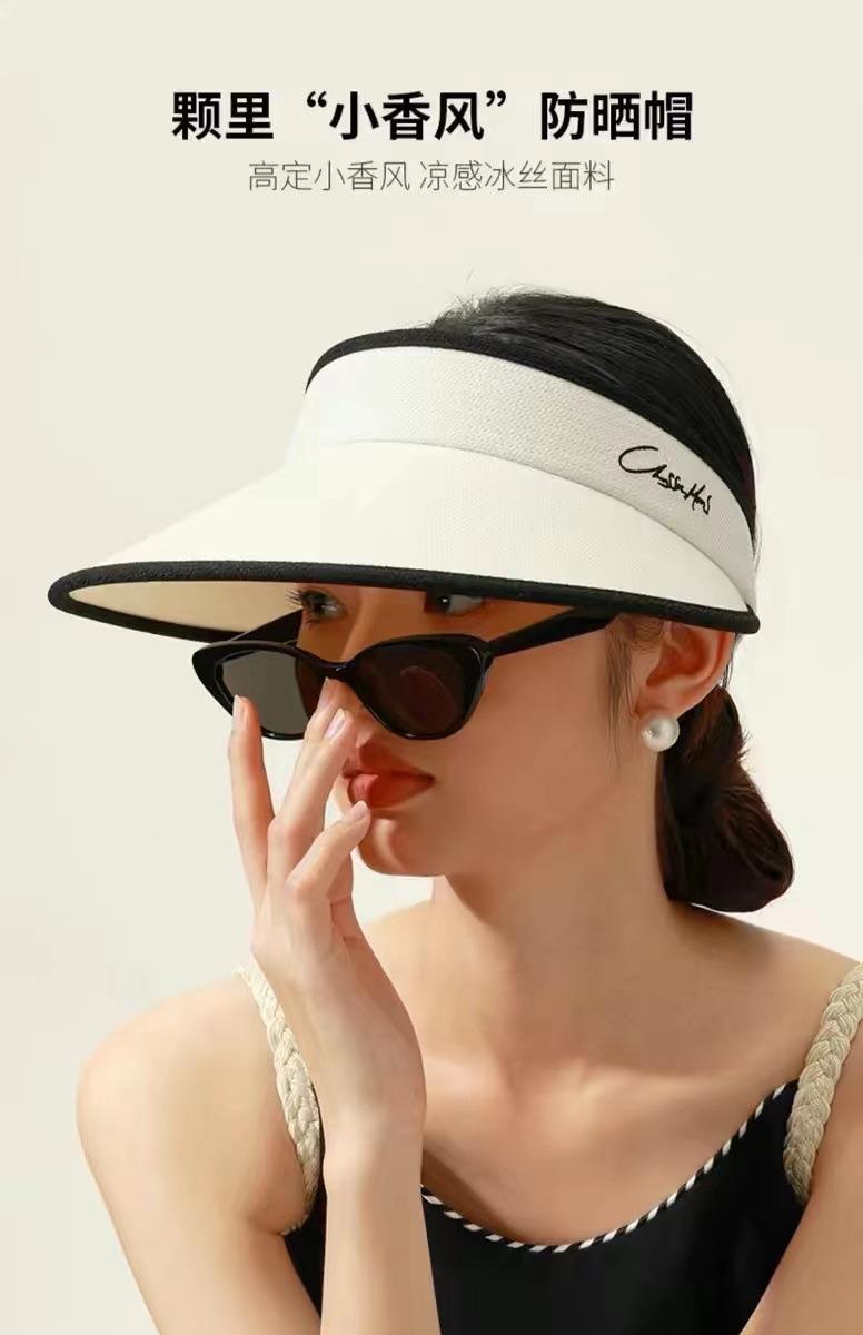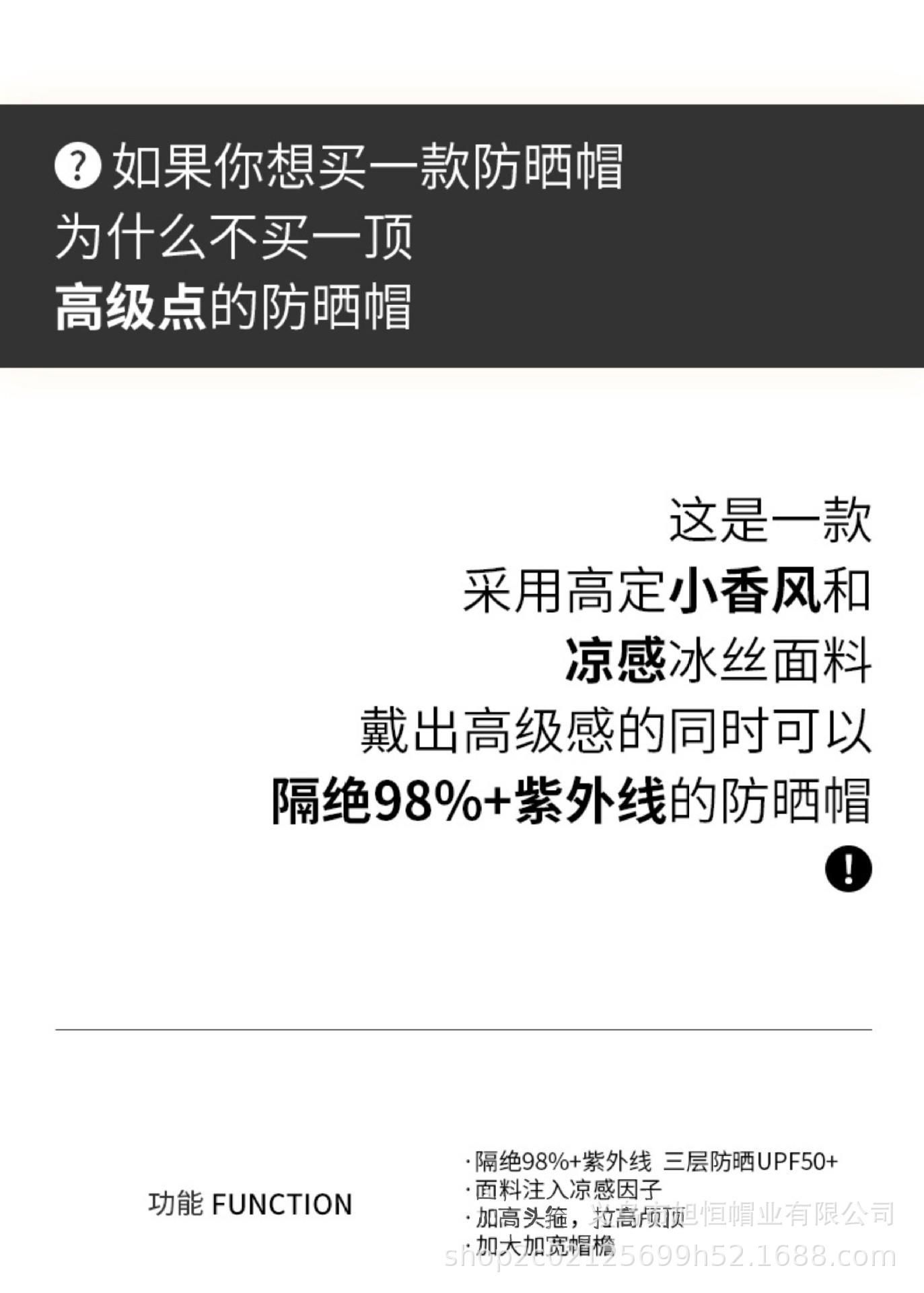 2024新款夏季小香风遮阳帽防紫外线休闲空顶帽女款大帽檐防晒帽子
