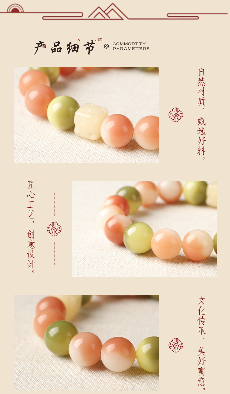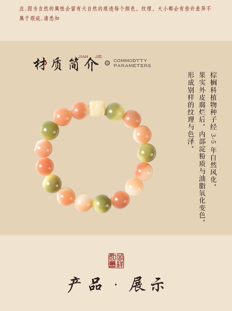 ①同一颗珠子不同面会有色差。天然材质,会有裂痕、棉絮、棕眼、矿缺等,并不是瑕疵,属于正常现象,不影响佩戴,不以此作为退换货的理由。