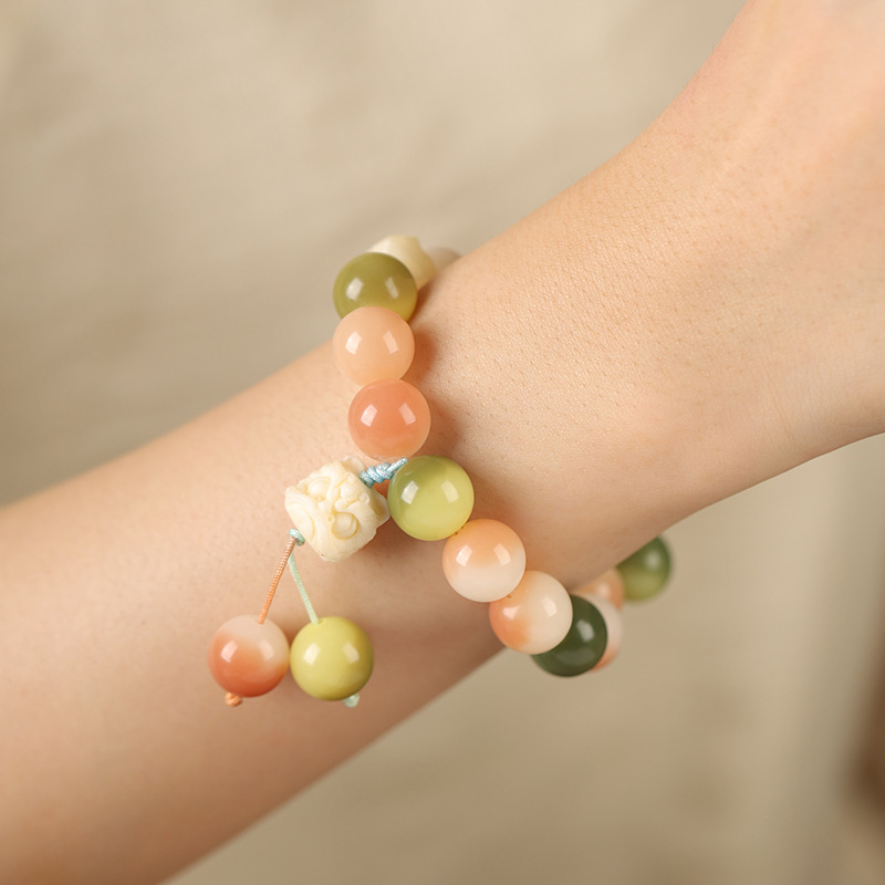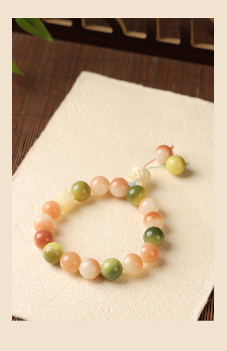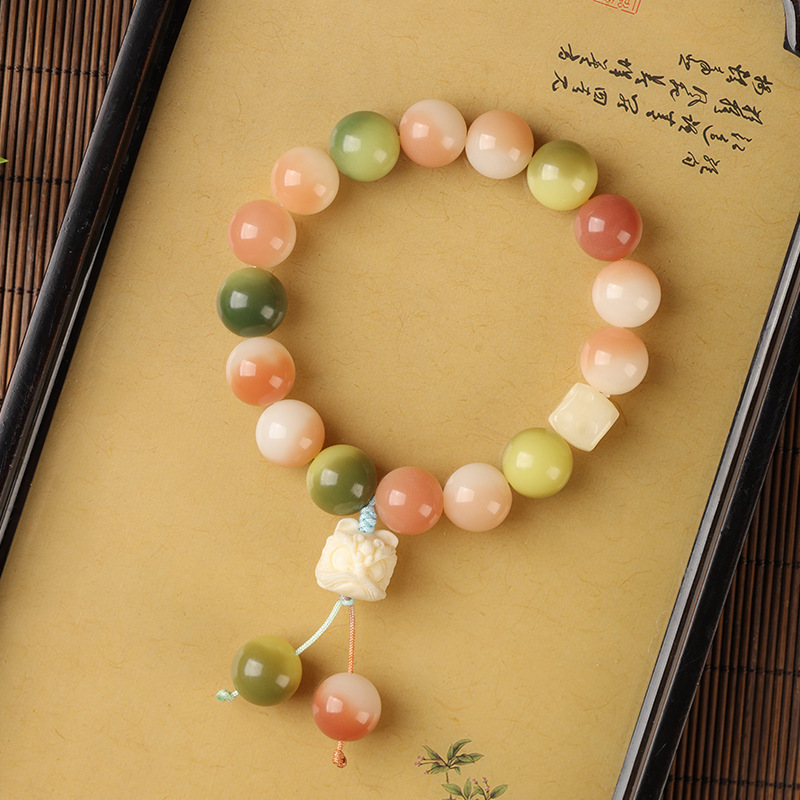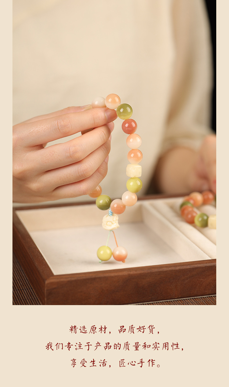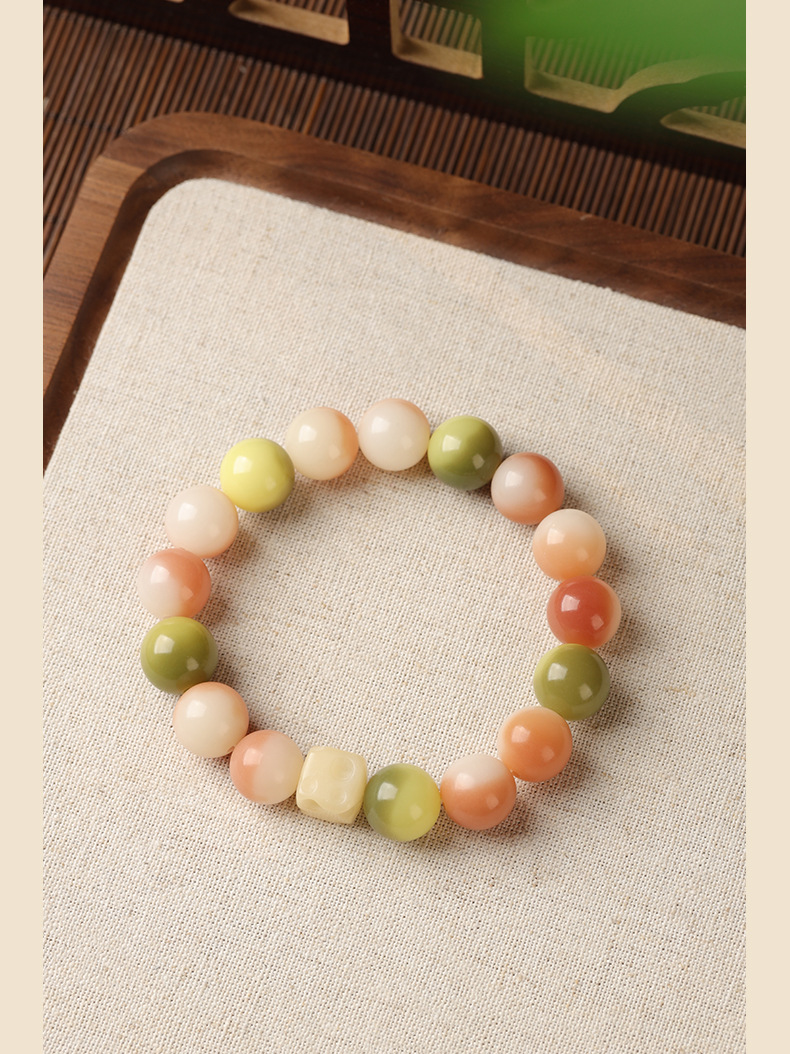 【奶酪·风化菩提手串】敦煌小众粉绿色风化菩提根手串女绕指柔 学生文玩佛珠盘玩渐变手链