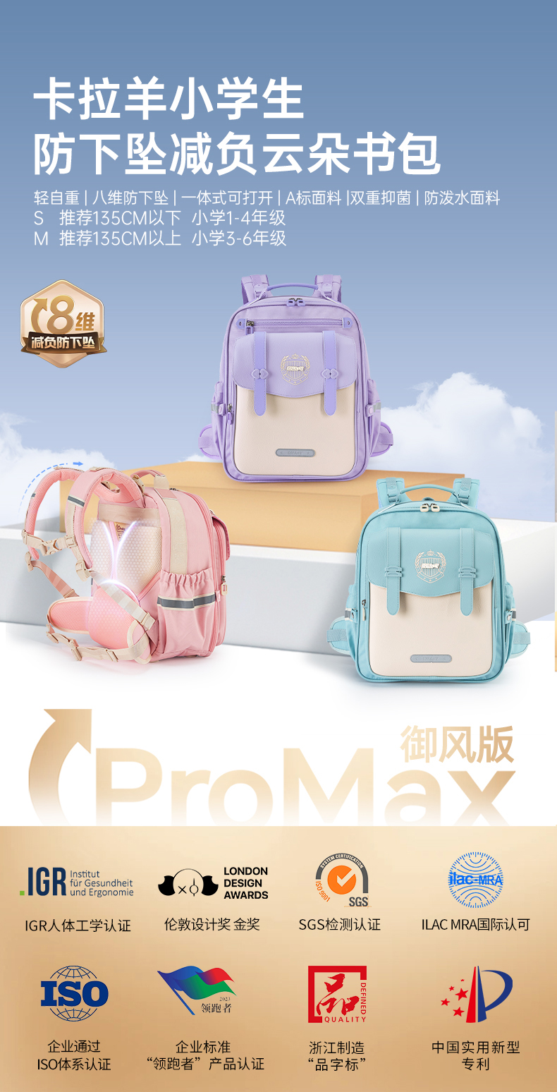 【蒋勤勤代言】卡拉羊小学生1-6年级升级ProMax8维减负云朵书包光遇系列 CX2265+CX2797