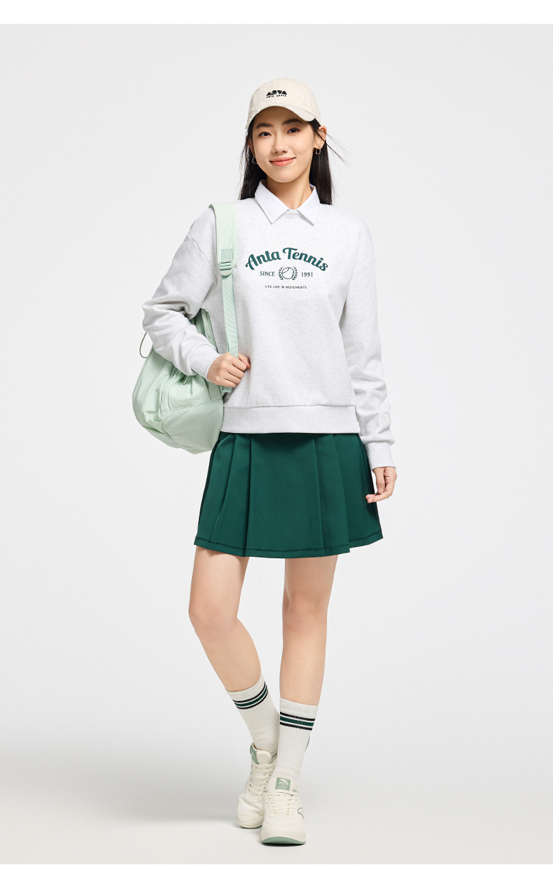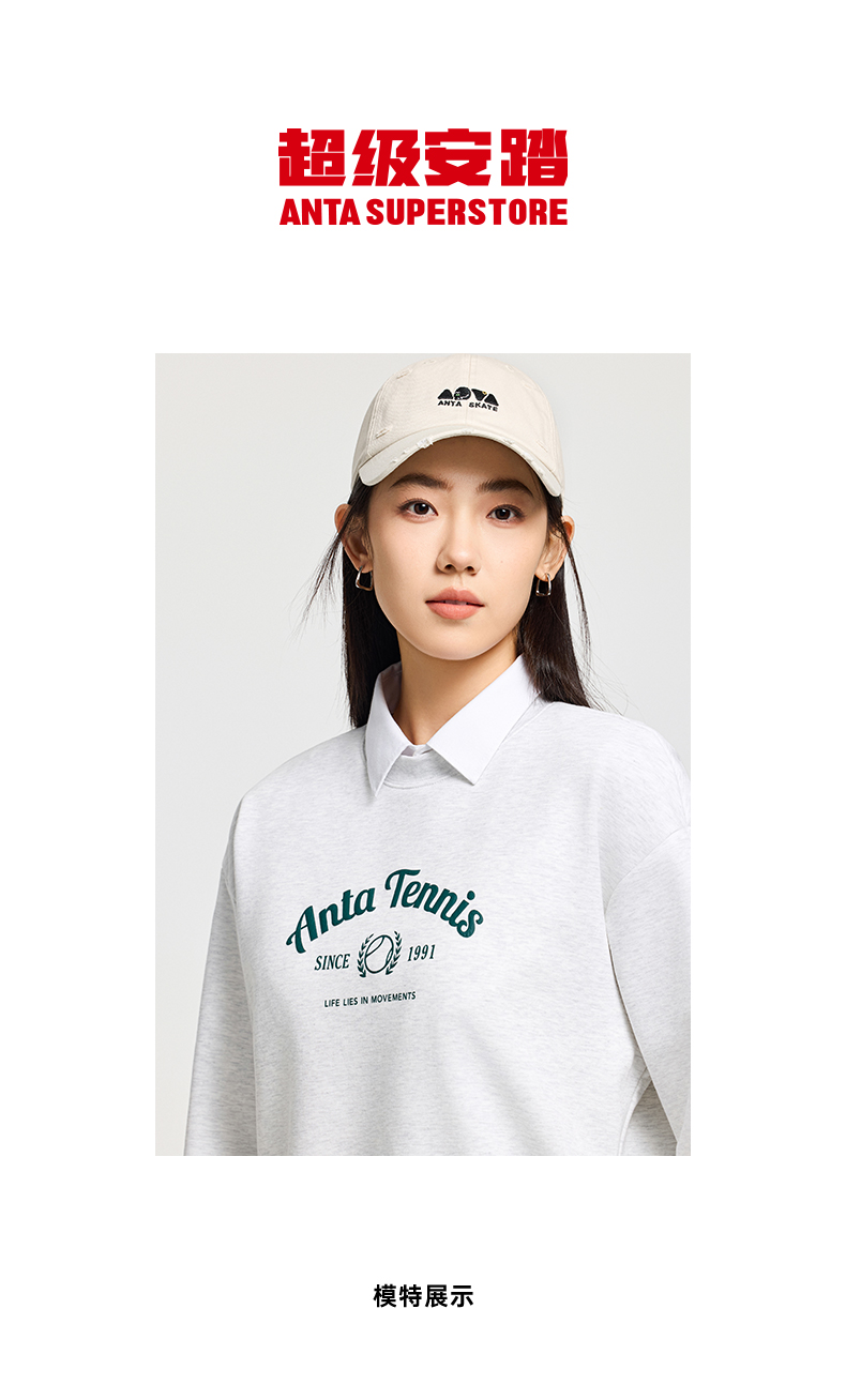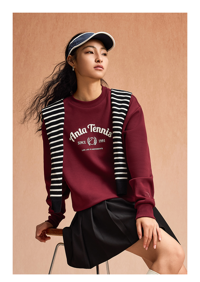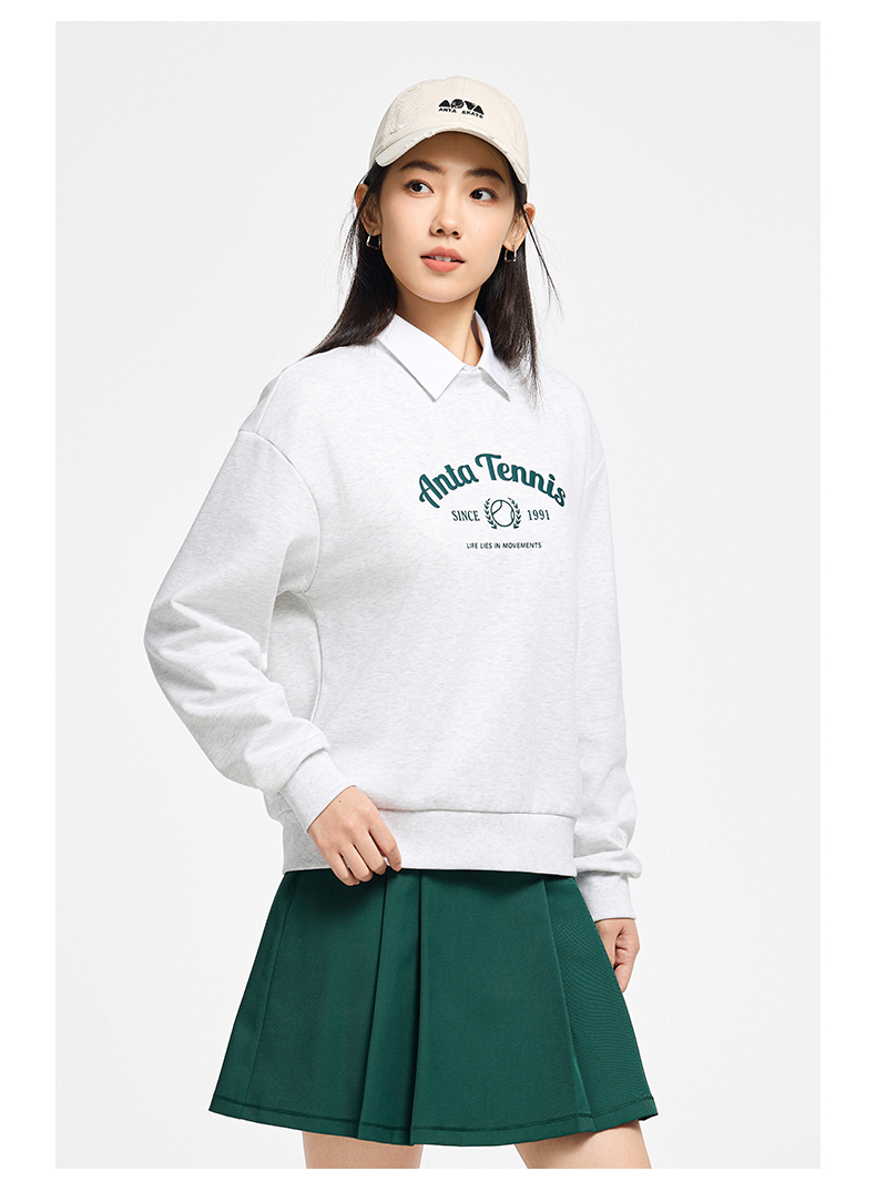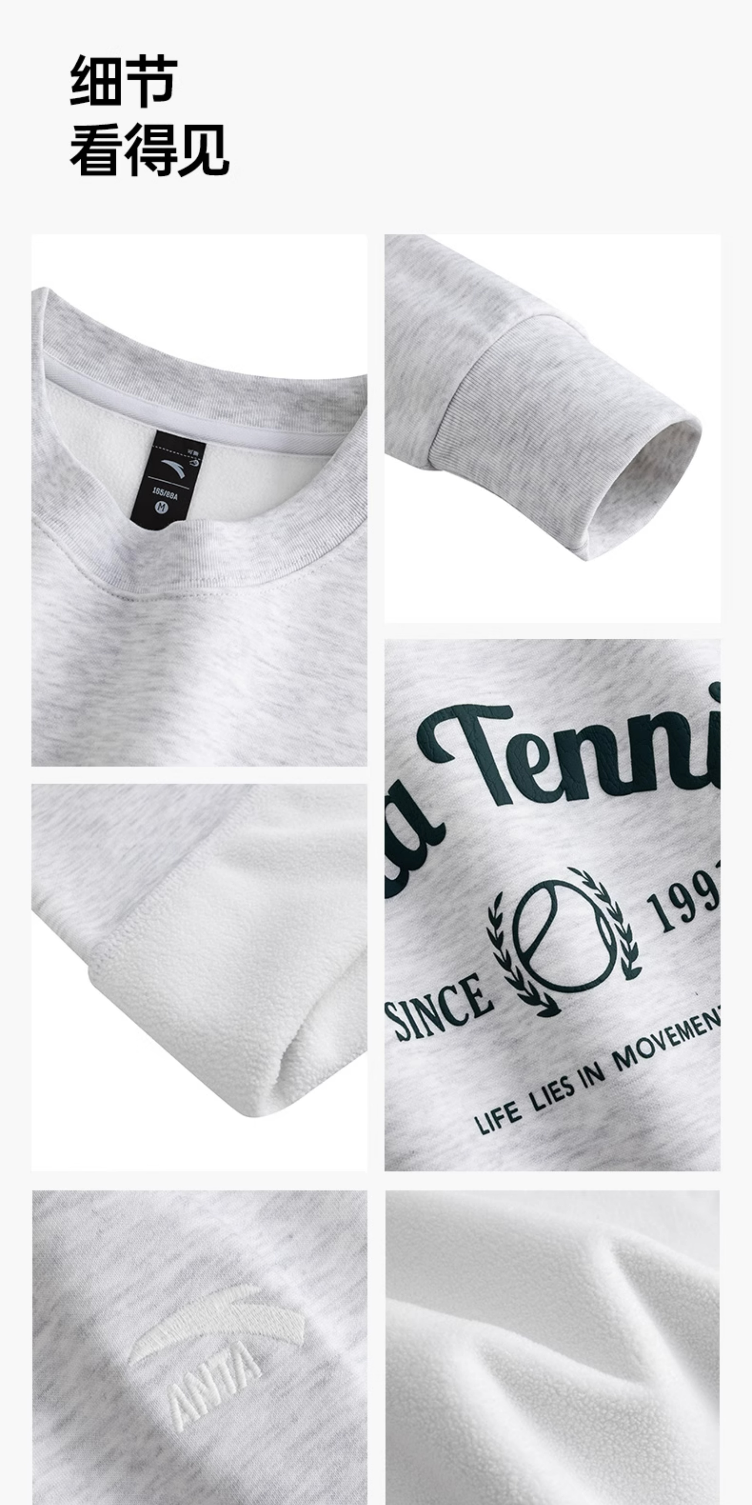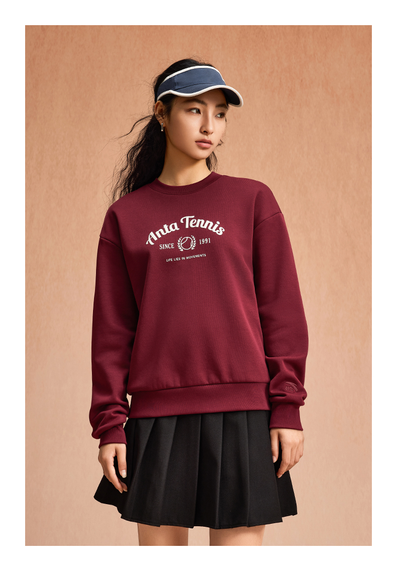 超级安踏加绒圆领卫衣女士秋冬抓毛保暖复古网球风套头衫上衣女162548702U