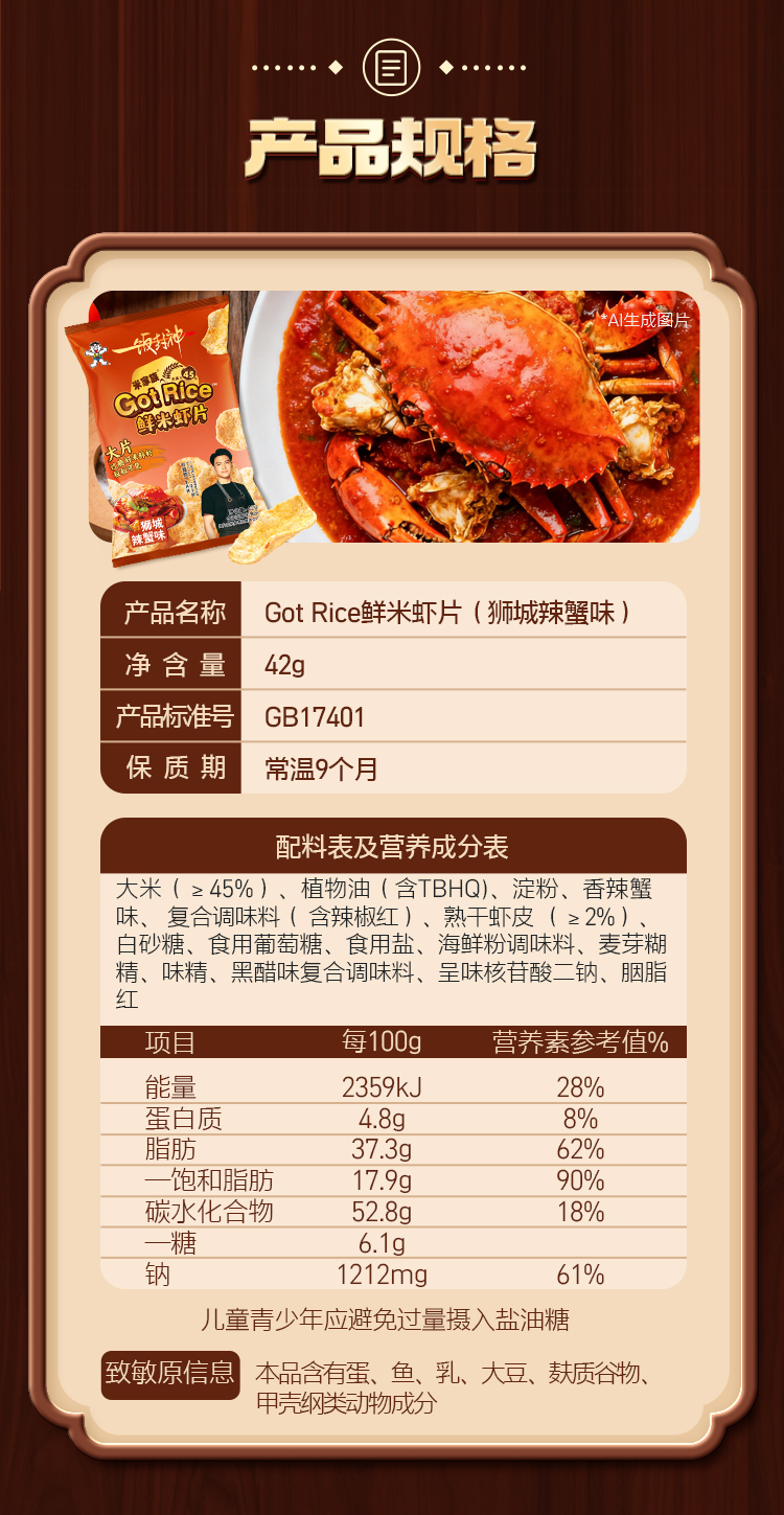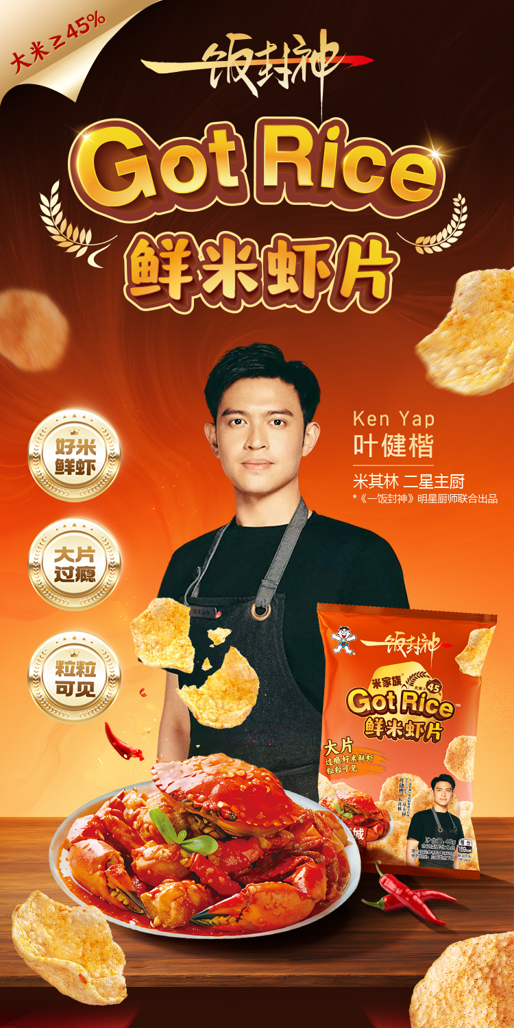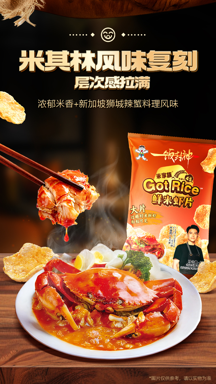 旺旺x一饭封神明星厨师联合出品·Got Rice鲜米虾片狮城辣蟹味42g