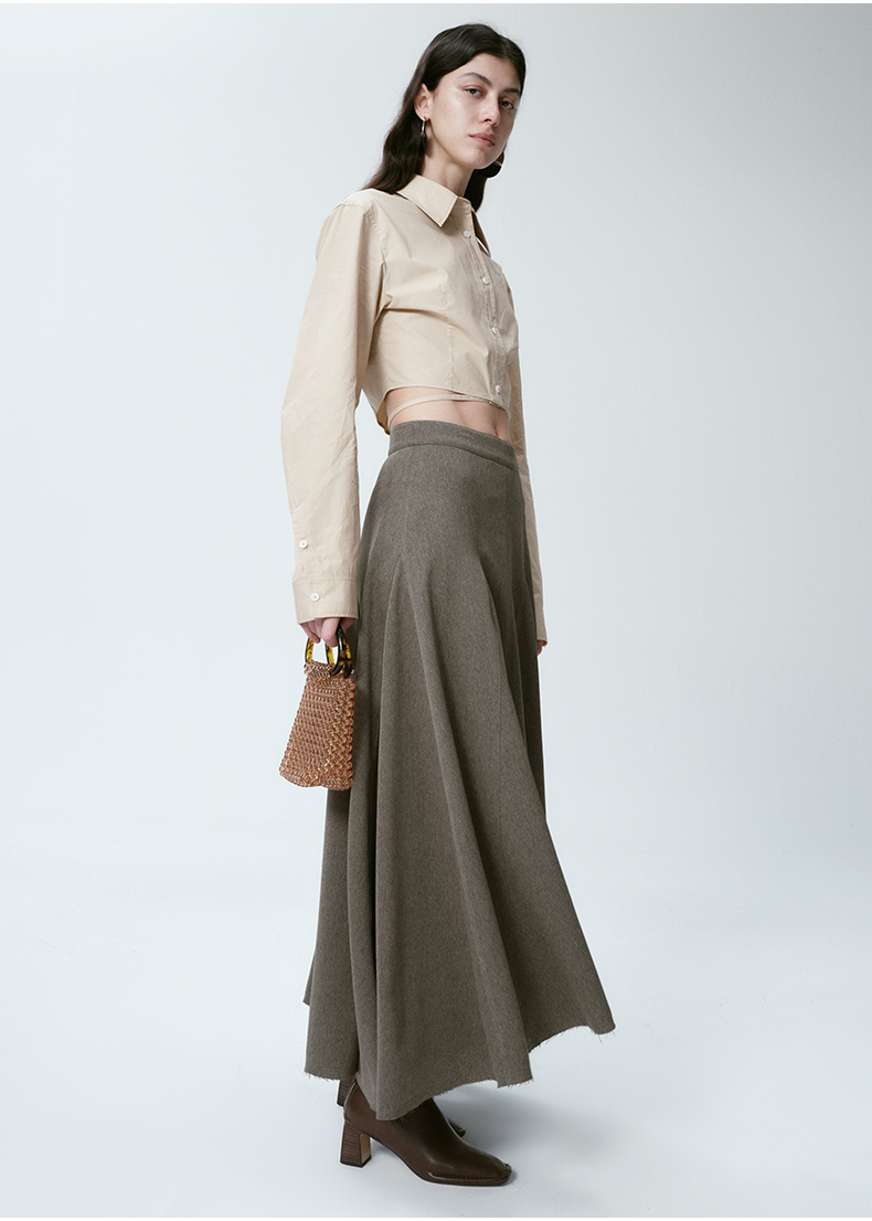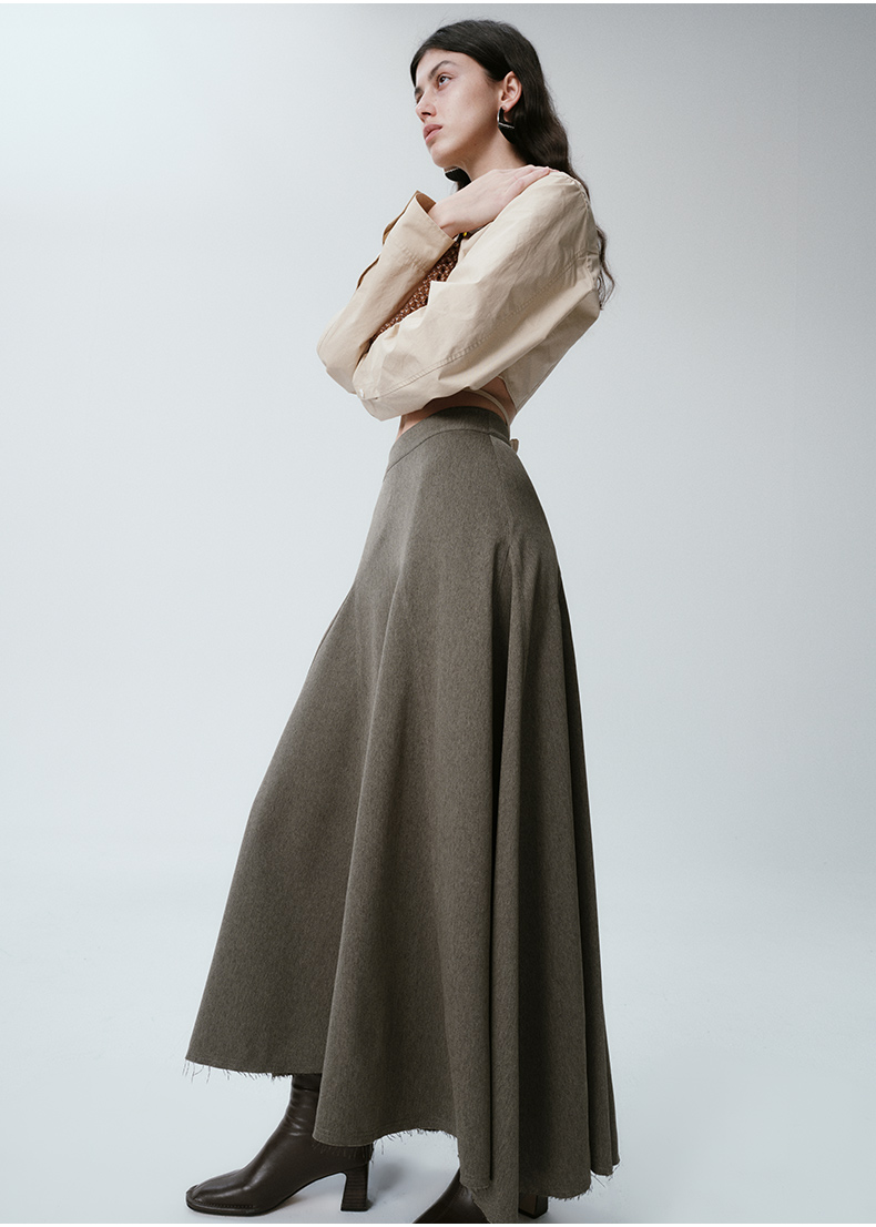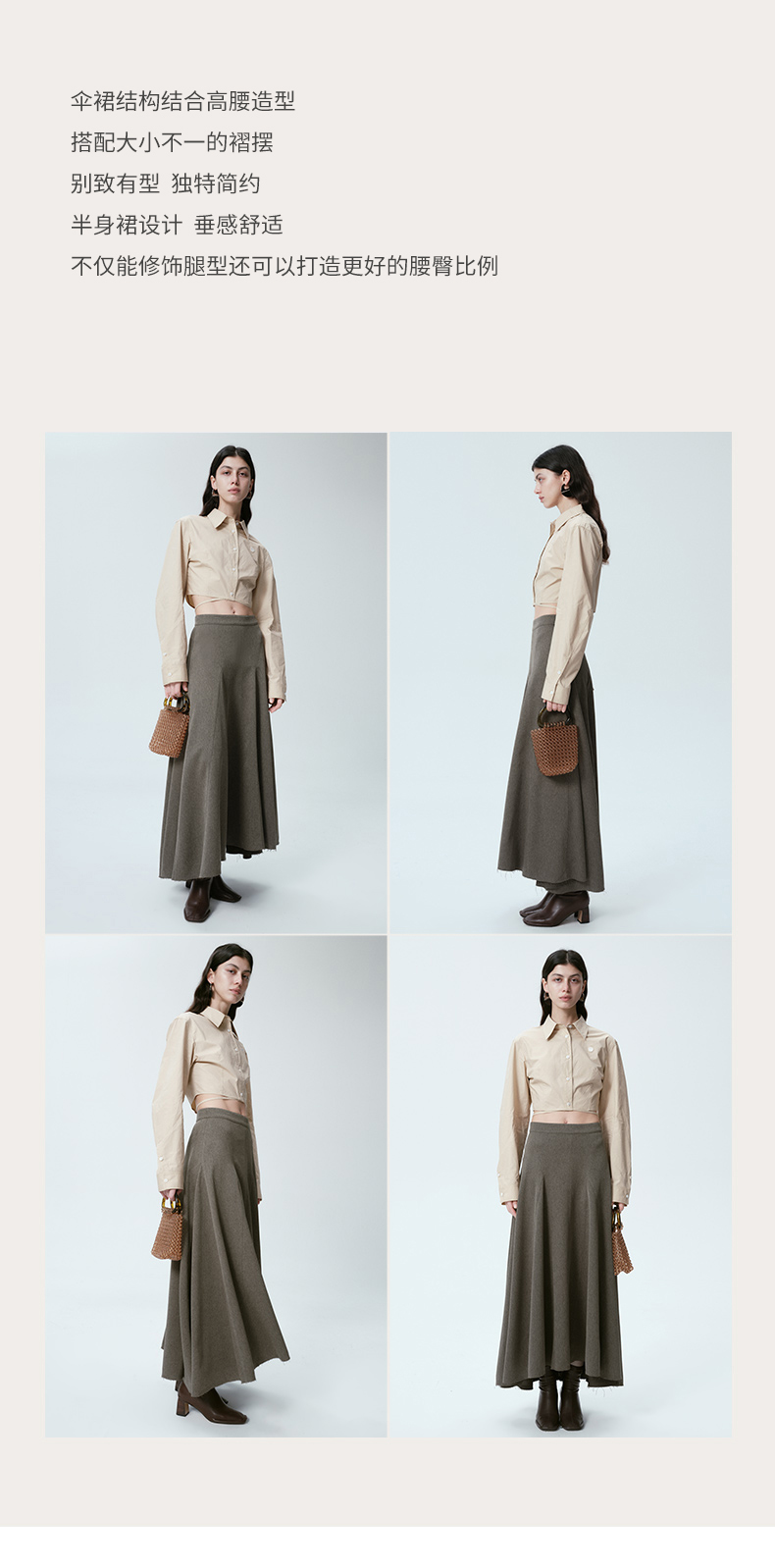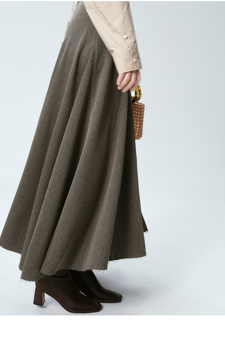 Self Who卡其色针织半身裙女2024春新款a字大摆裙休闲设计感裙子