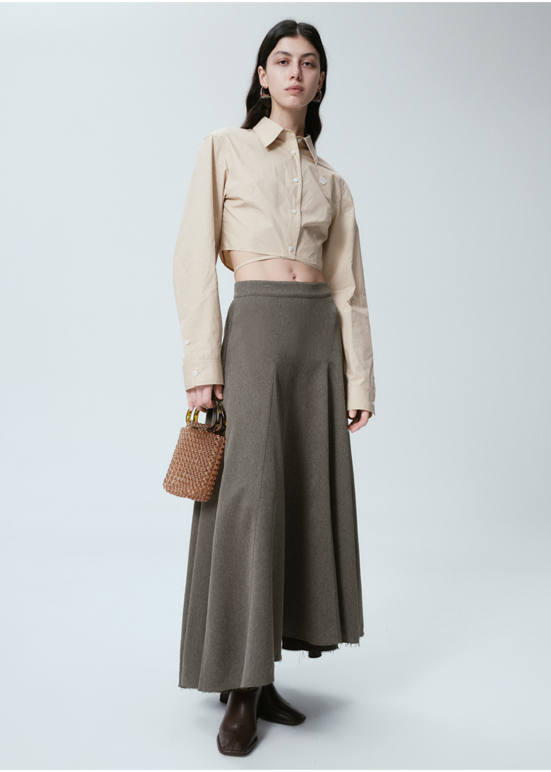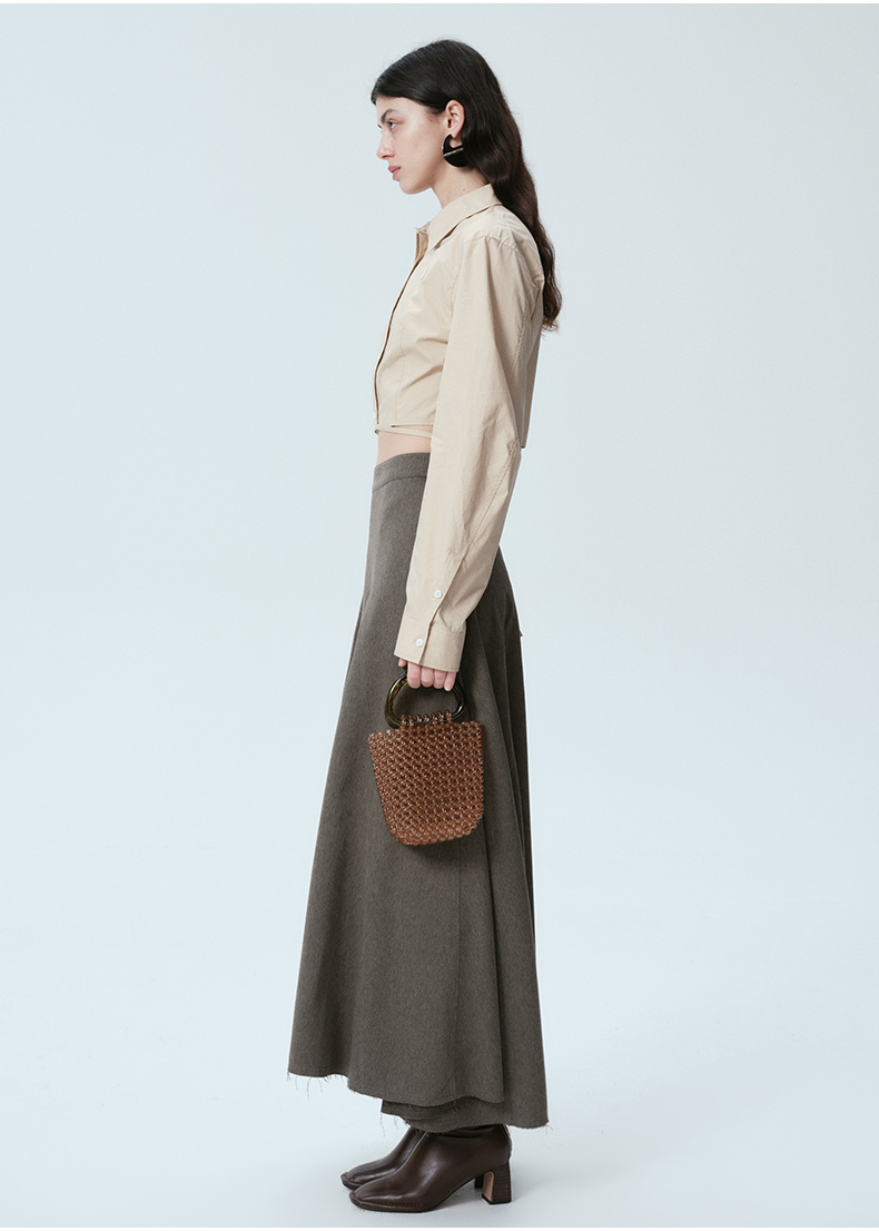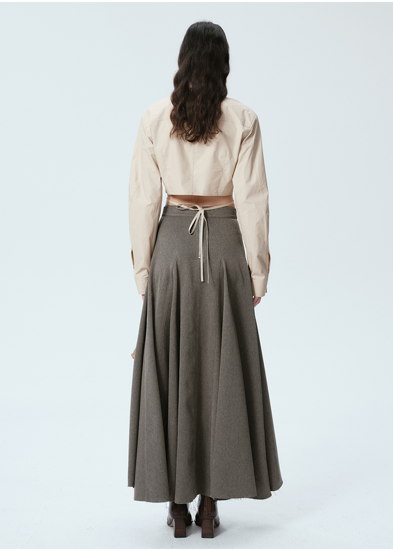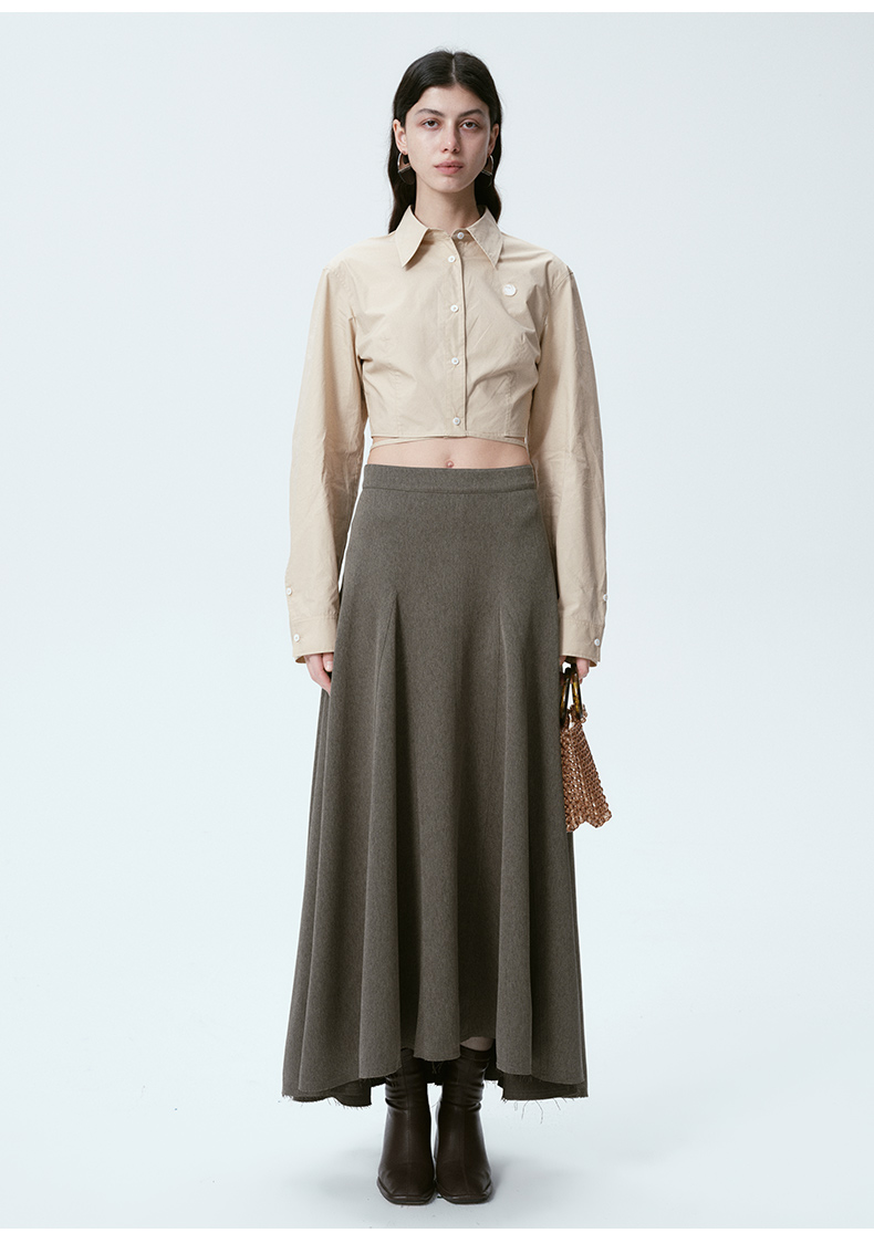 Self Who卡其色针织半身裙女2024春新款a字大摆裙休闲设计感裙子