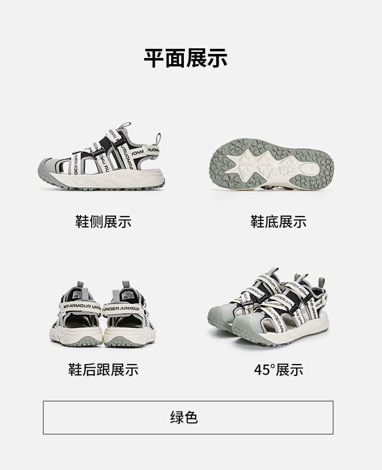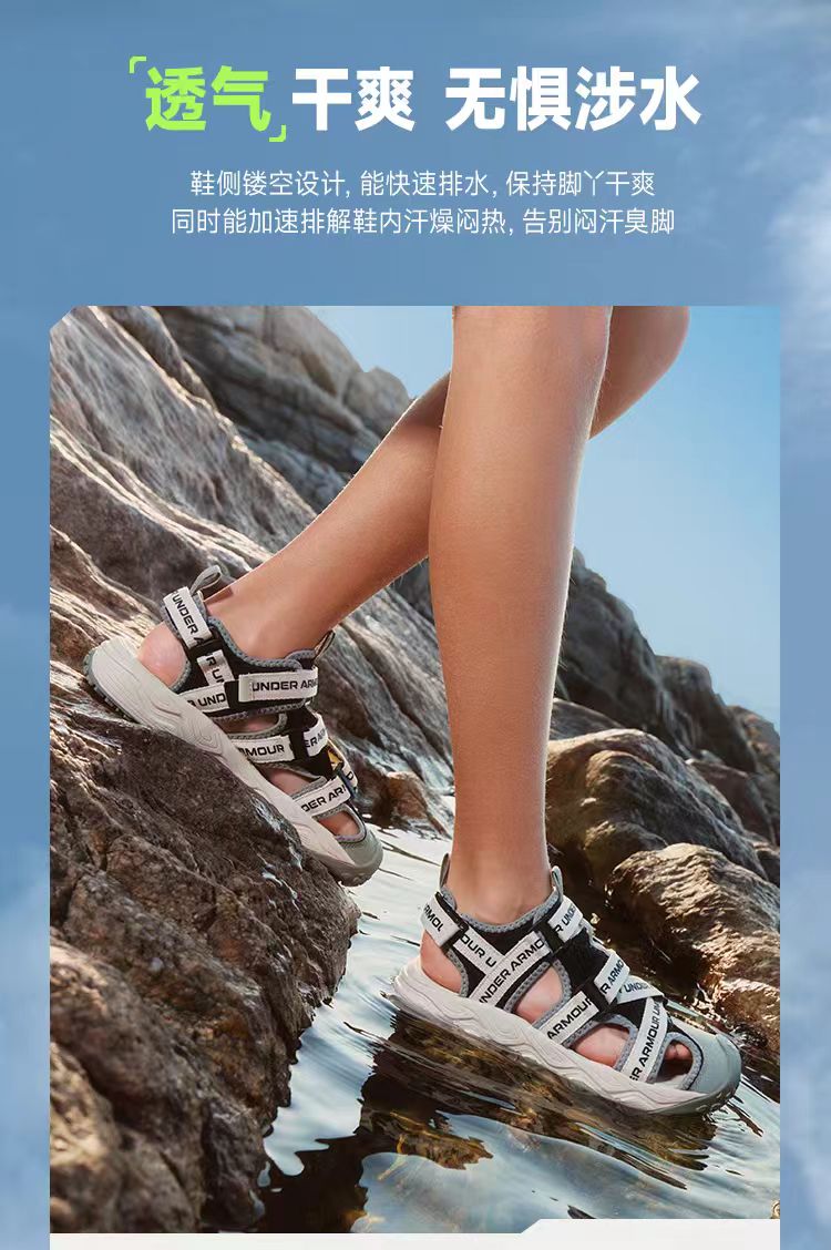 【12月-特惠福利】正品Under Armour安德玛 夏季新款儿童沙滩鞋软底透气鞋男女大童运动凉鞋 2421506 超低折扣