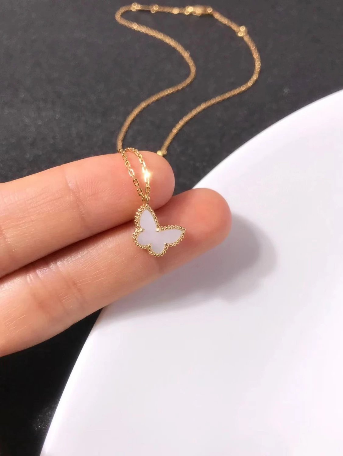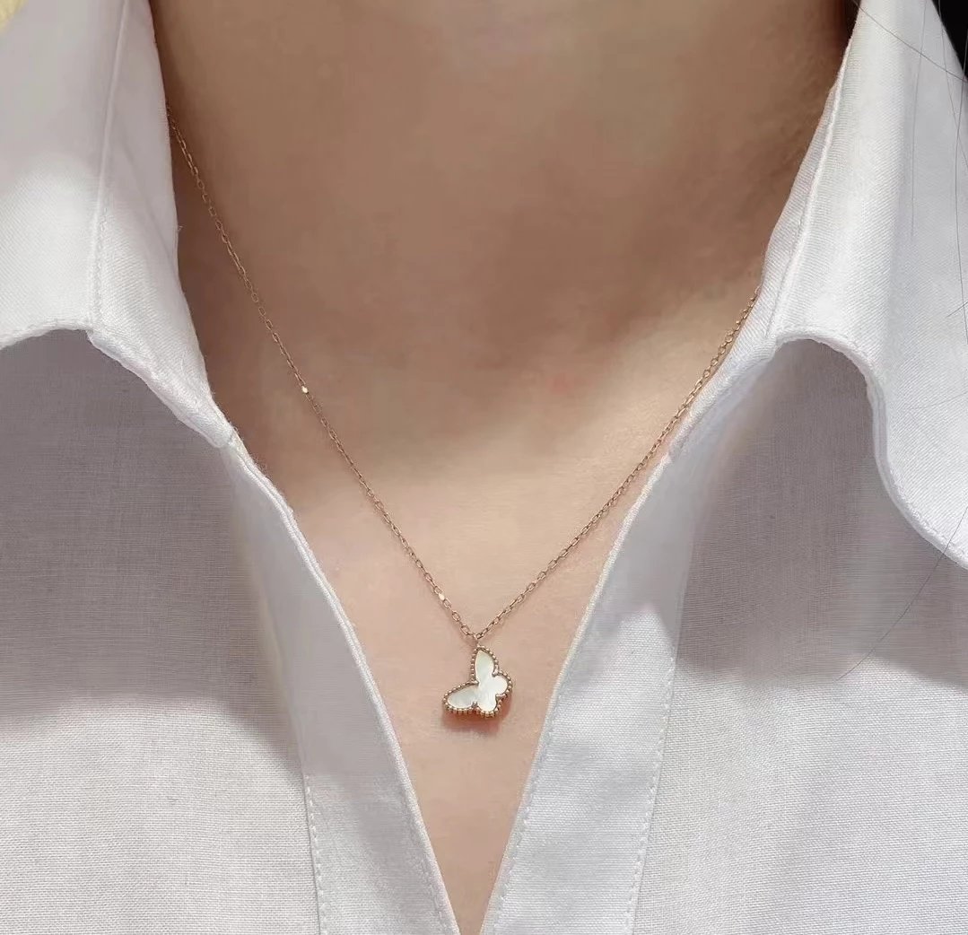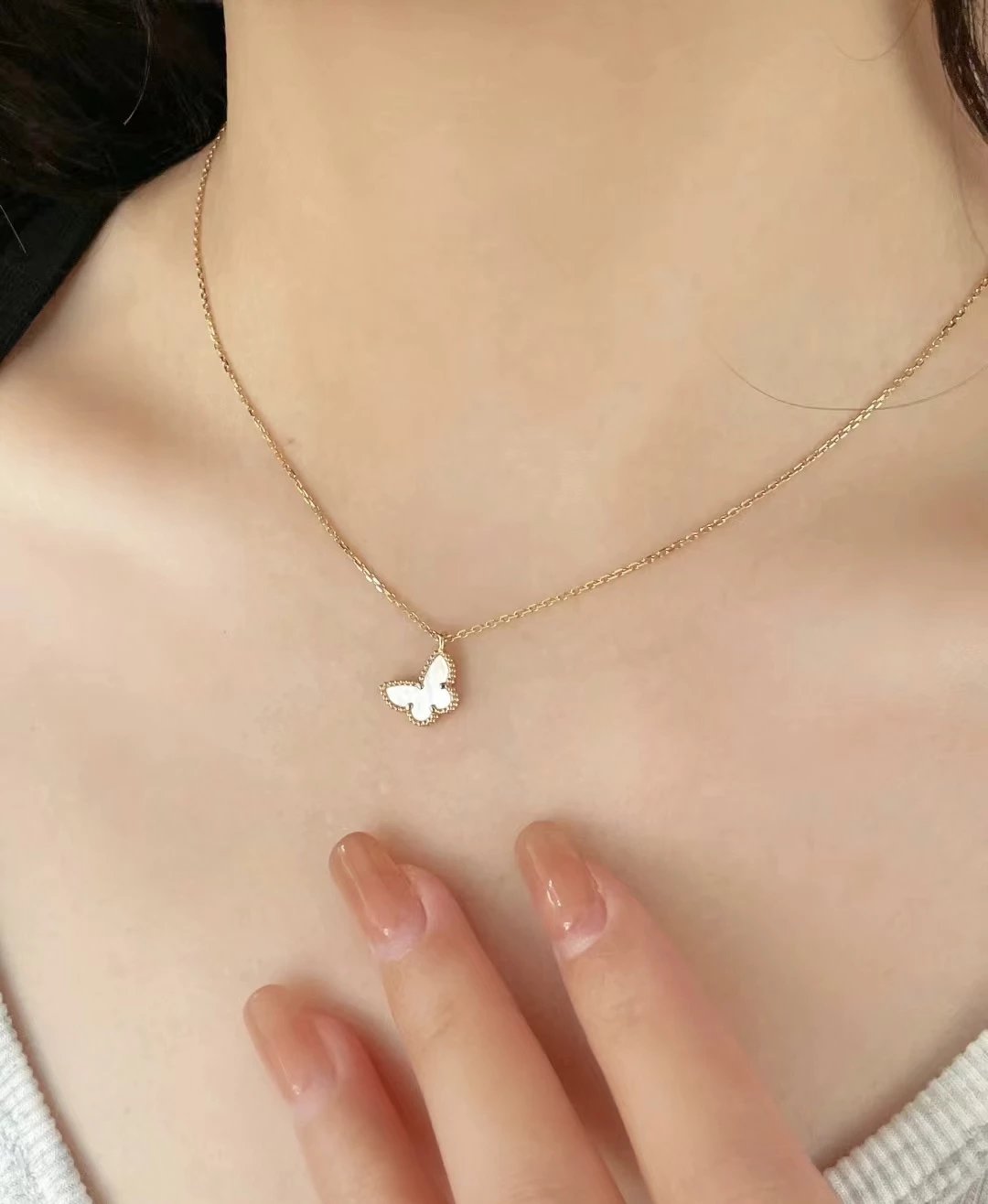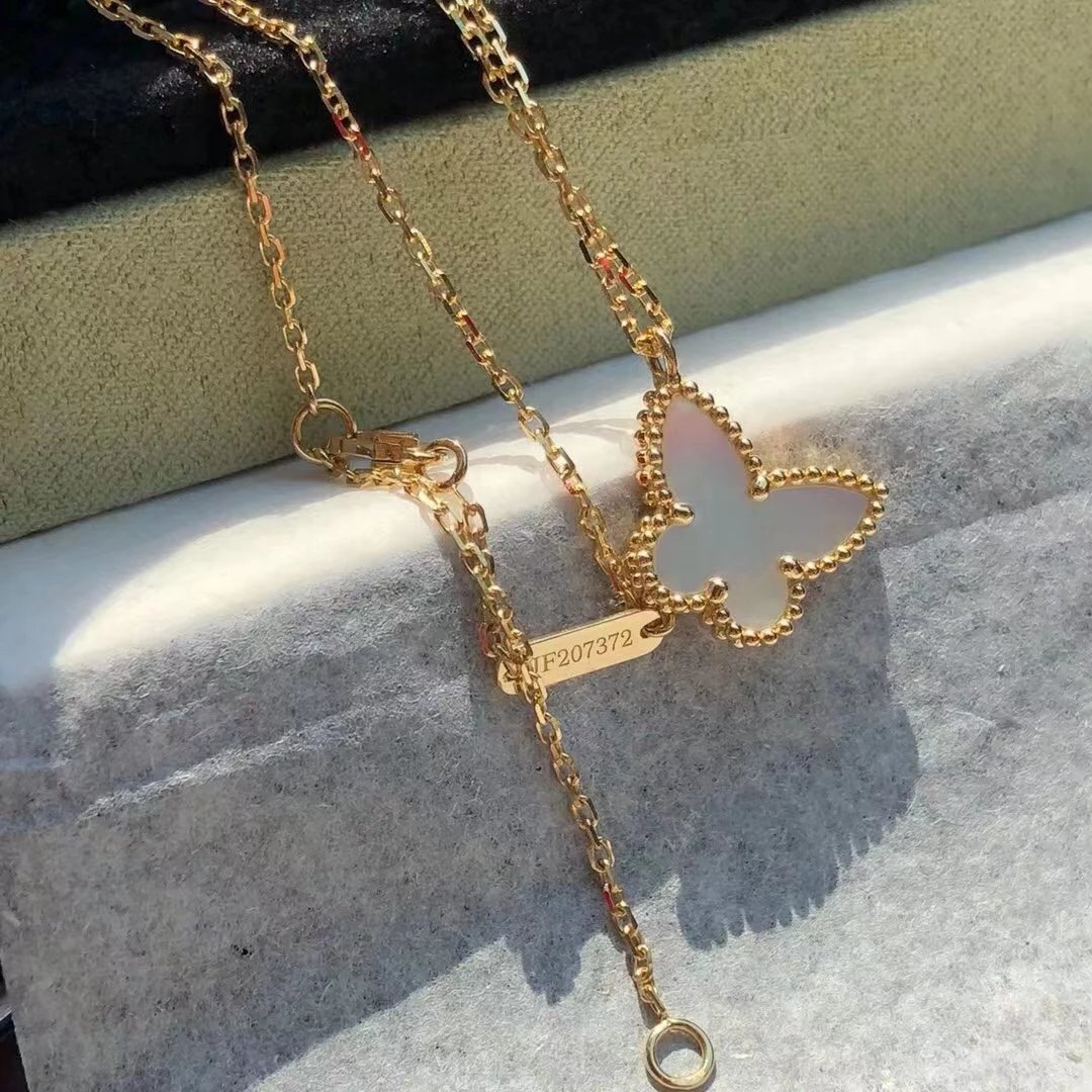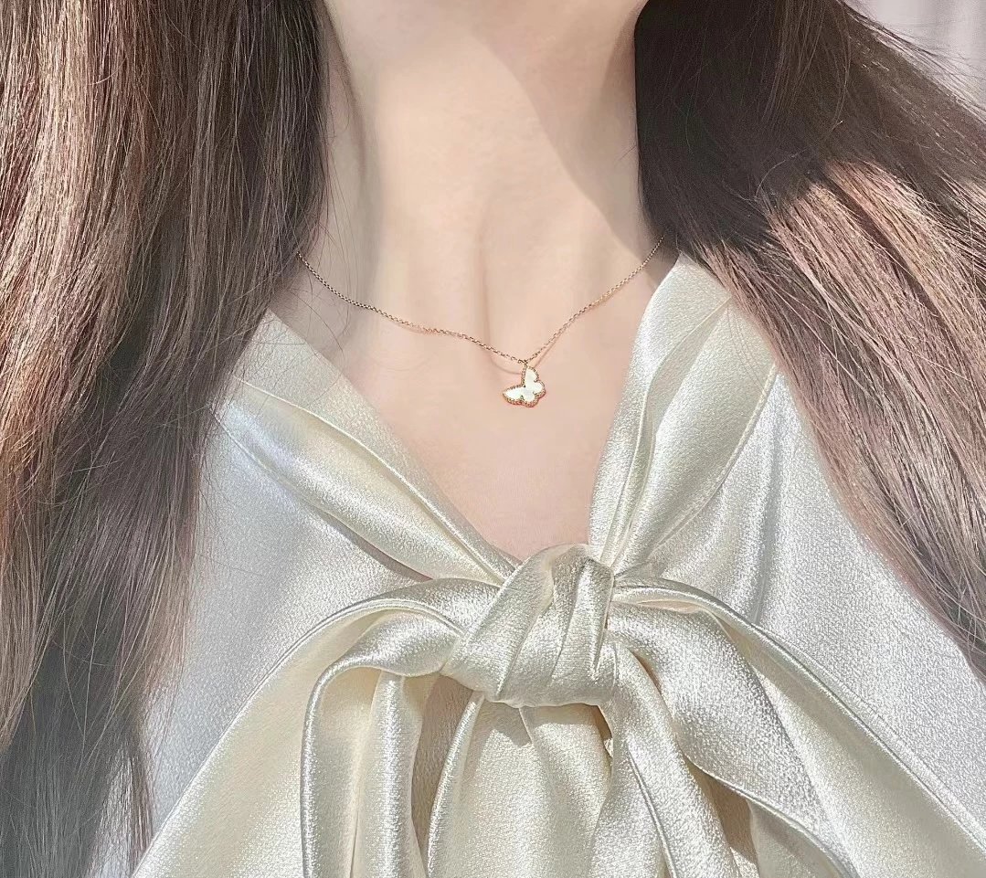 款式百搭不过时,一条白贝母蝴蝶项链满足日常穿搭。