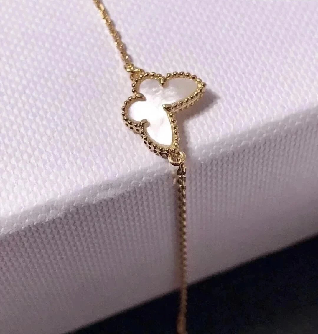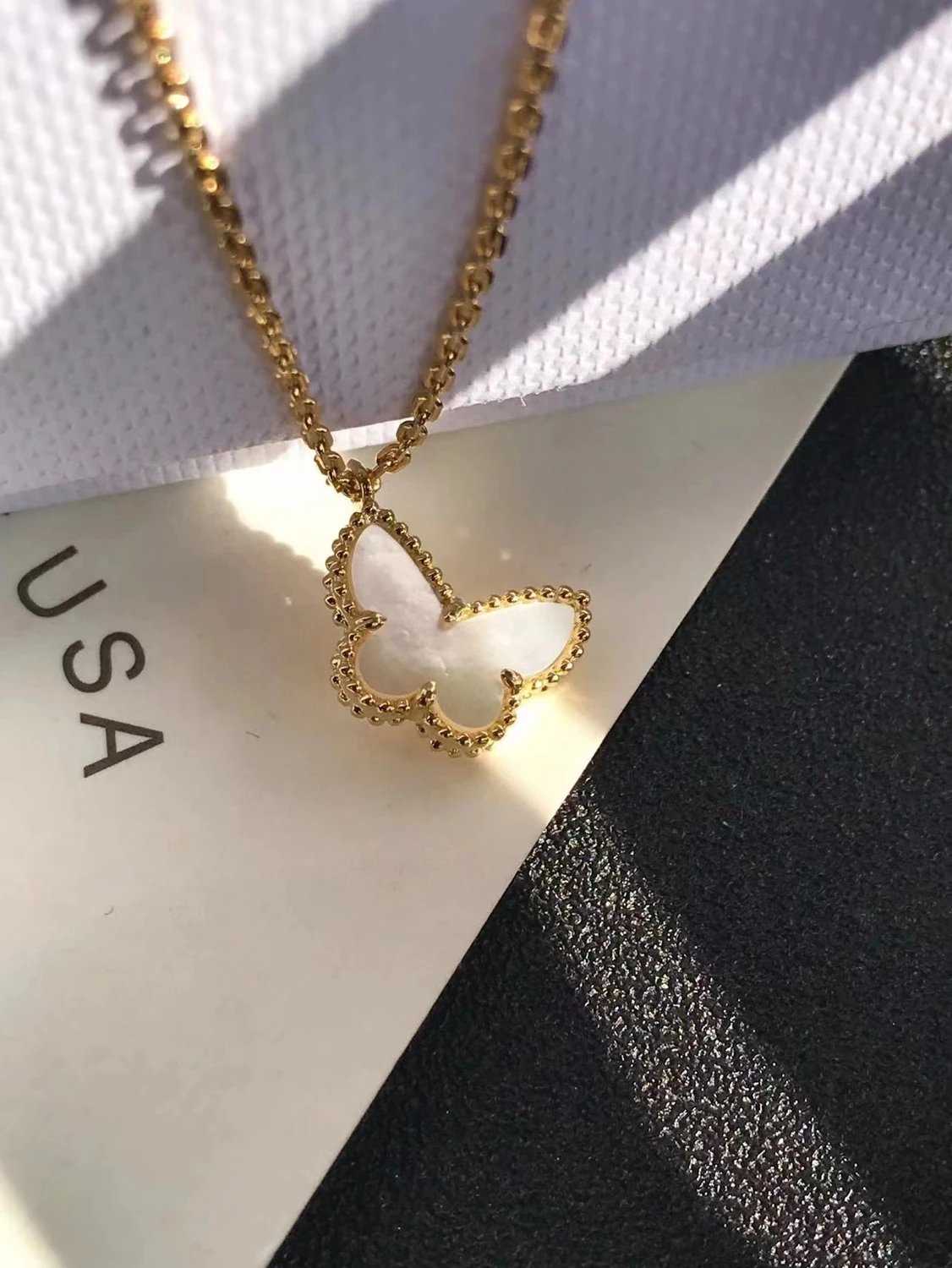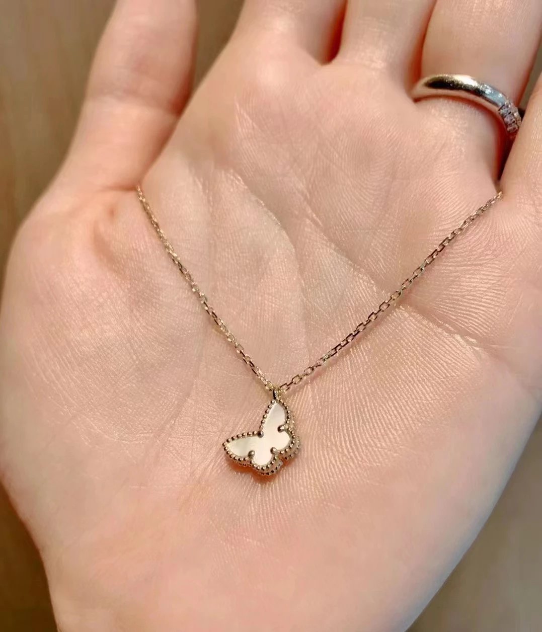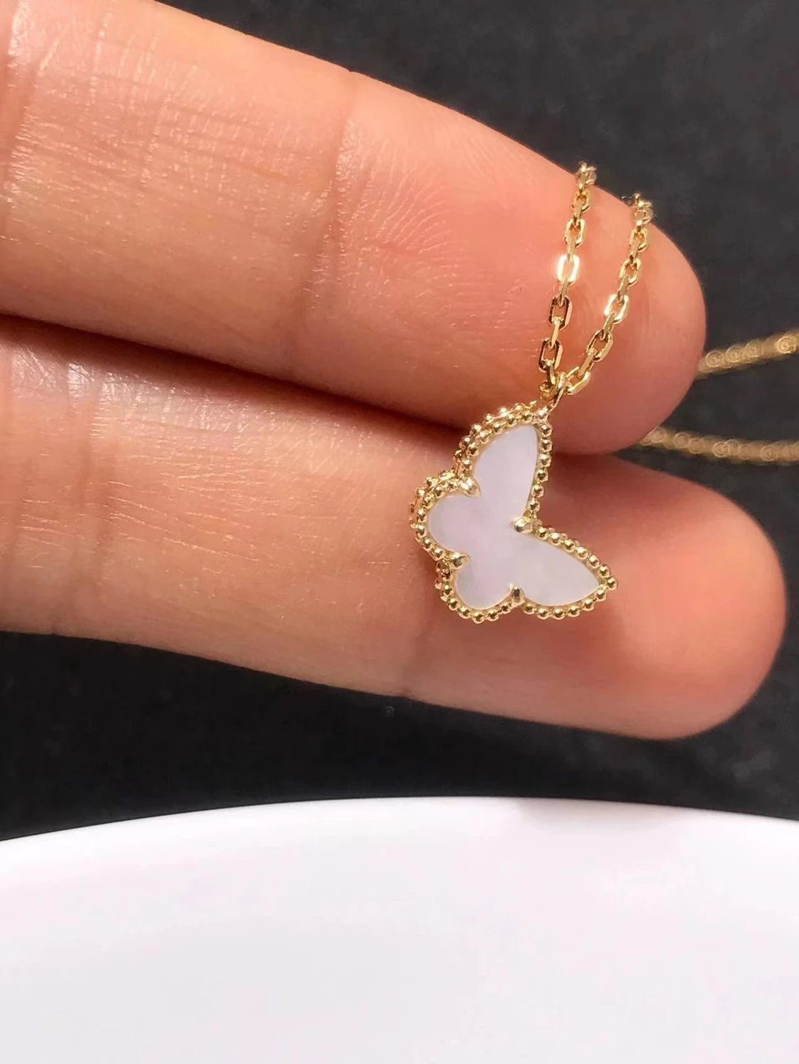 款式百搭不过时,一条白贝母蝴蝶项链满足日常穿搭。