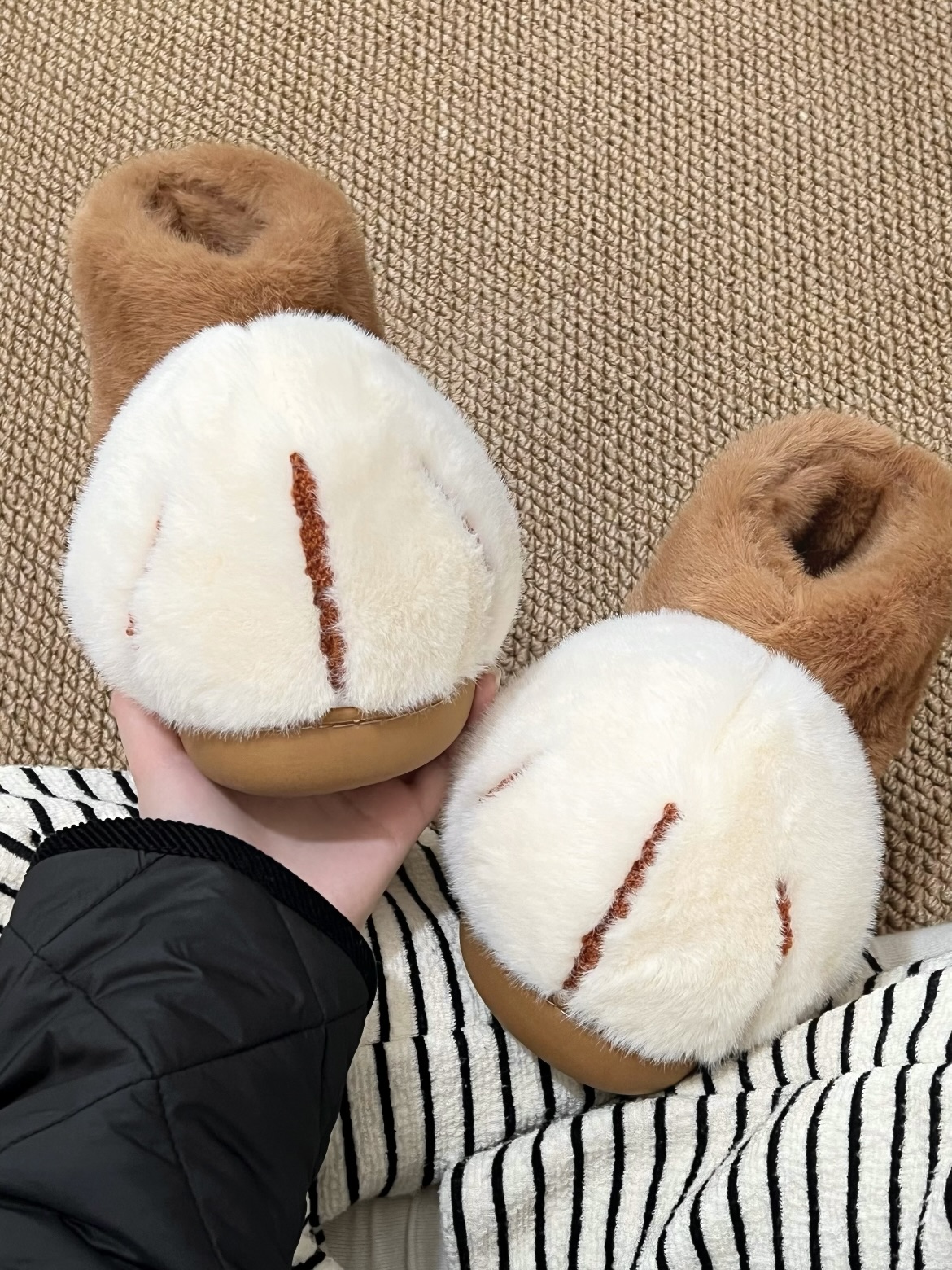 注意事项:新棉拖出厂之后直接运输,多少有一点点浮毛的,不影响日常穿着;关于洗护:冷水手洗(≤30℃),避免长时间浸泡,使用中性洗涤剂。禁止漂白、烘干或暴晒,自然阴干可保持绒毛柔软。定期用软毛刷顺方向梳理,保持绒毛蓬松。避免与粗糙表面频繁摩擦哦~