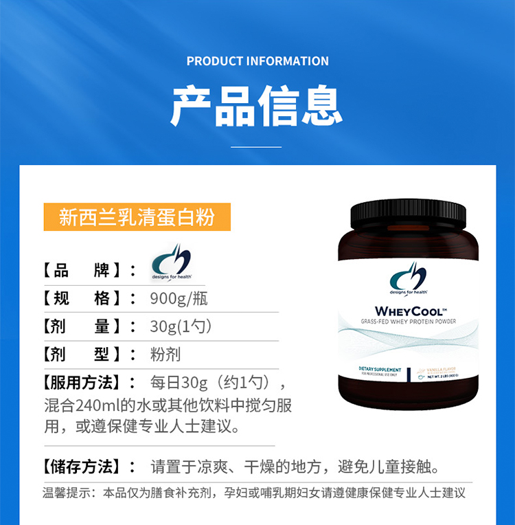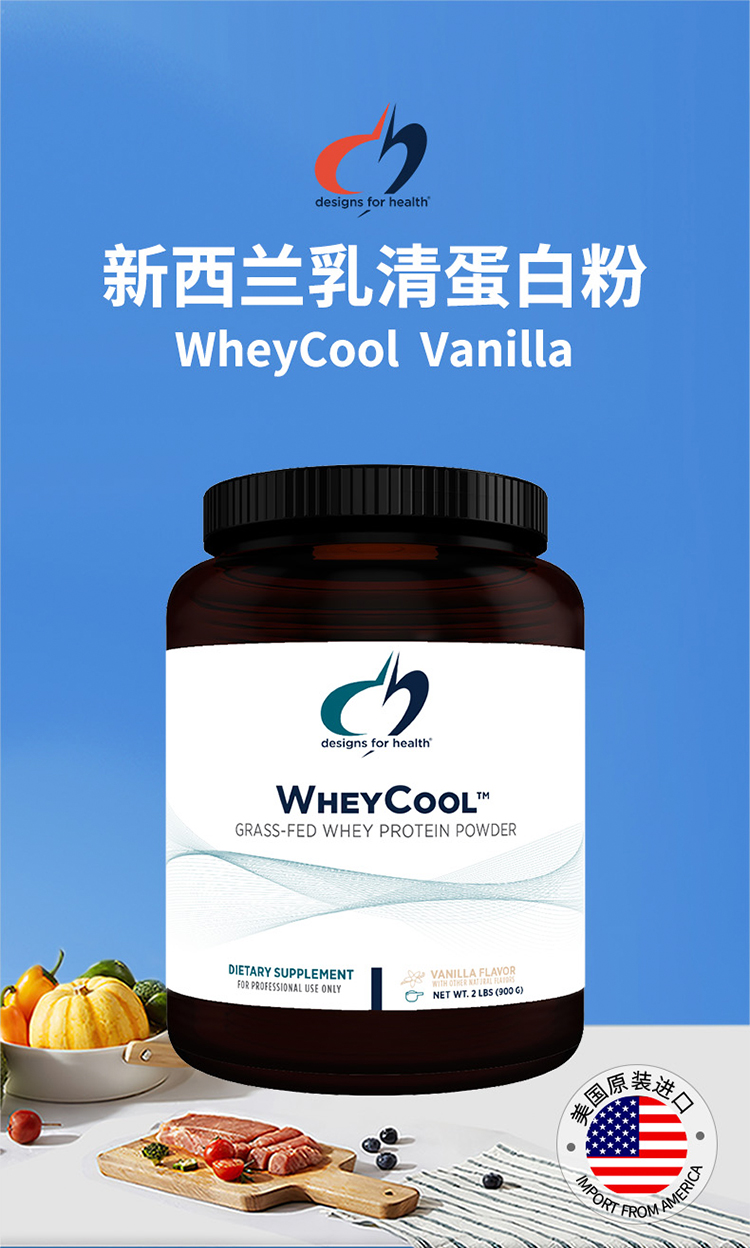 【效期至26年6月】新西兰乳清蛋白粉 design for health WheyCool™ Vanilla powder 900克/瓶 香草味