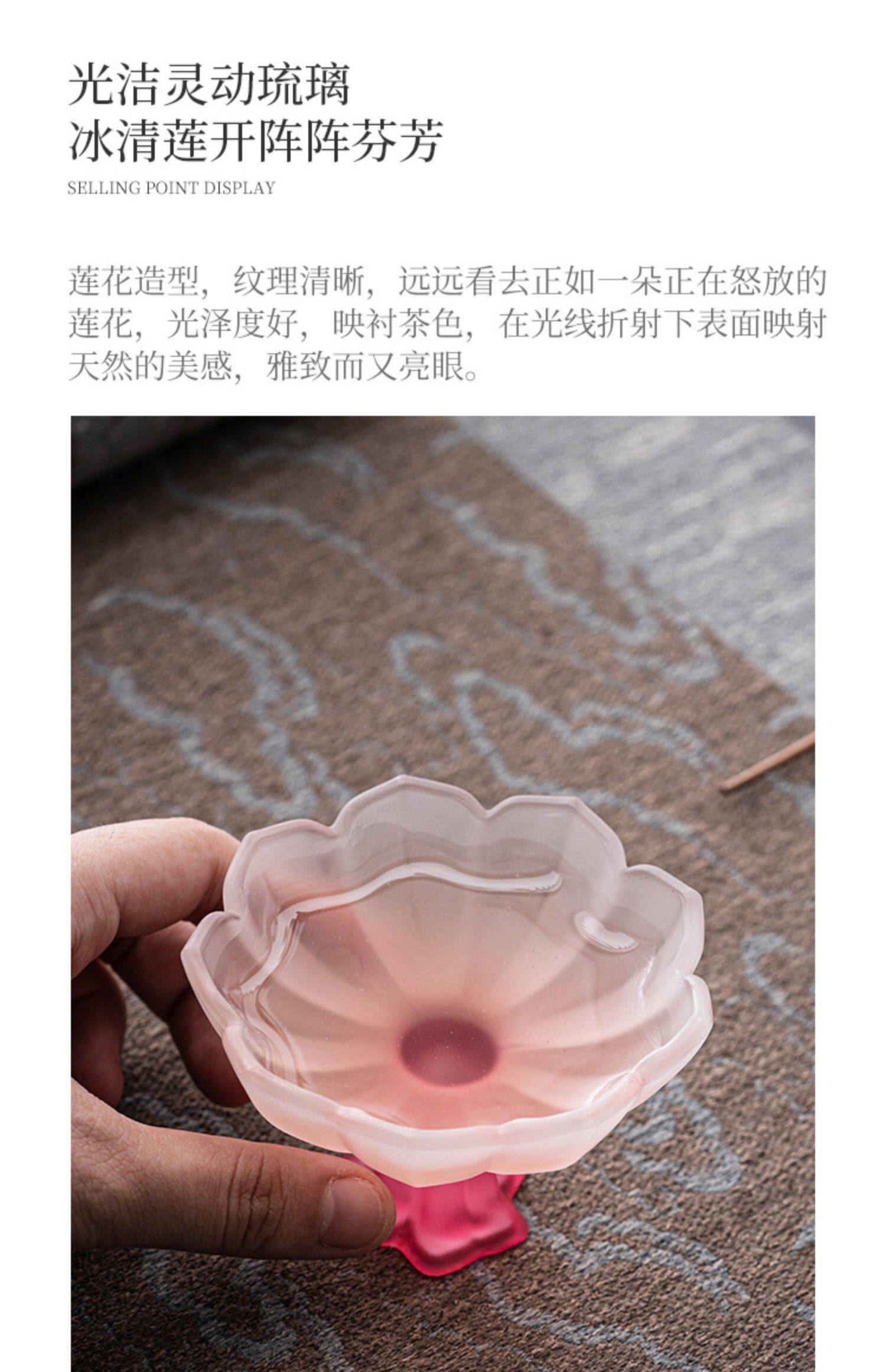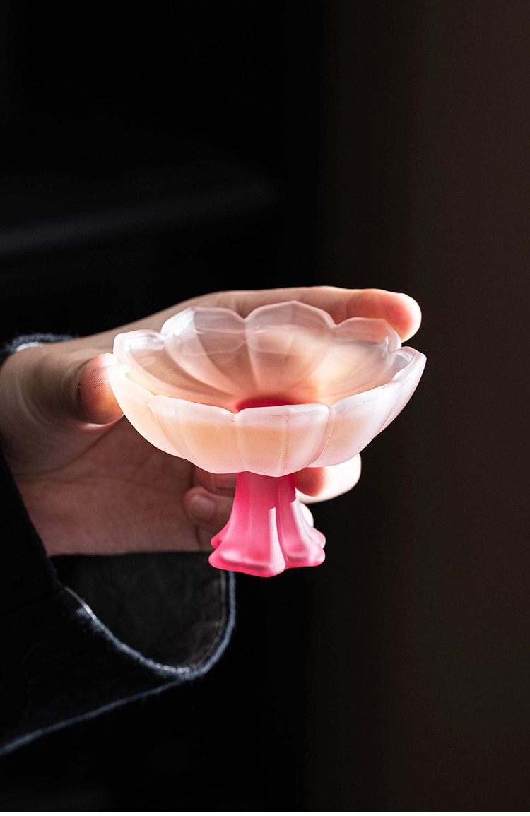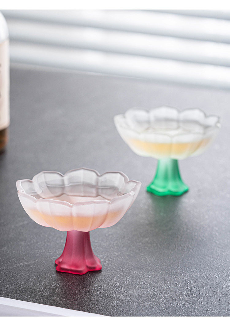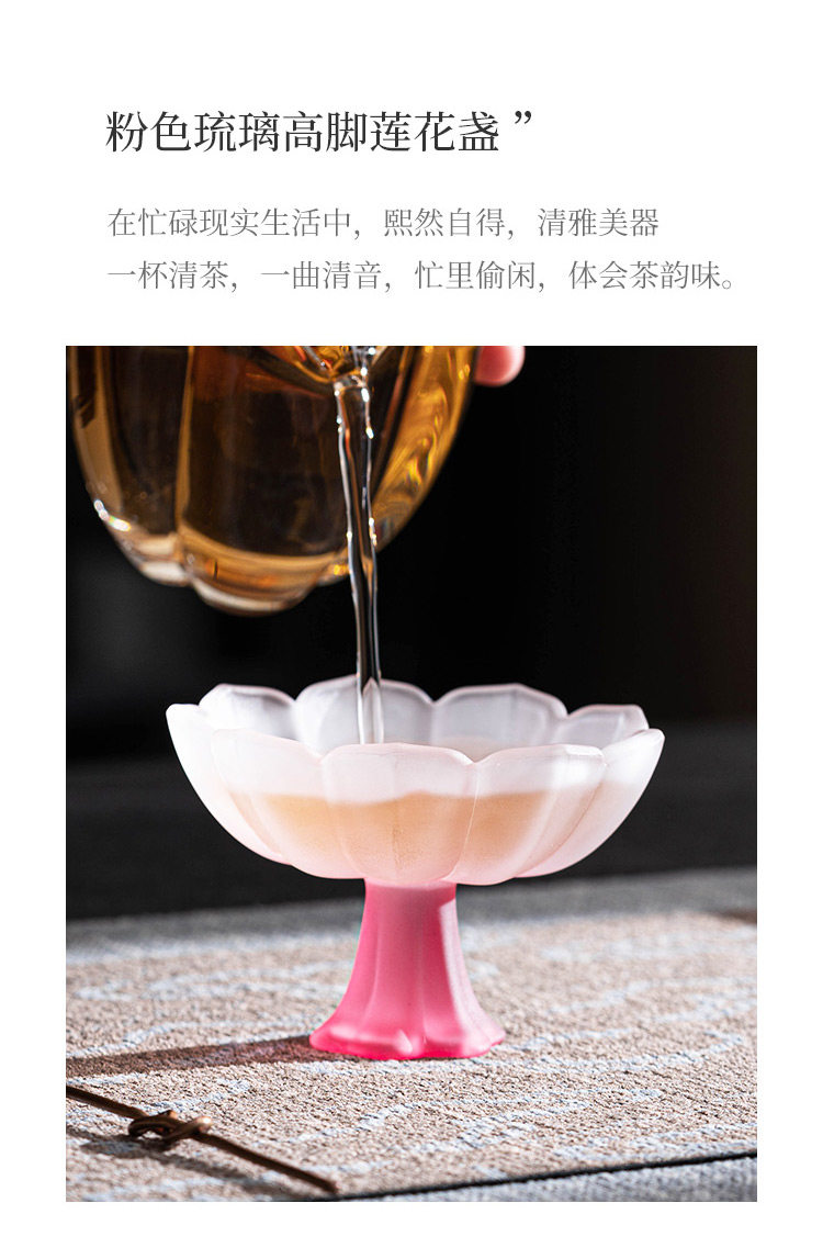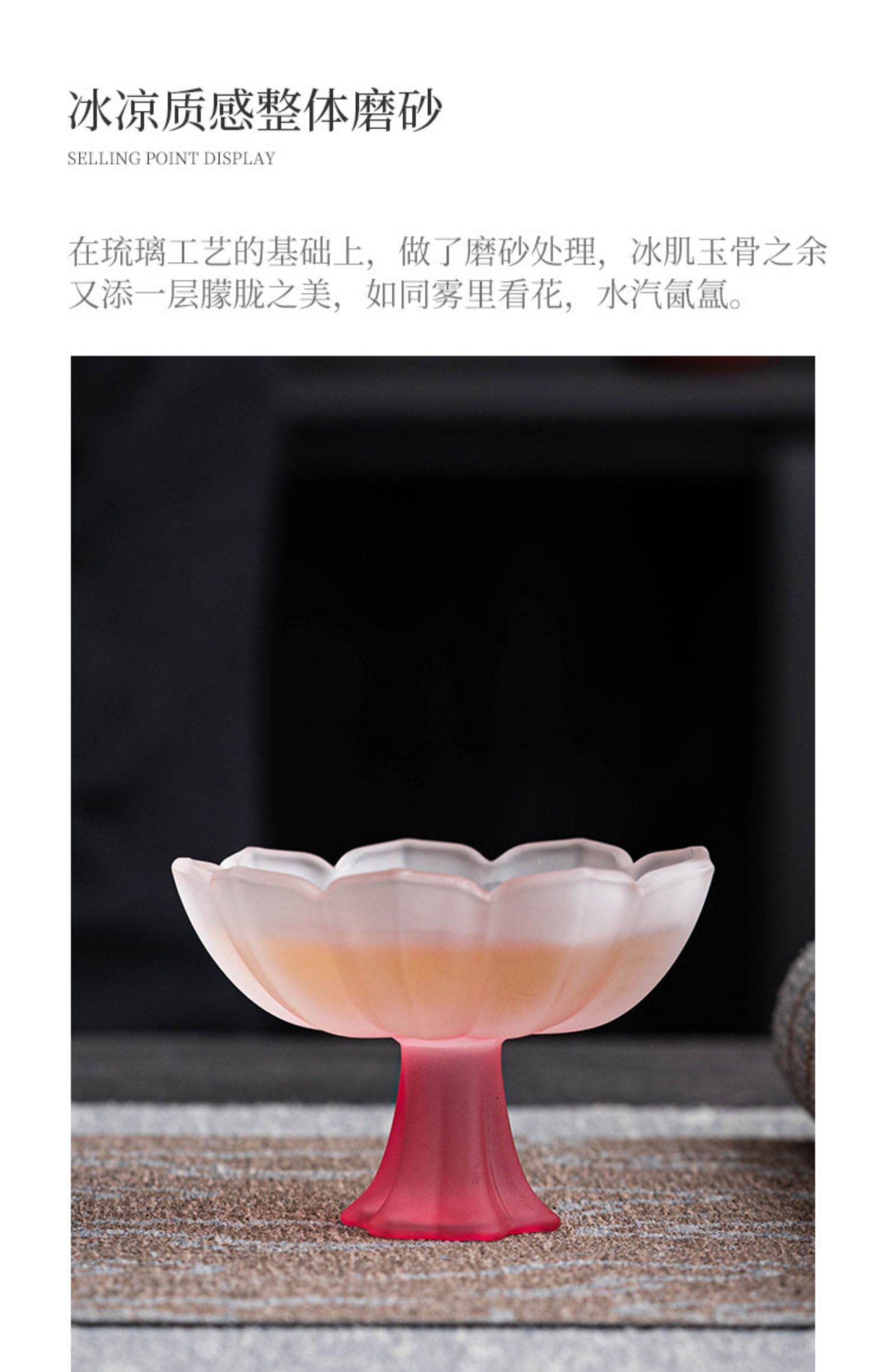 四色【敦煌·琉璃饮莲花杯】创意粉彩四色高足杯 磨砂玻璃茶杯 氛围感轻奢高颜值